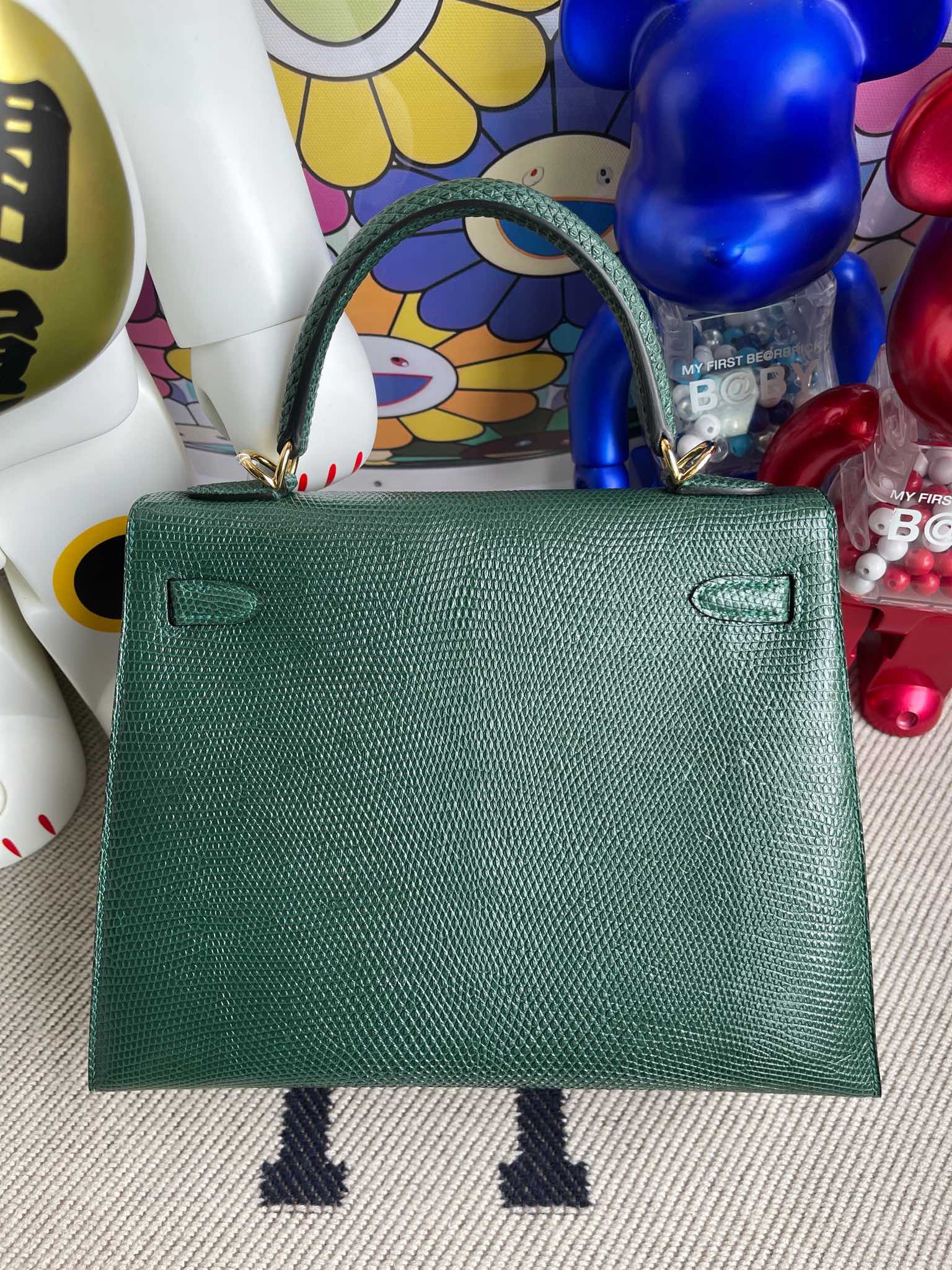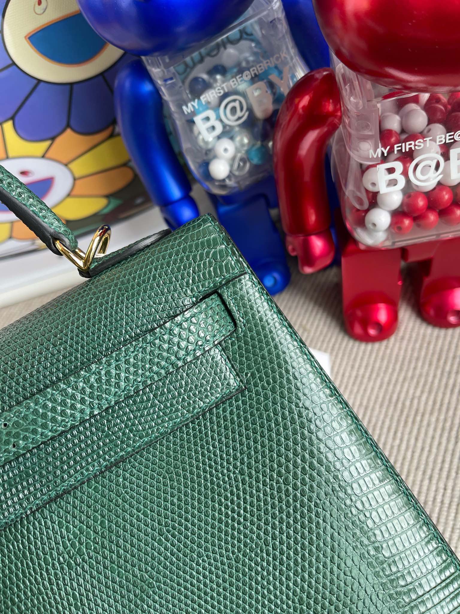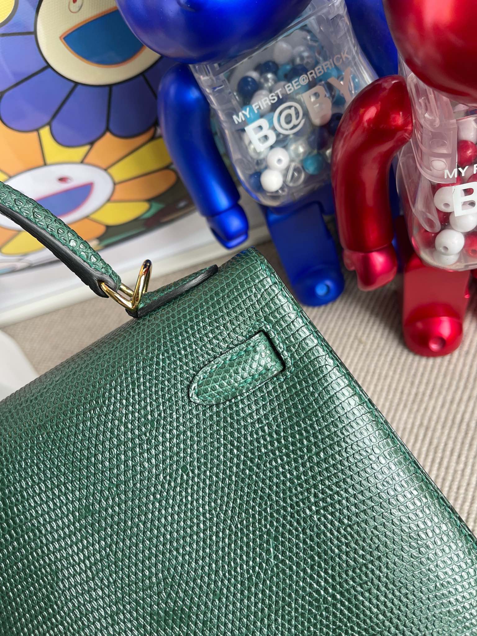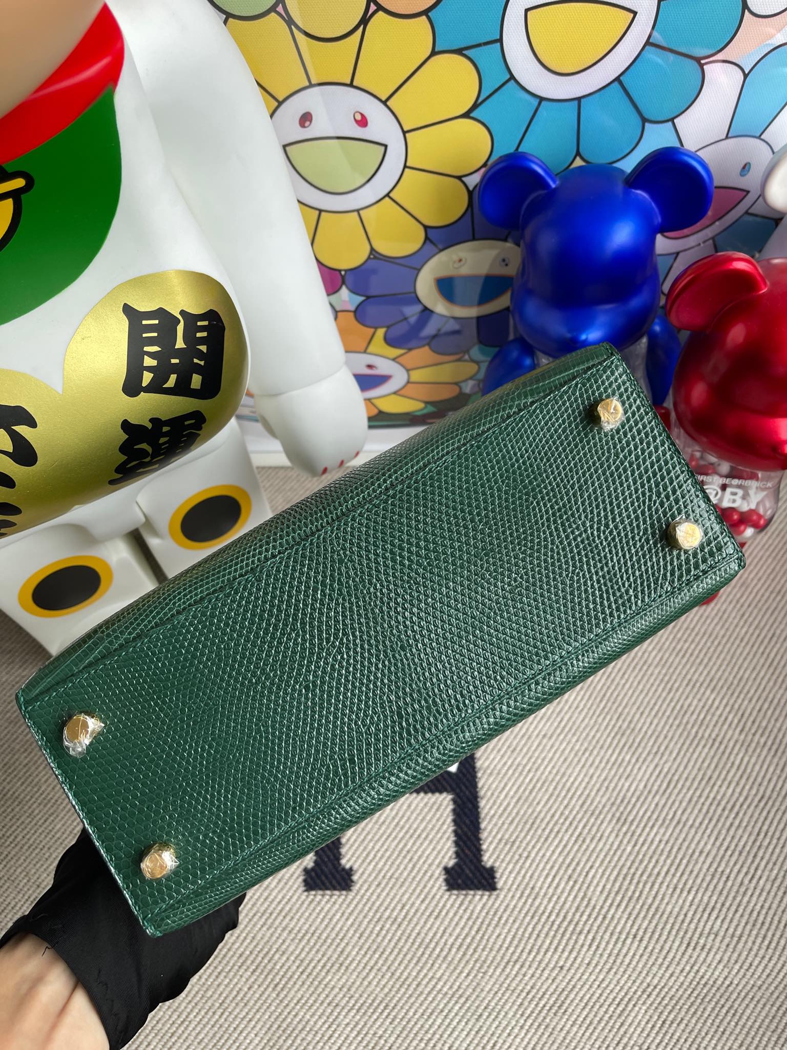 Kelly 25cm Lizard ck67 Dark green Gold Hardware Full Handmade