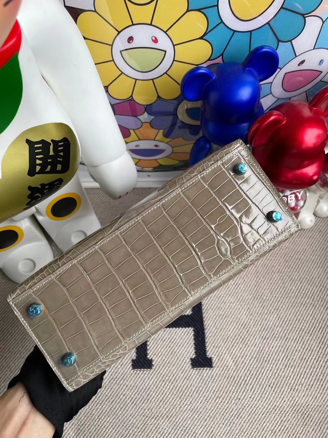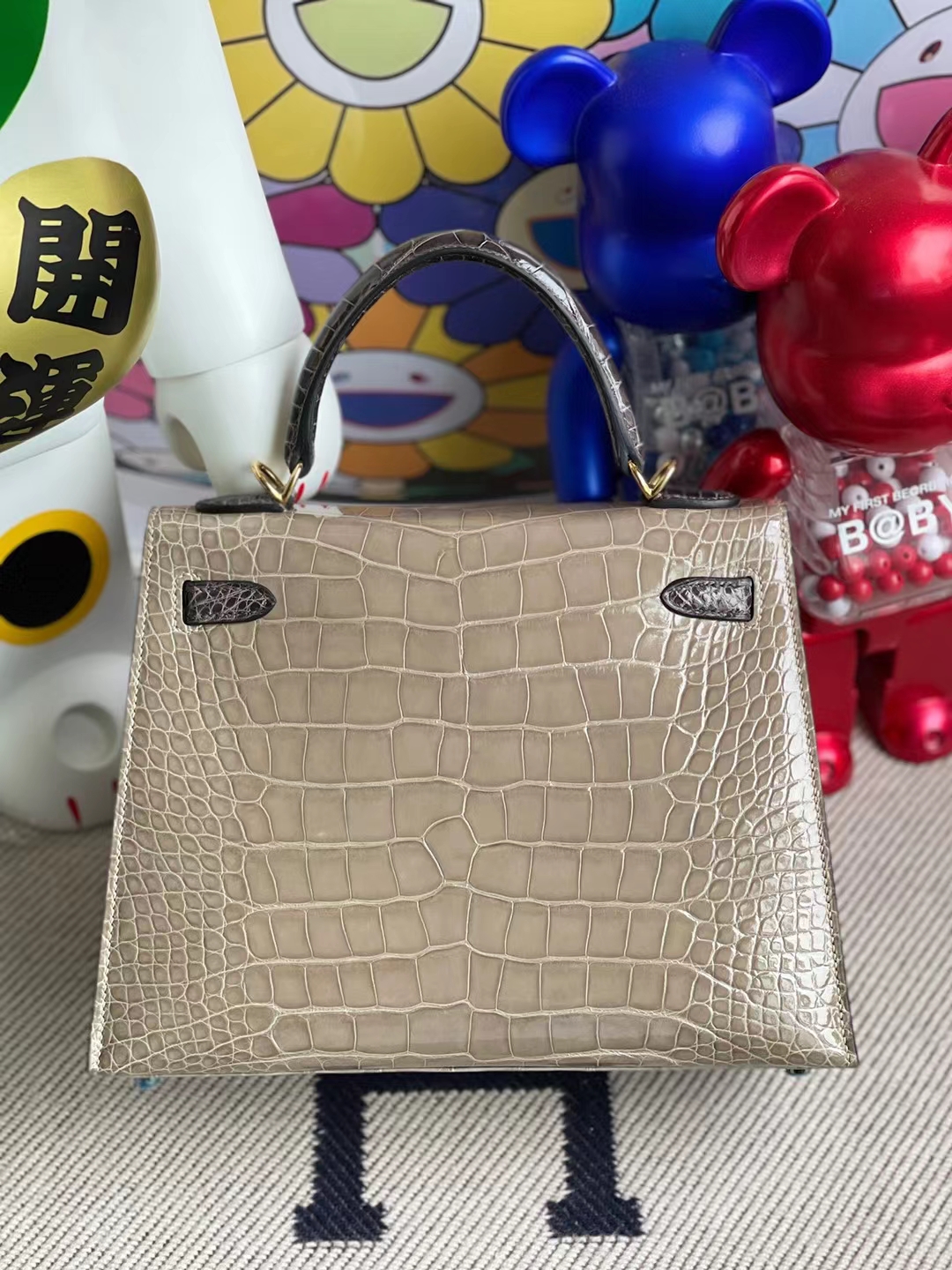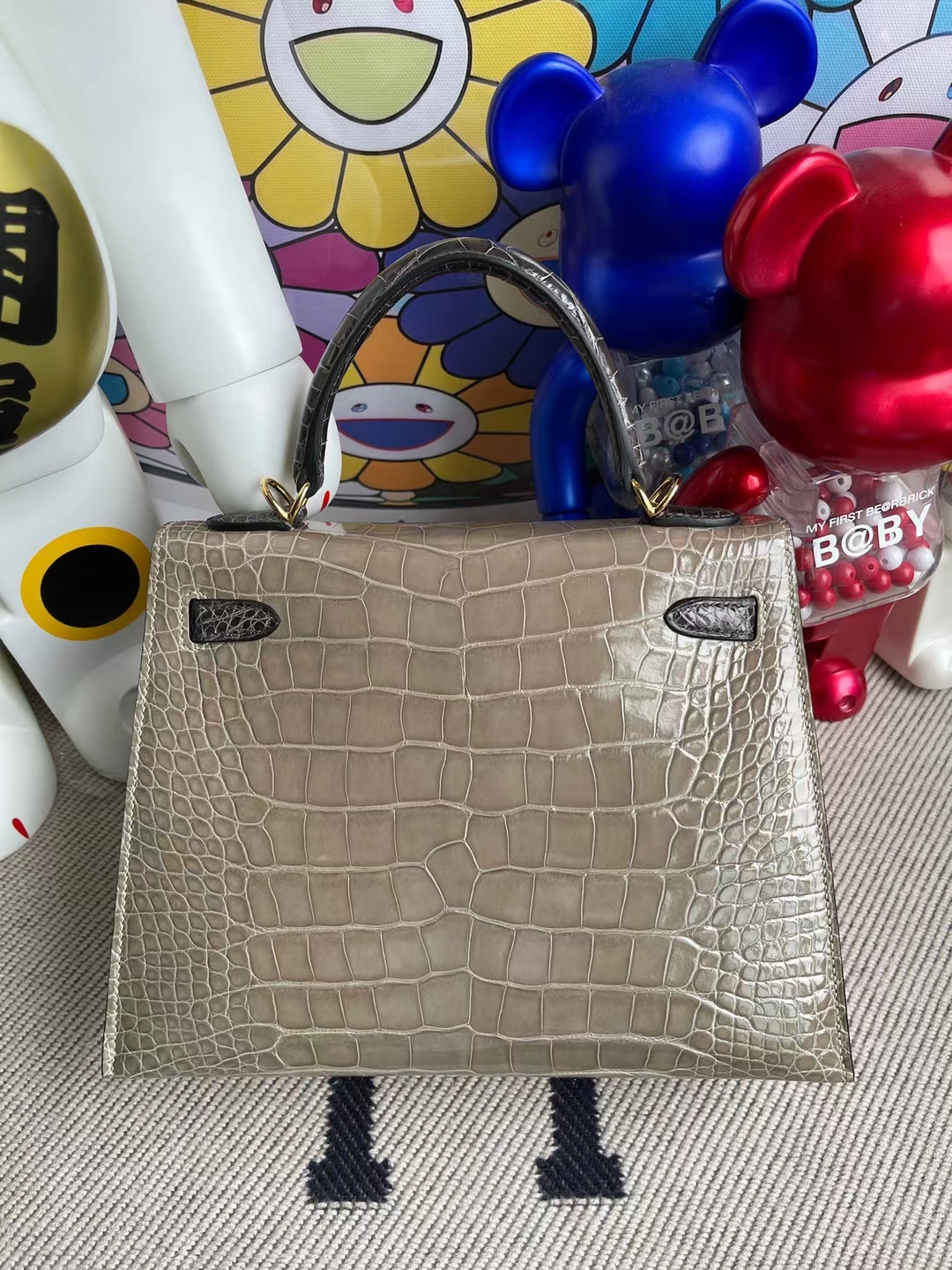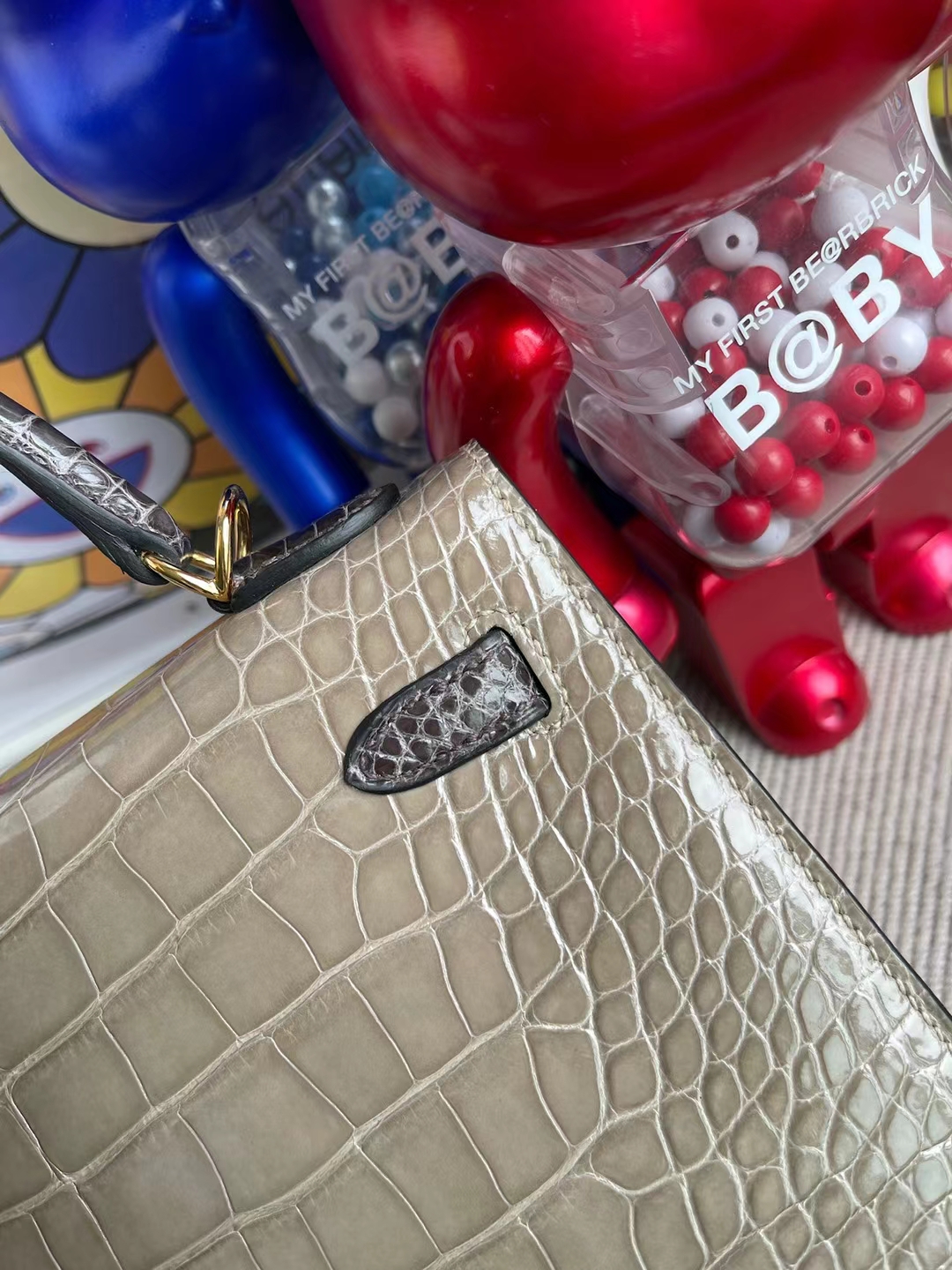 Kelly 25cm shiny alligator Ck81 Gris T & Ck88 Graphite grey Gold Hardware Full Handmade