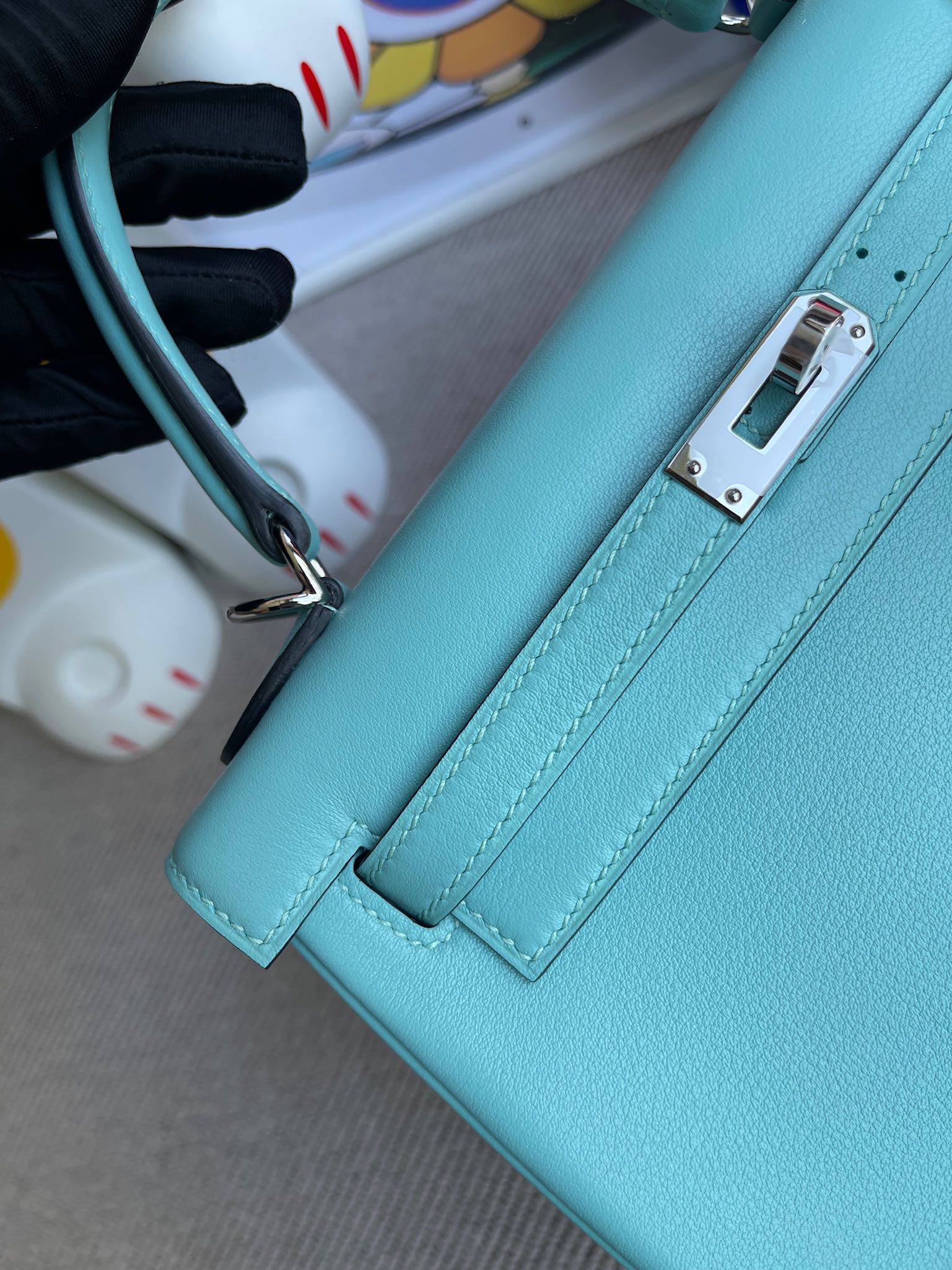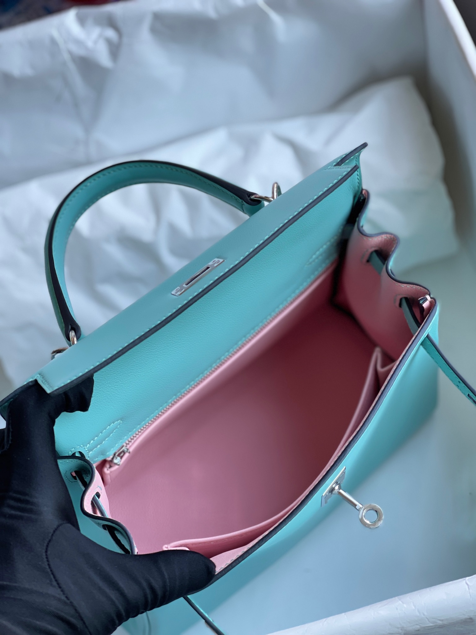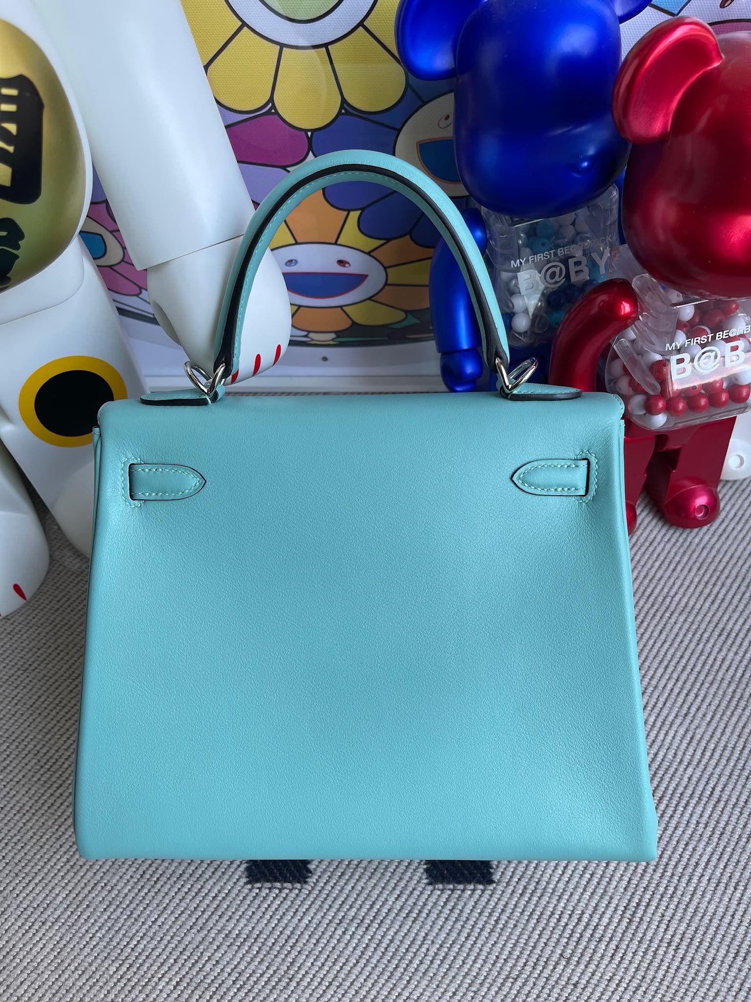 Kelly 25cm Swift 3p Lake blue & 3Q pink Silver Hardware Full Handmade