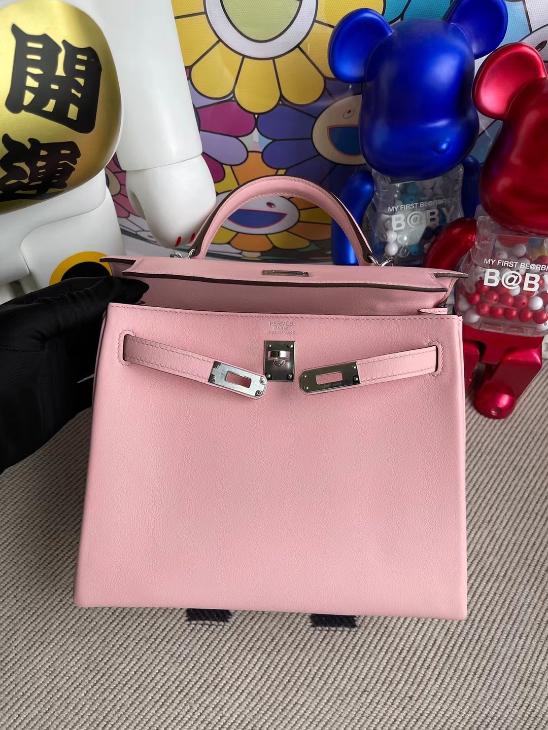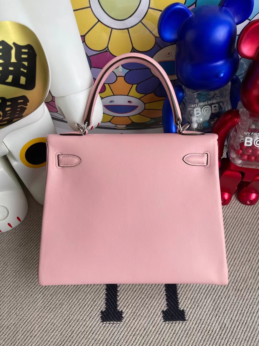Kelly 25cm Swift 3Q New pink Silver Hardware Full Handmade