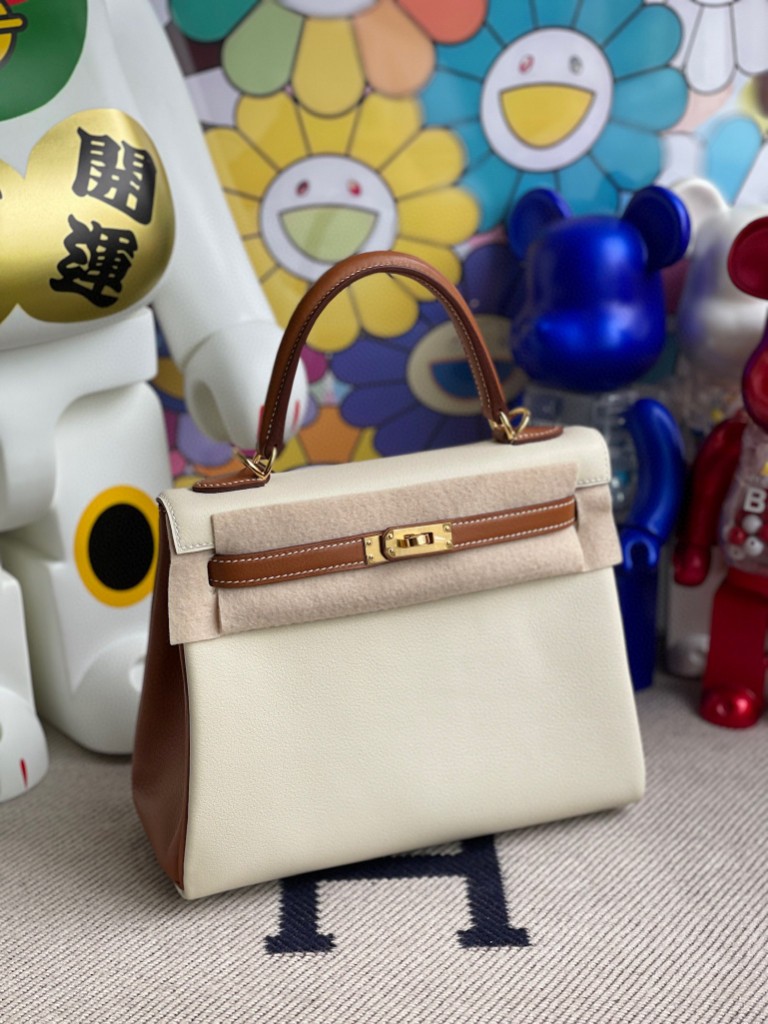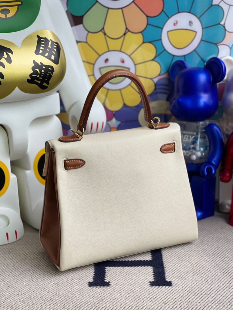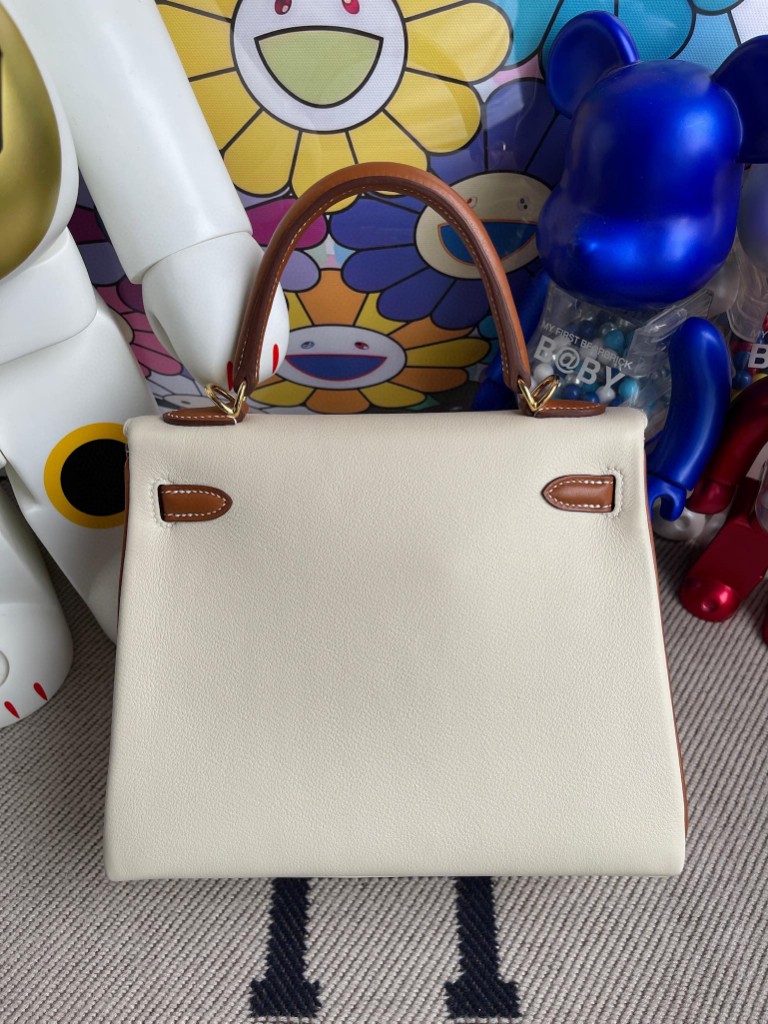 Uncle Bench Hermes Kelly 25cm Swift ck10 Craie & Golden brown Gold Hardware Full Handmade