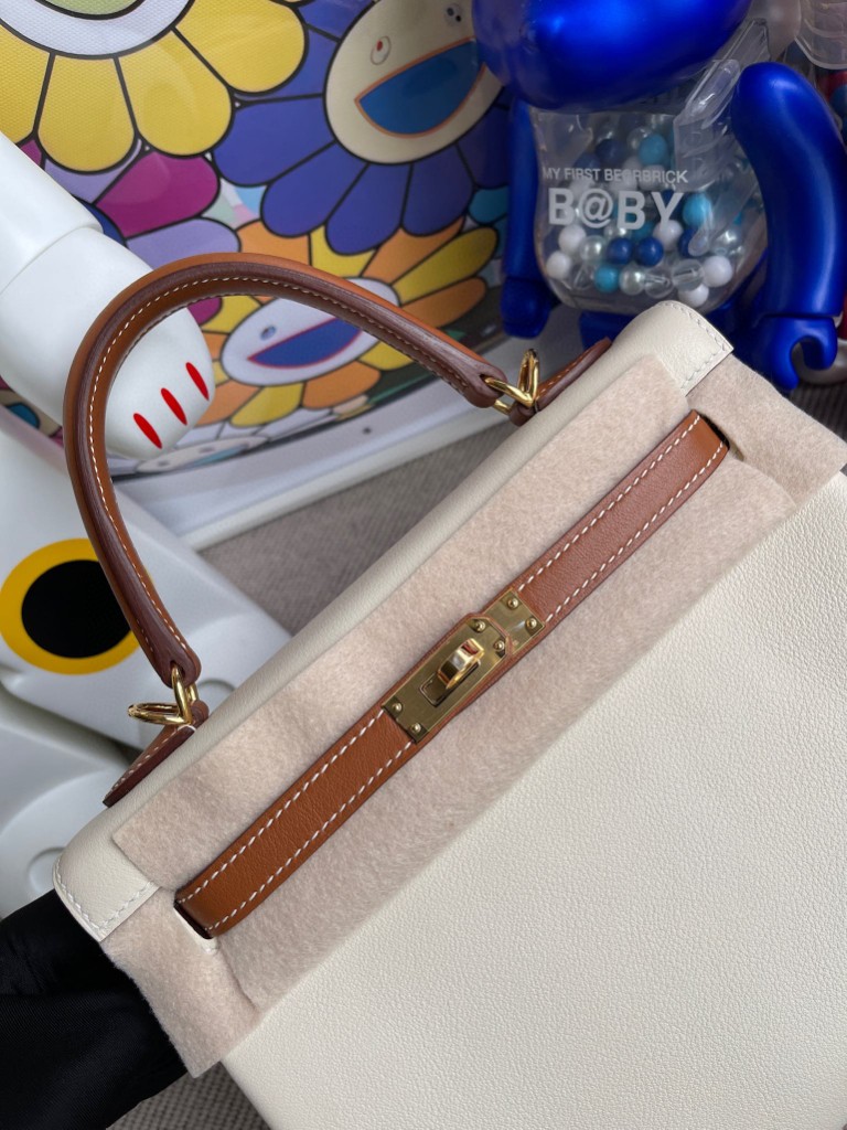 Kelly 25cm Swift ck10 Craie & Golden brown Gold Hardware Full Handmade