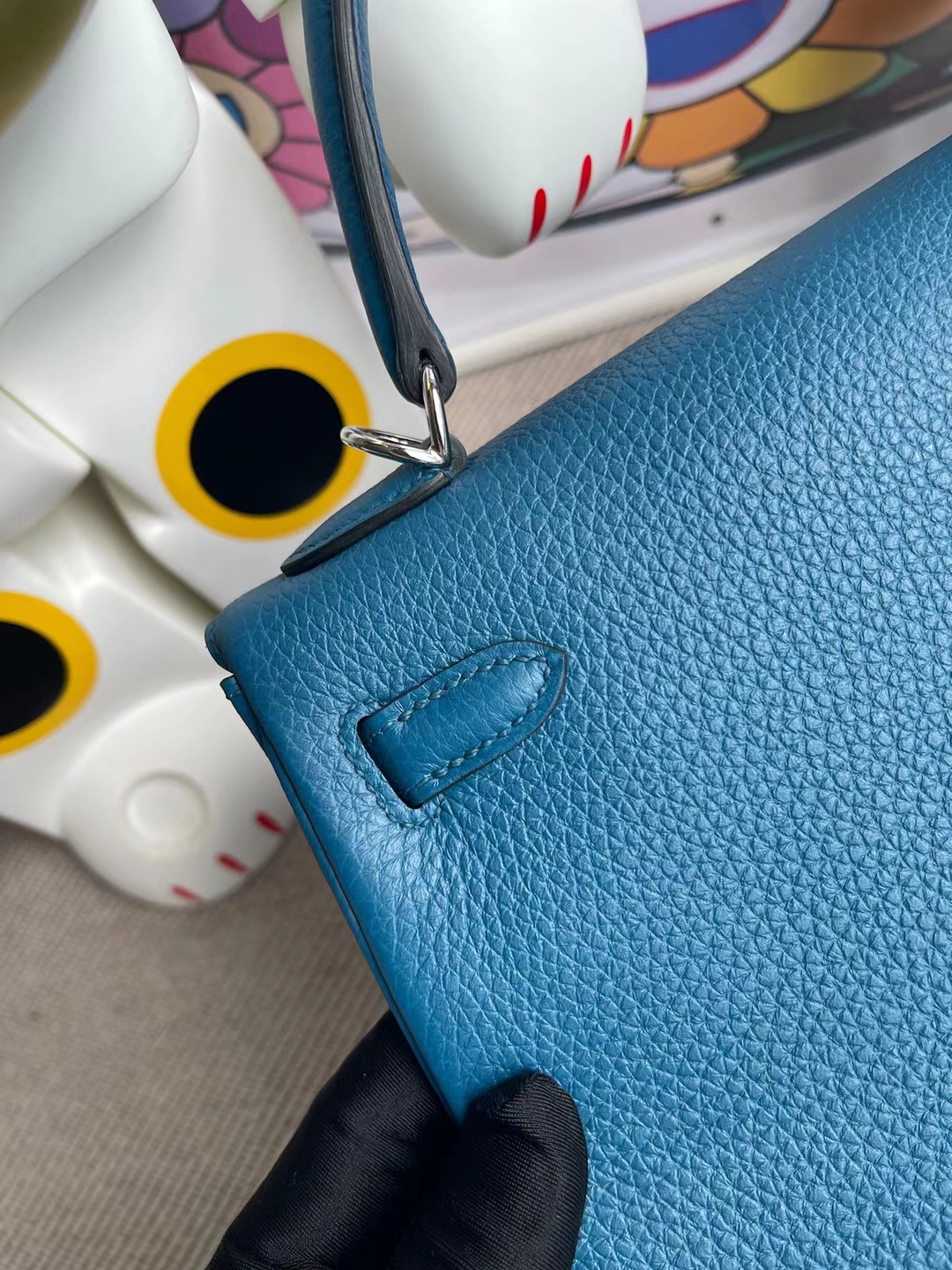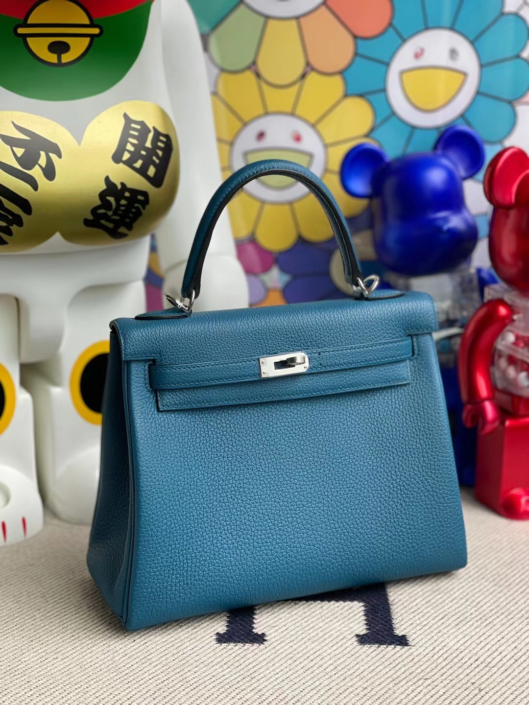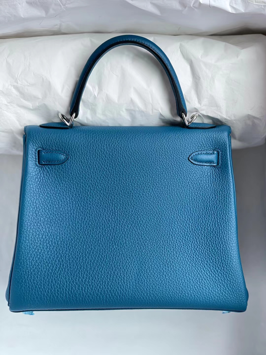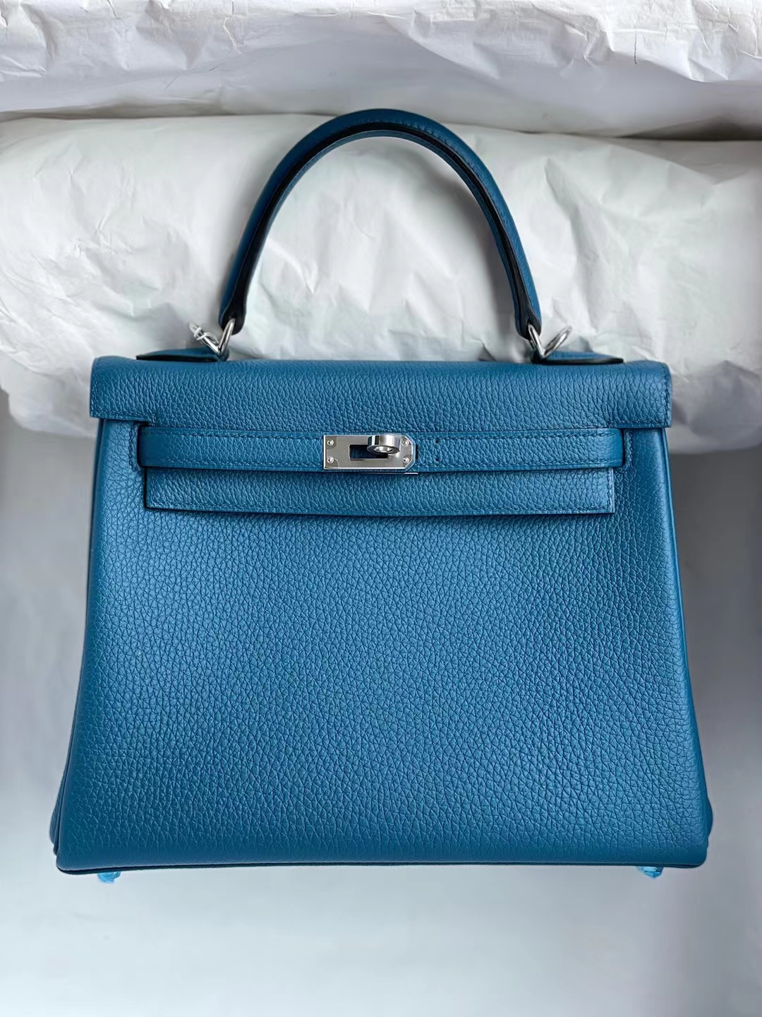 Kelly 25cm togo Galician blue Silver Hardware Full Handmade