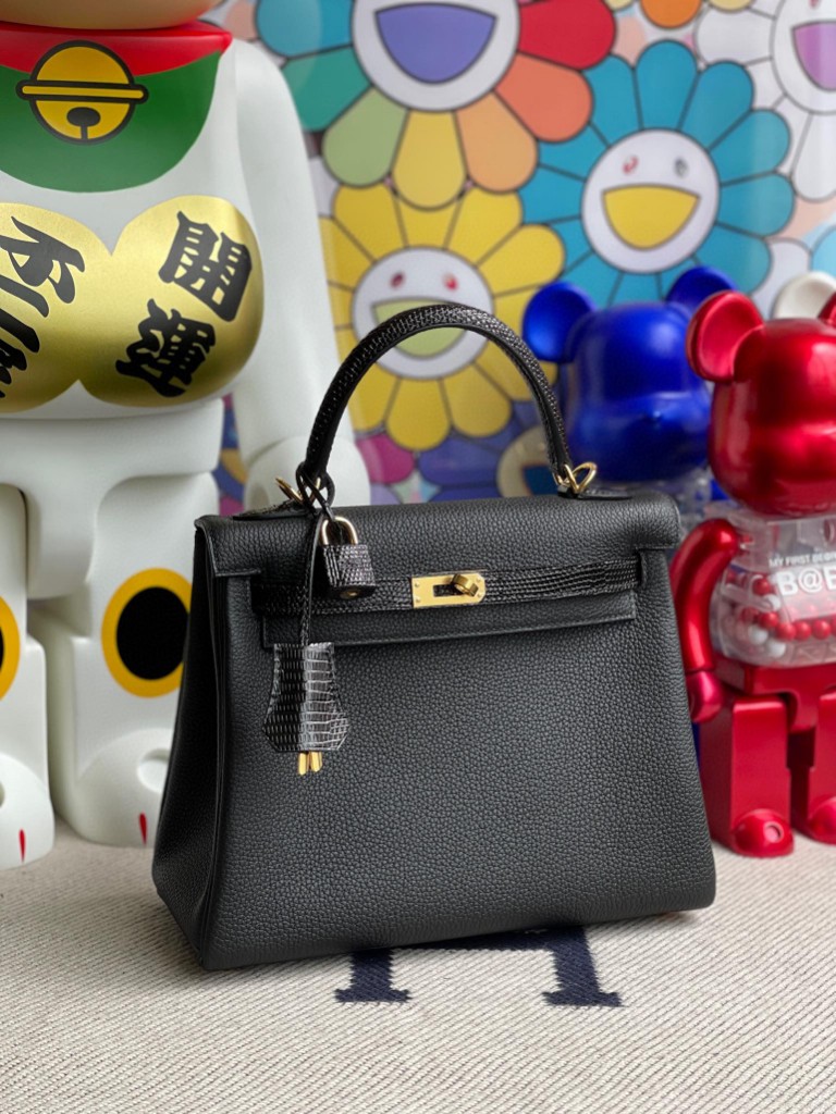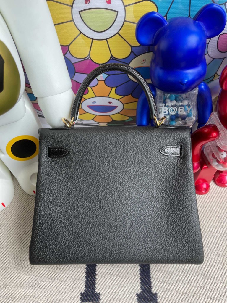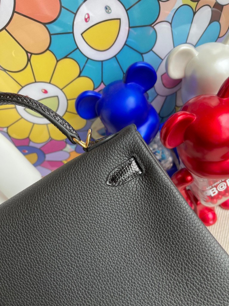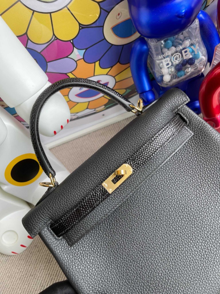 Kelly 25cm Togo & lizard Black Gold Hardware Full Handmade