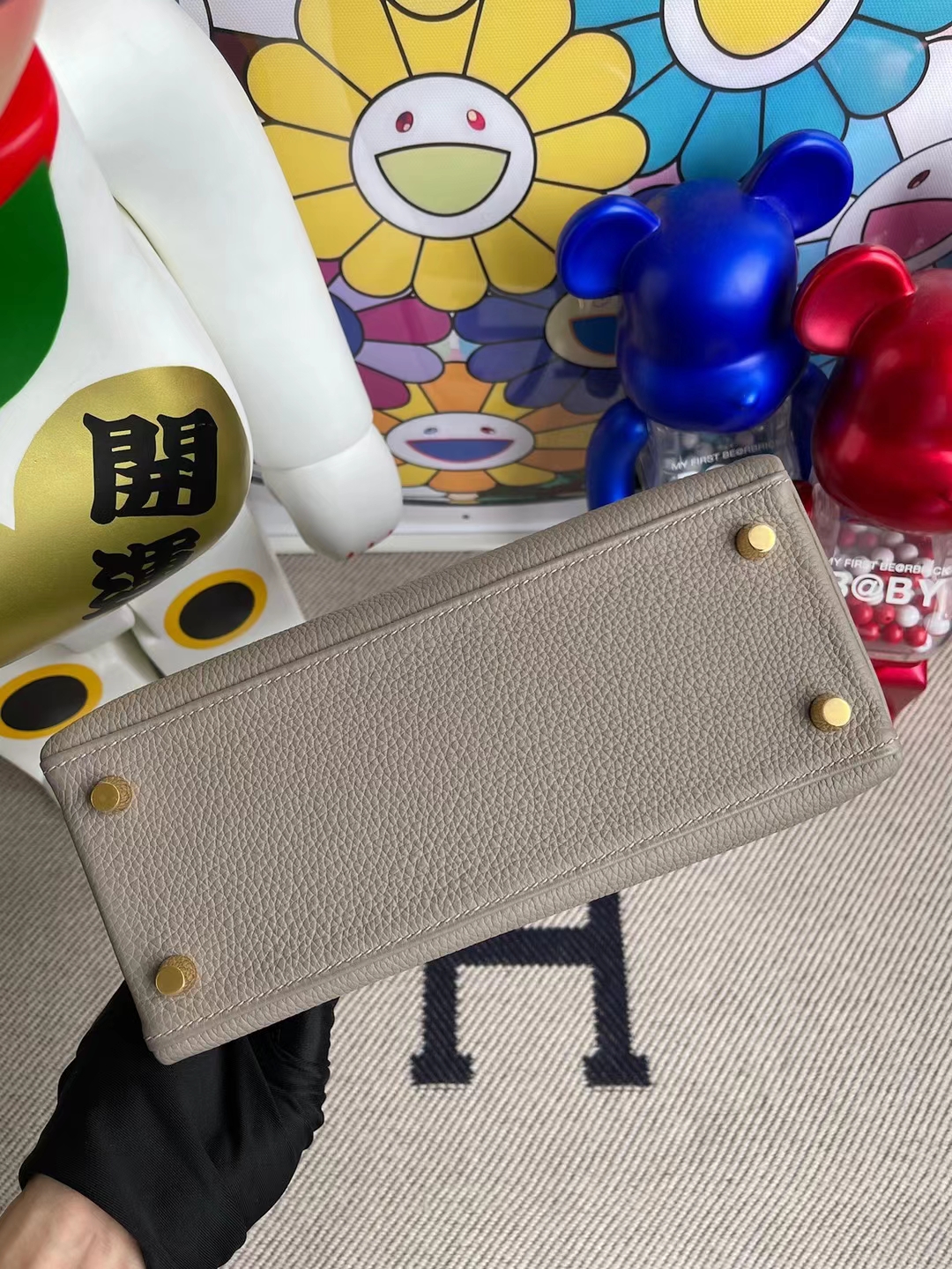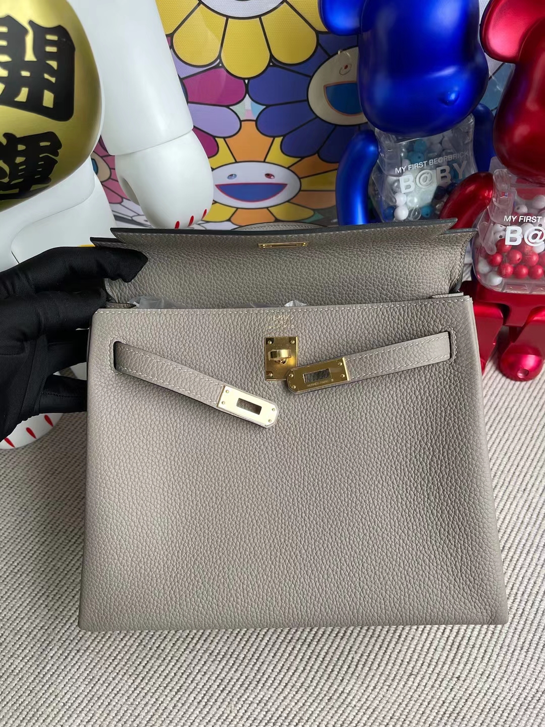 Kelly 25cm Togo M8 Griss Asphalte Gold Hardware Full Handmade