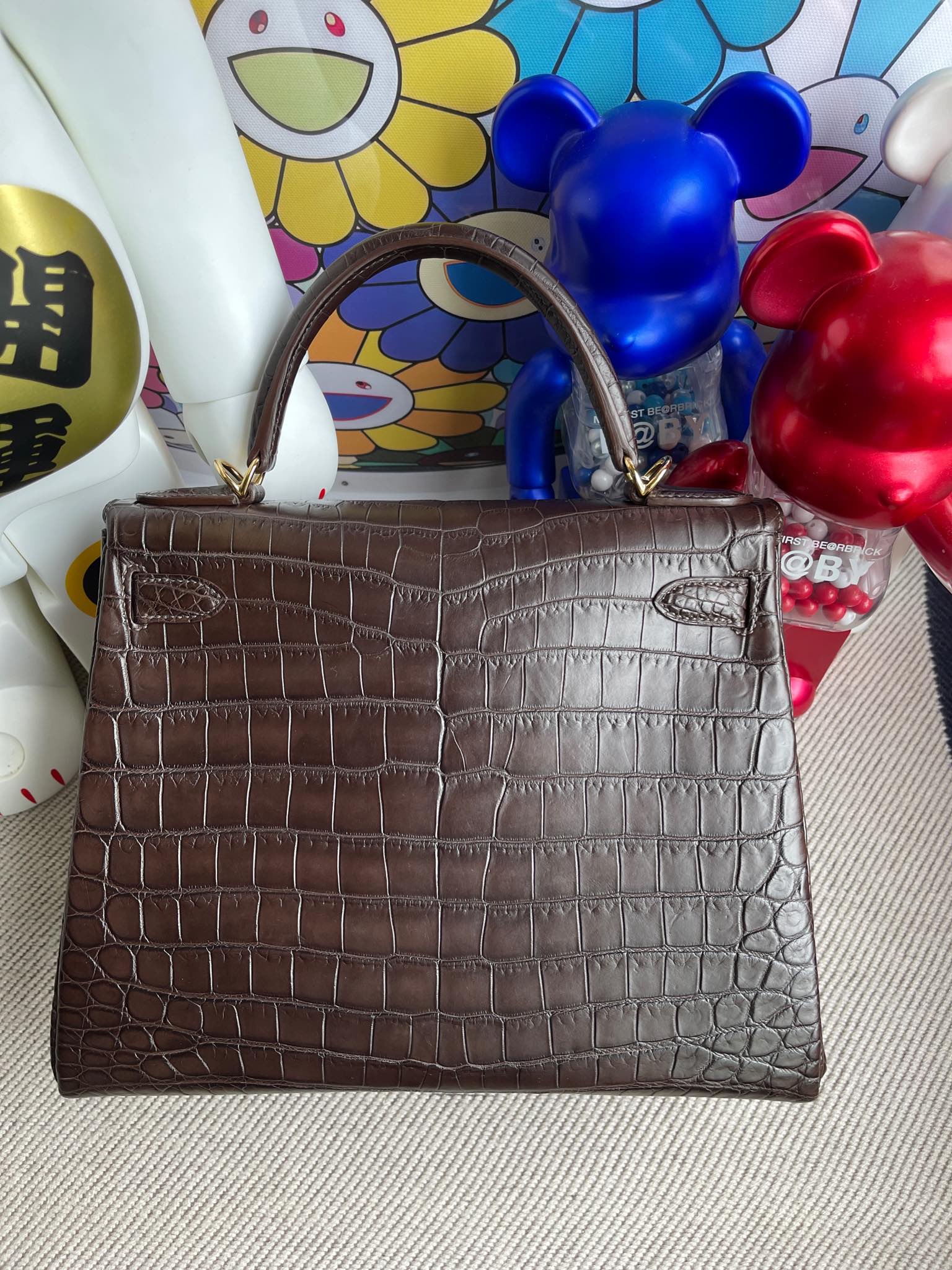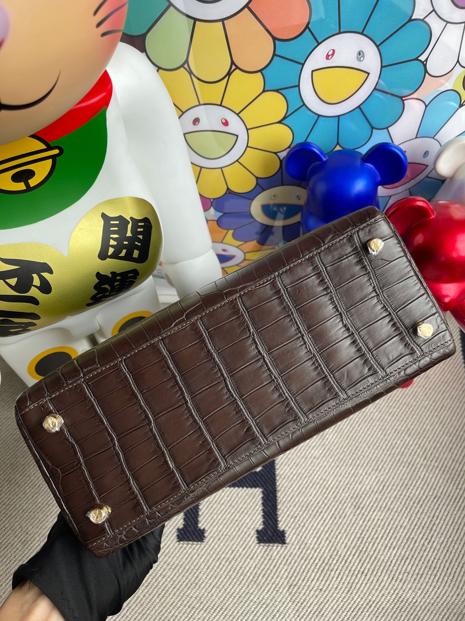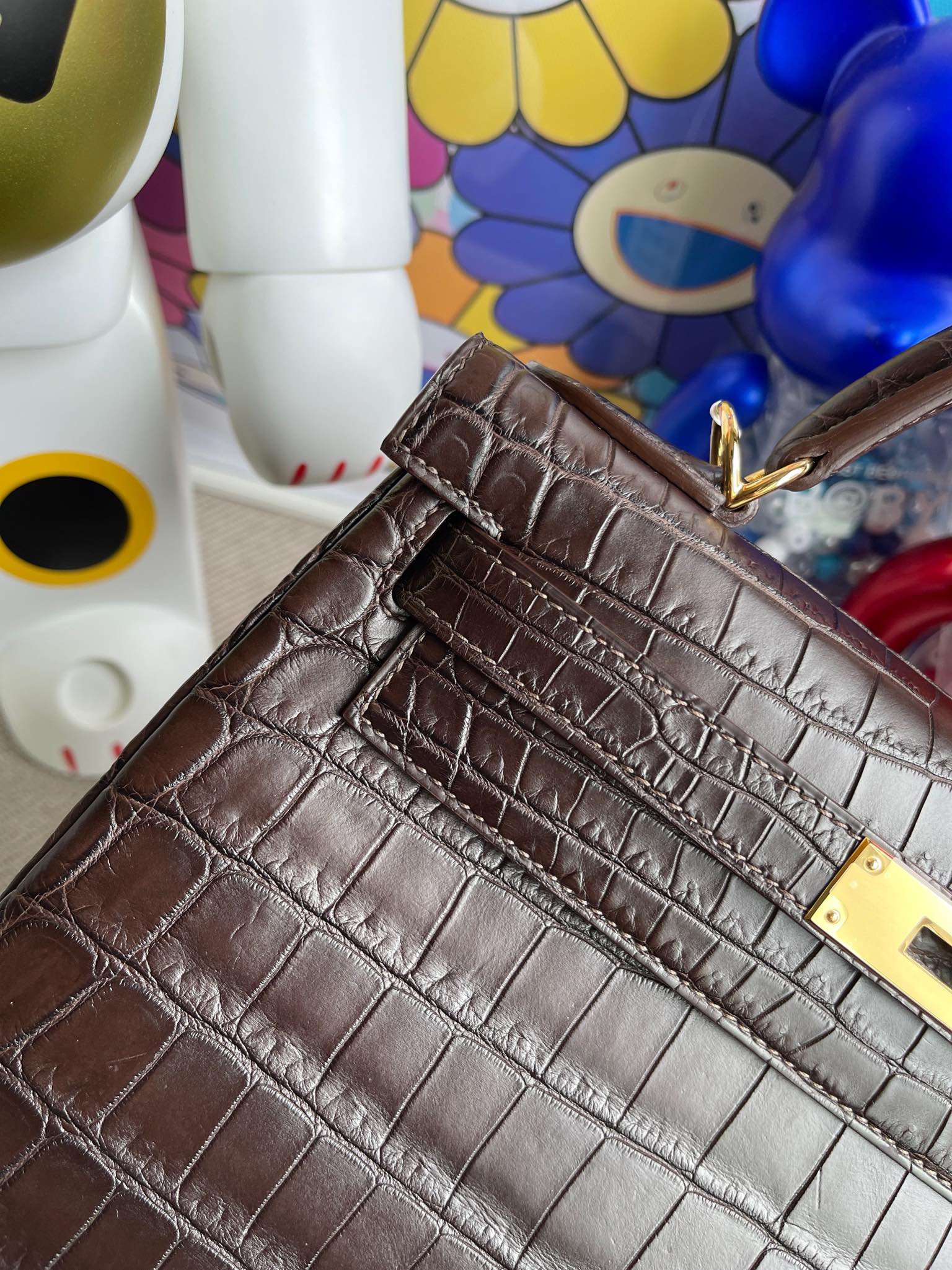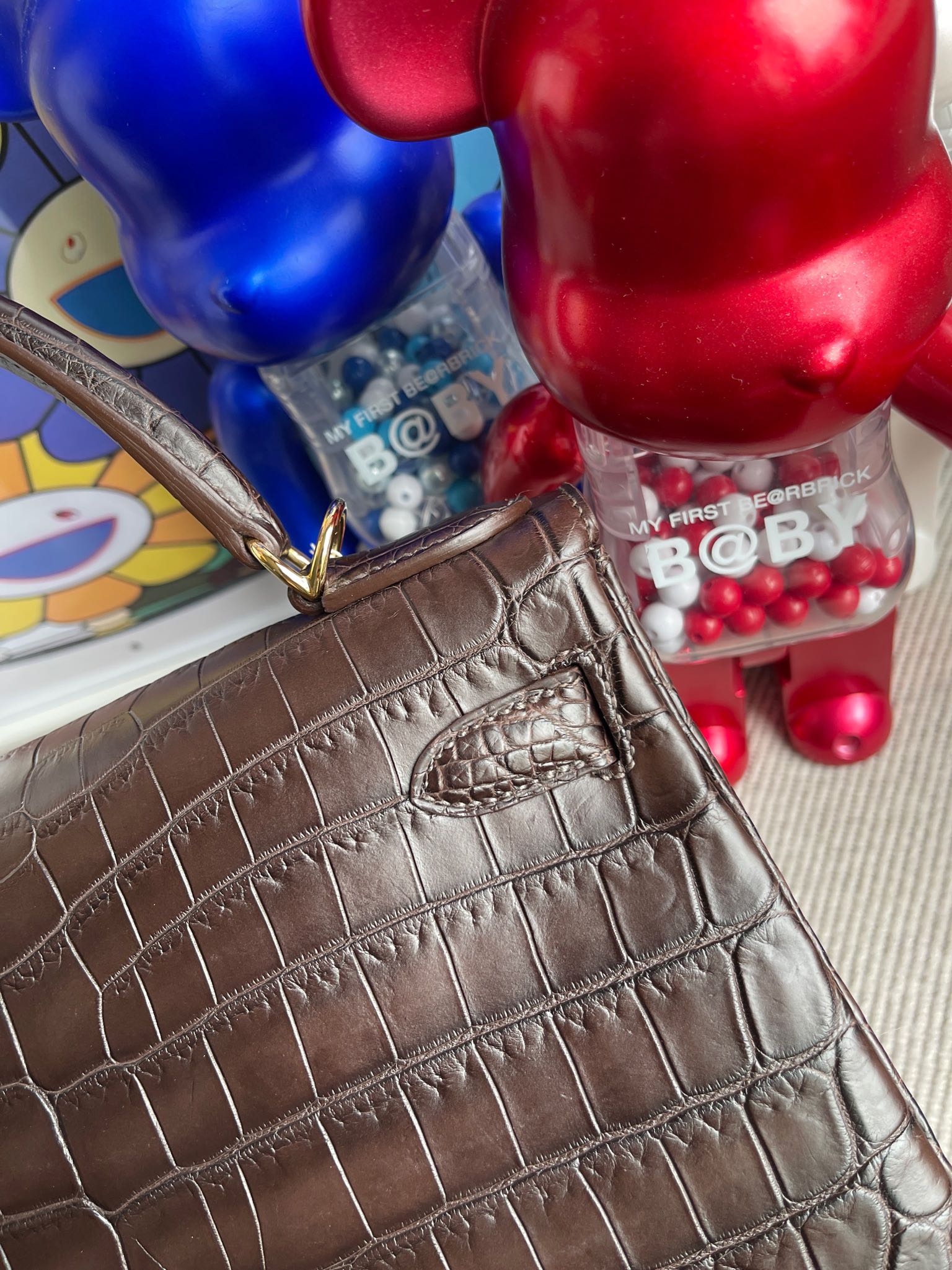 Kelly 28cm Crocodile matt Coffee Gold Hardware Full Handmade