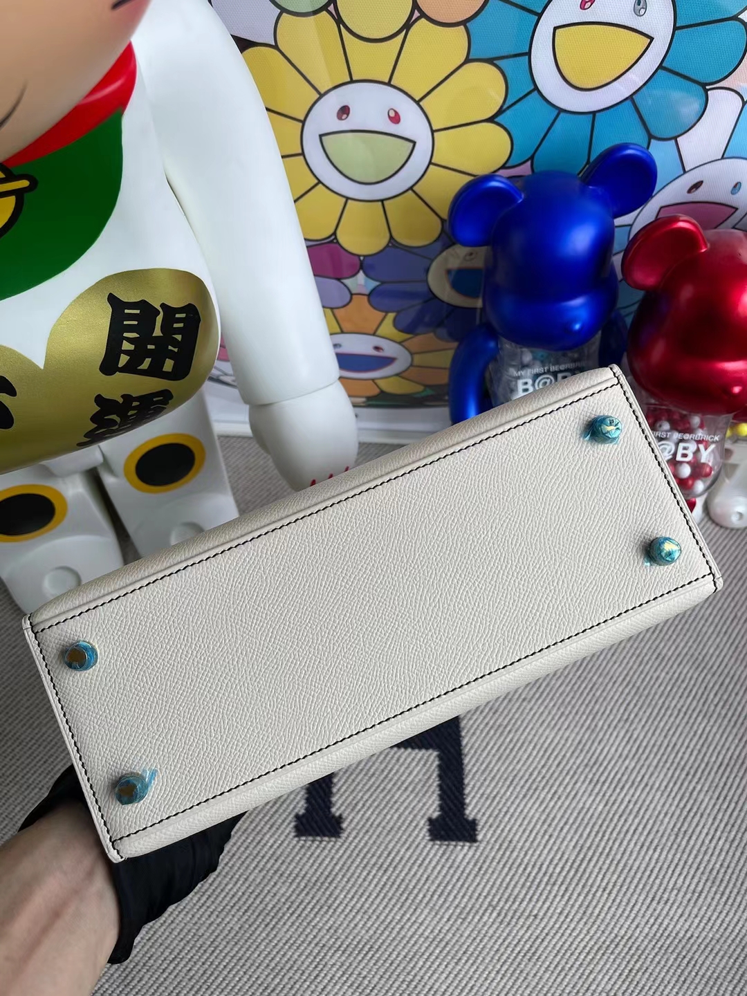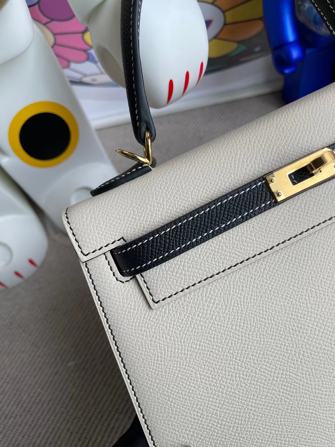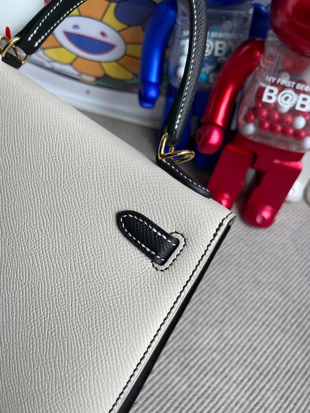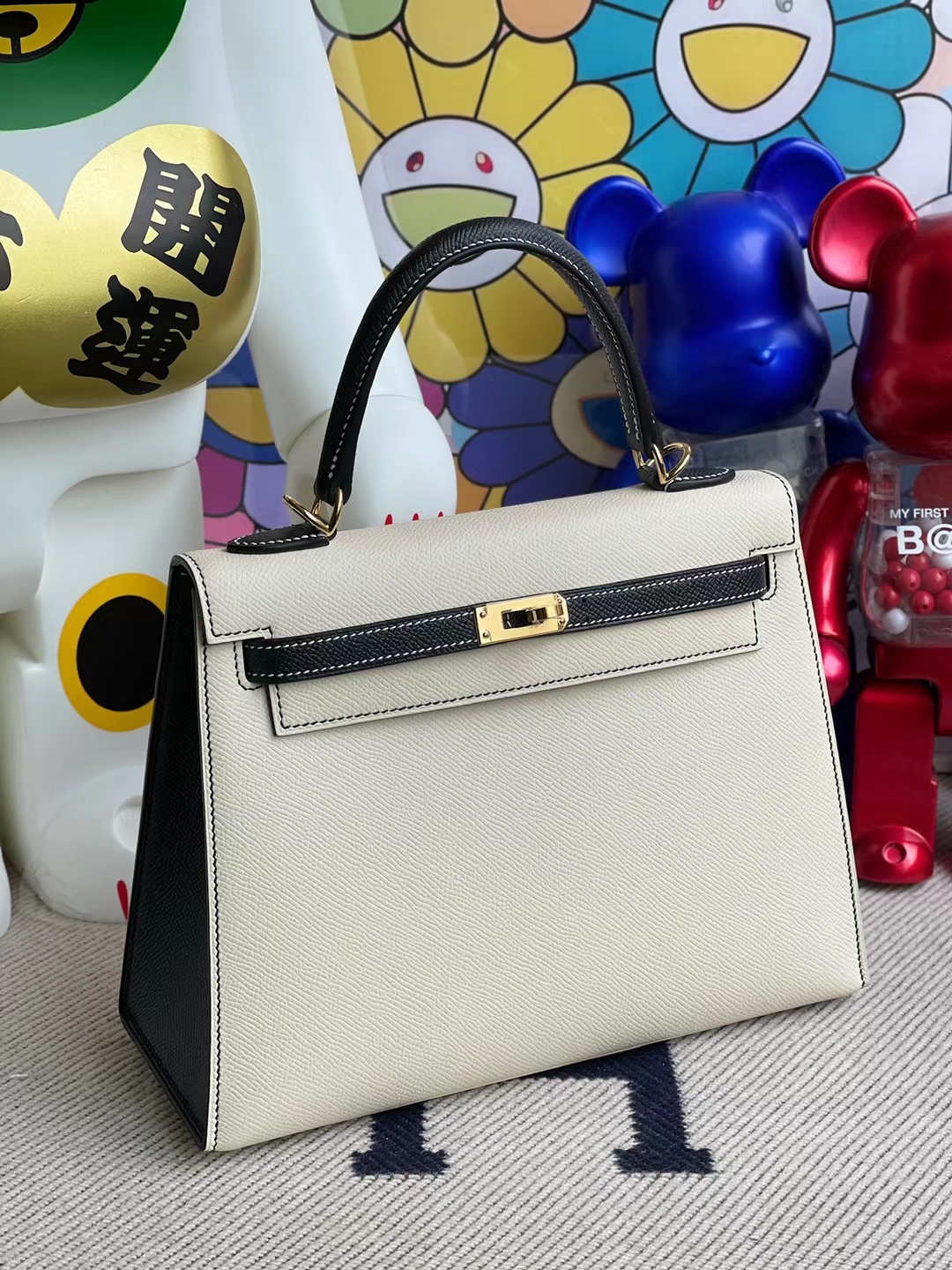 Kelly 28cm Epsom Ck10 creamy white & Ck8 black Gold Hardware Full Handmade