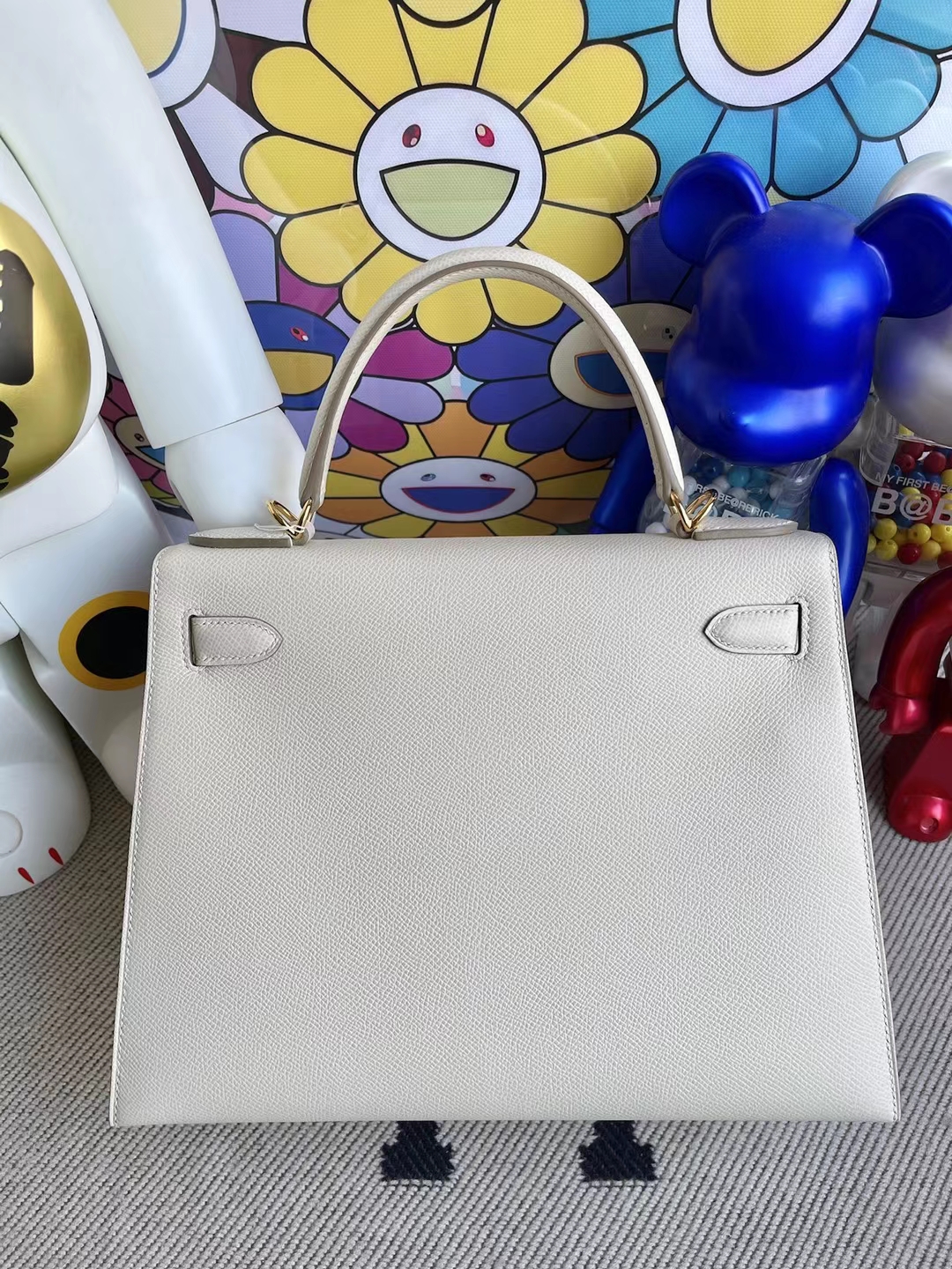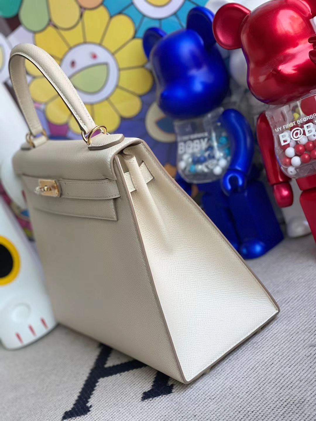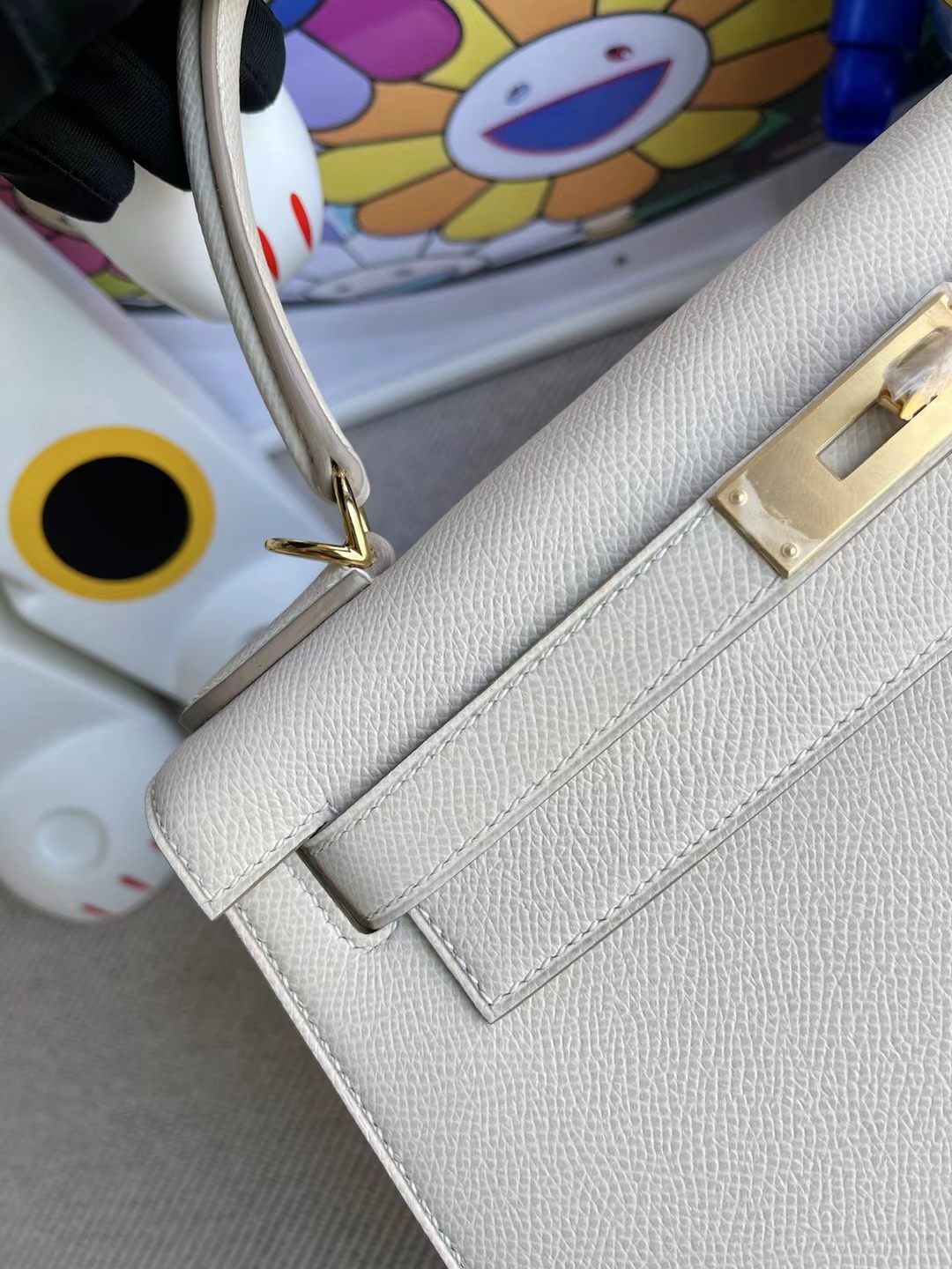Kelly 28cm Epsom Ck10 creamy white Gold Hardware Full Handmade