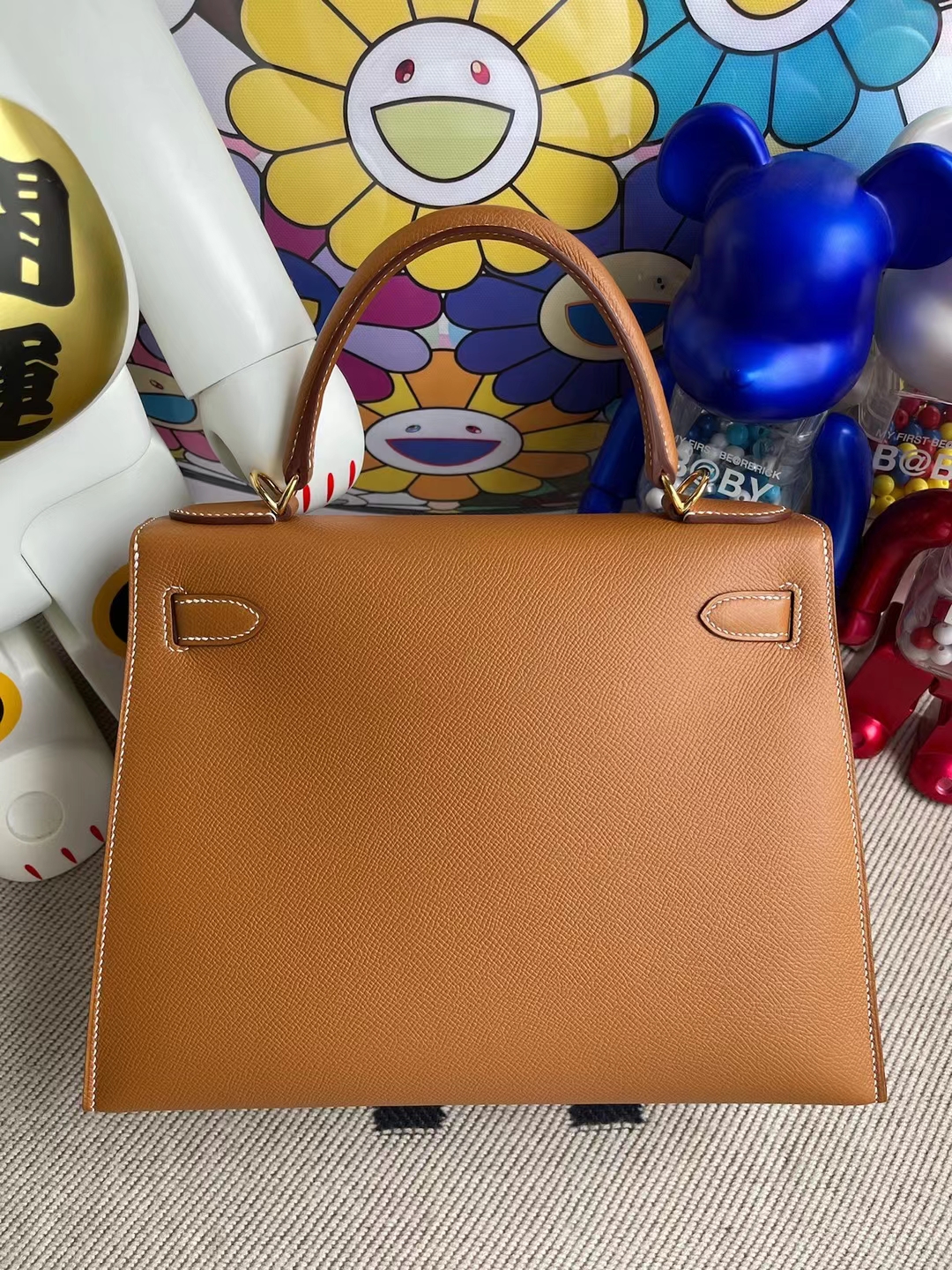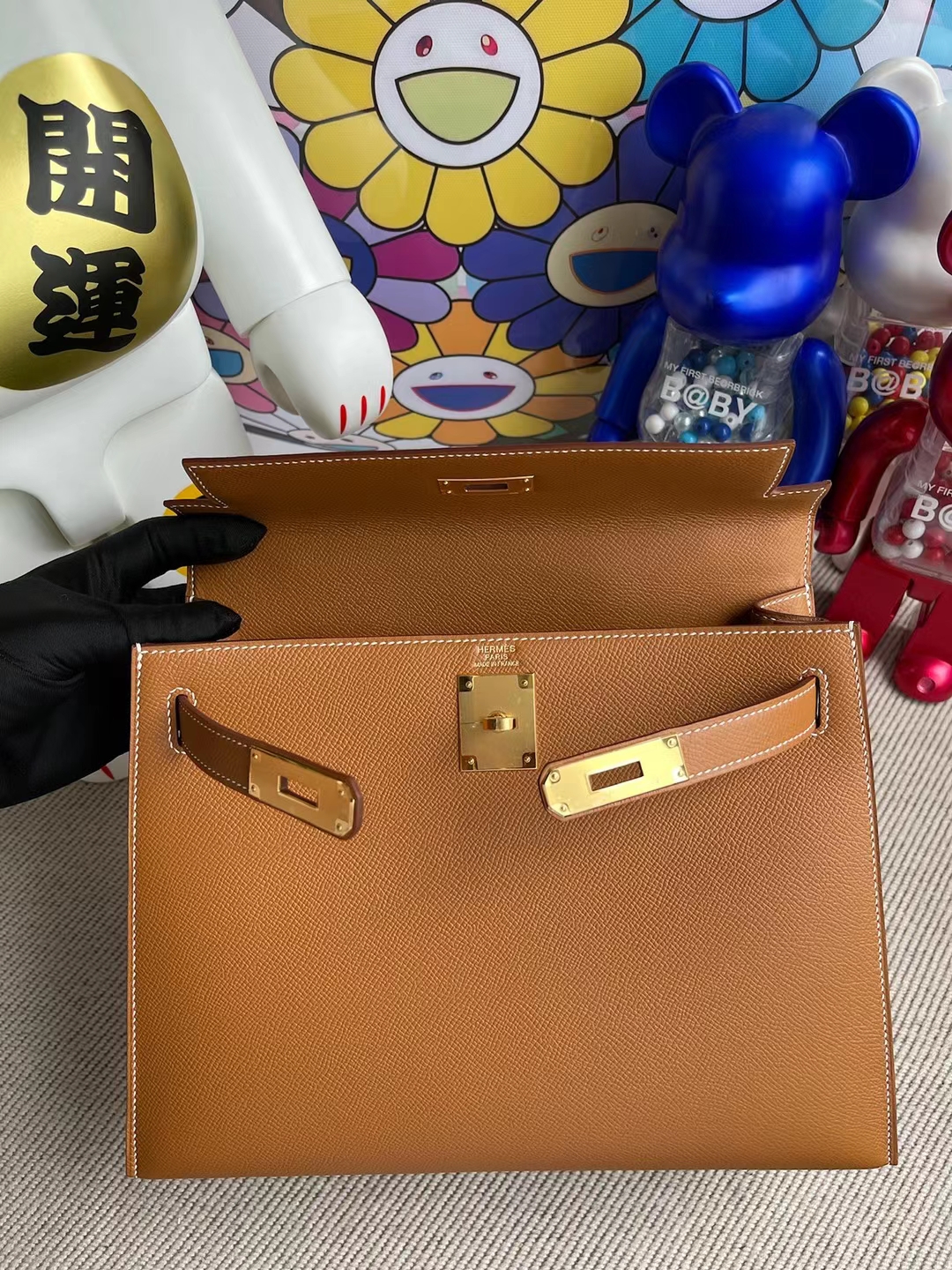 Kelly 28cm Epsom Ck37 Golden brown Gold Hardware Full Handmade