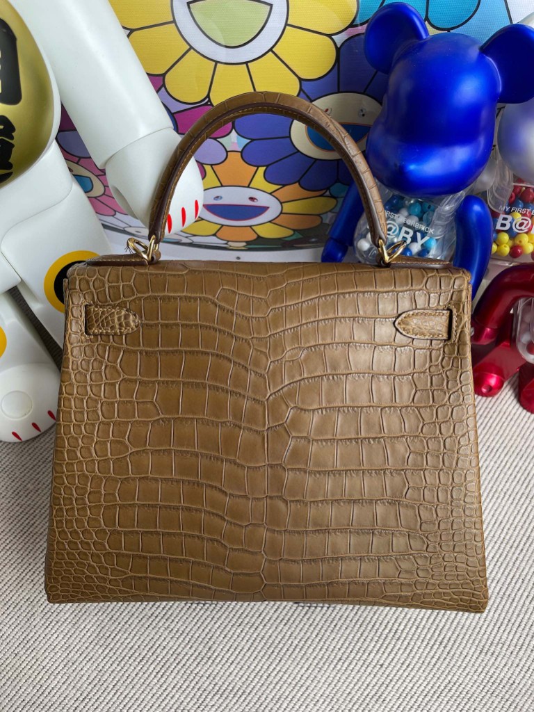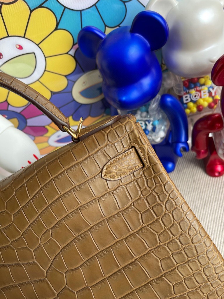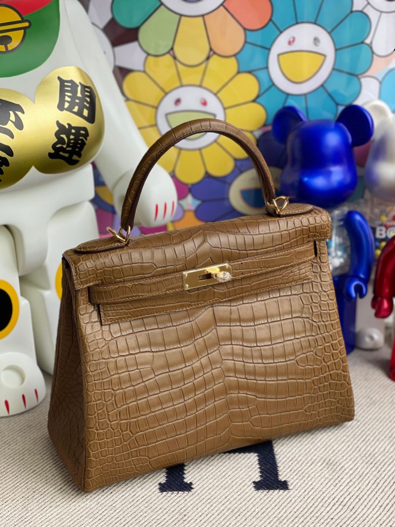 Kelly 28cm porosus matt Golden brown Gold Hardware Full Handmade