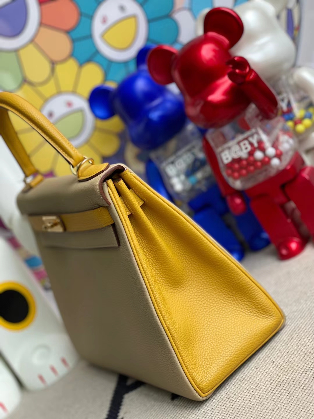 Kelly 28cm Togo Ck81 Griss & 9D Amber yellow Gold Hardware Full Handmade