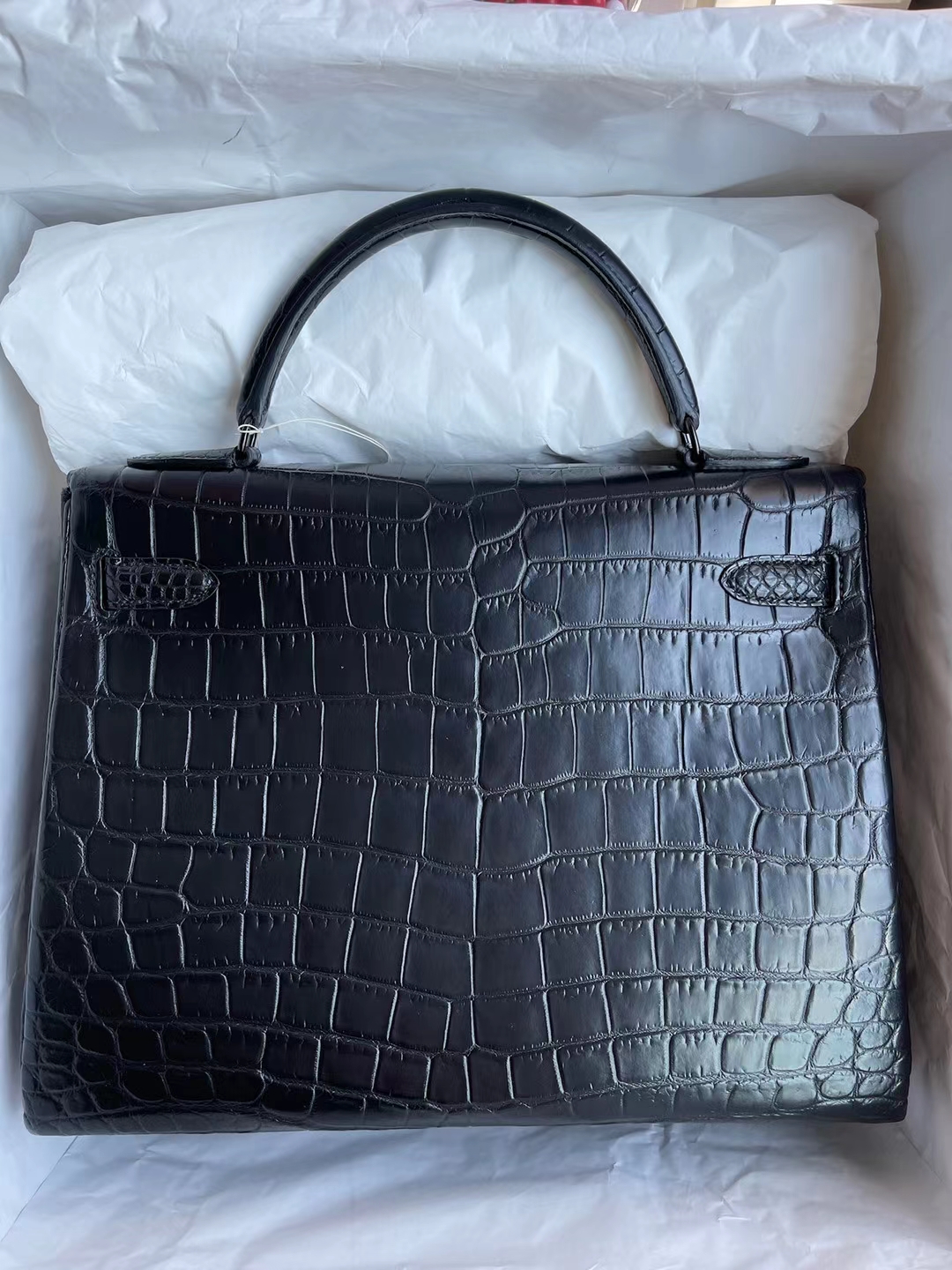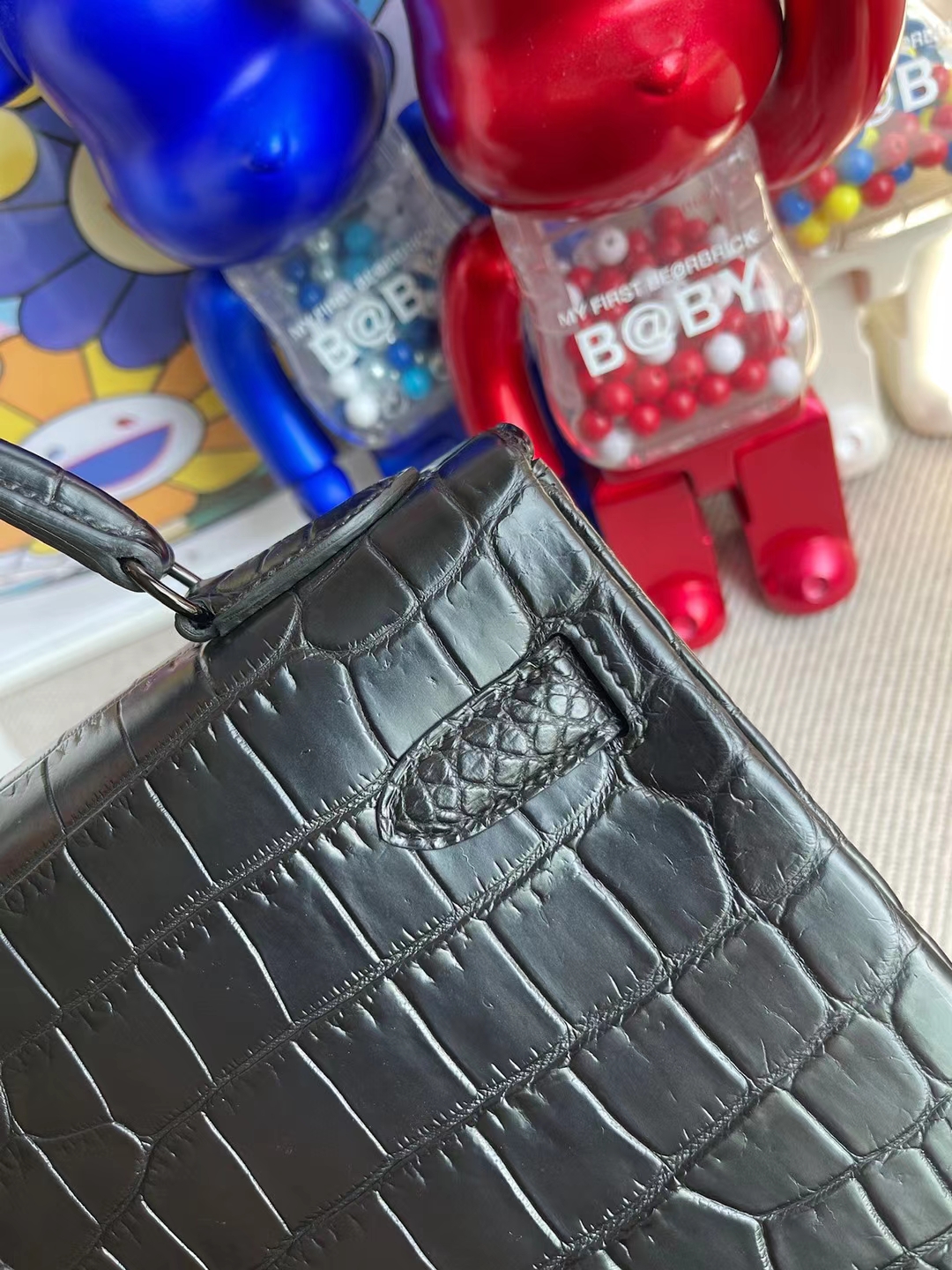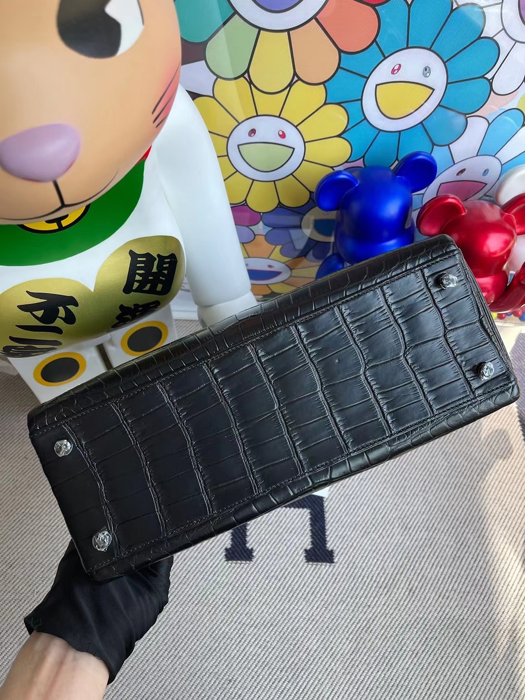 Kelly 32cm Matte Niloticus crocodile Ck89 Noir Black Hardware Full Handmade