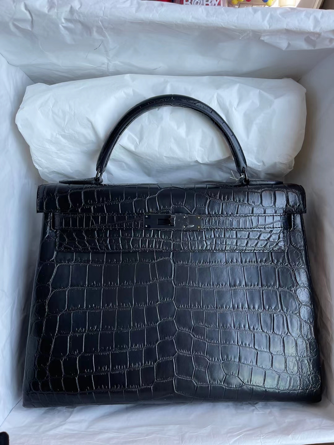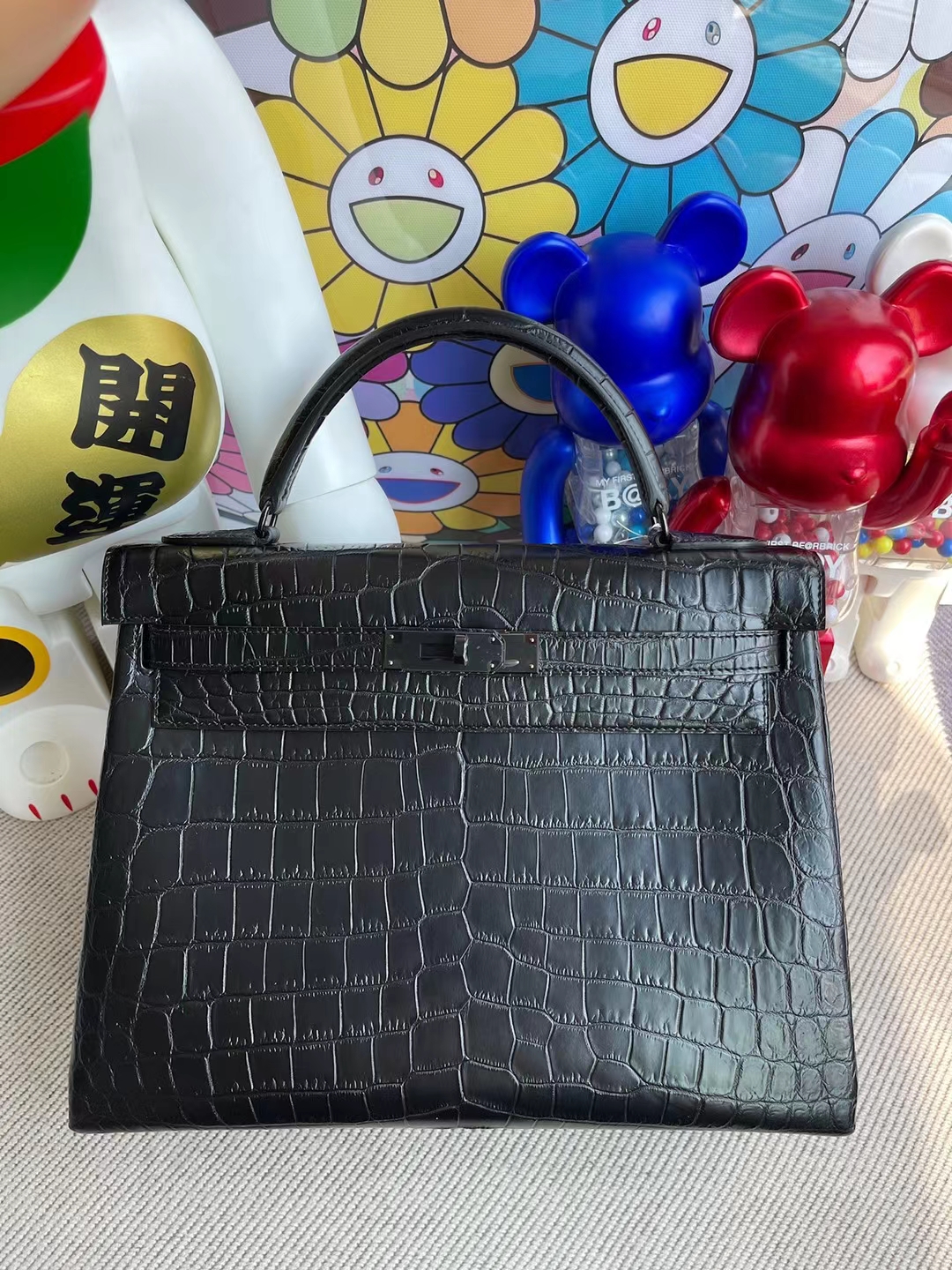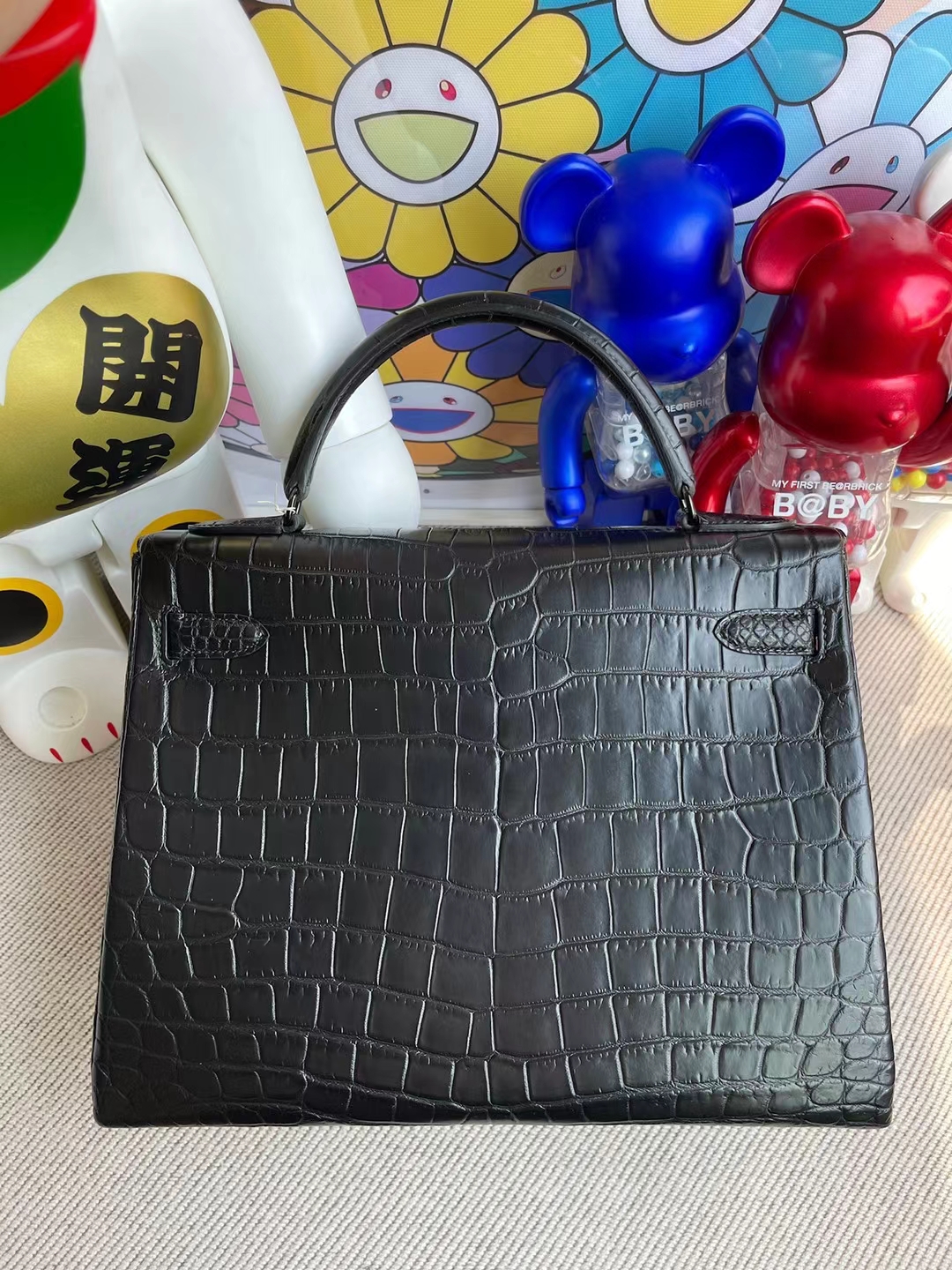 Kelly 32cm Matte Niloticus crocodile Ck89 Noir Black Hardware Full Handmade
