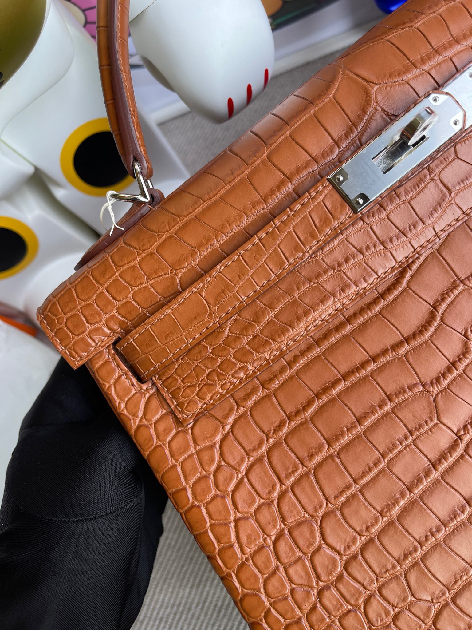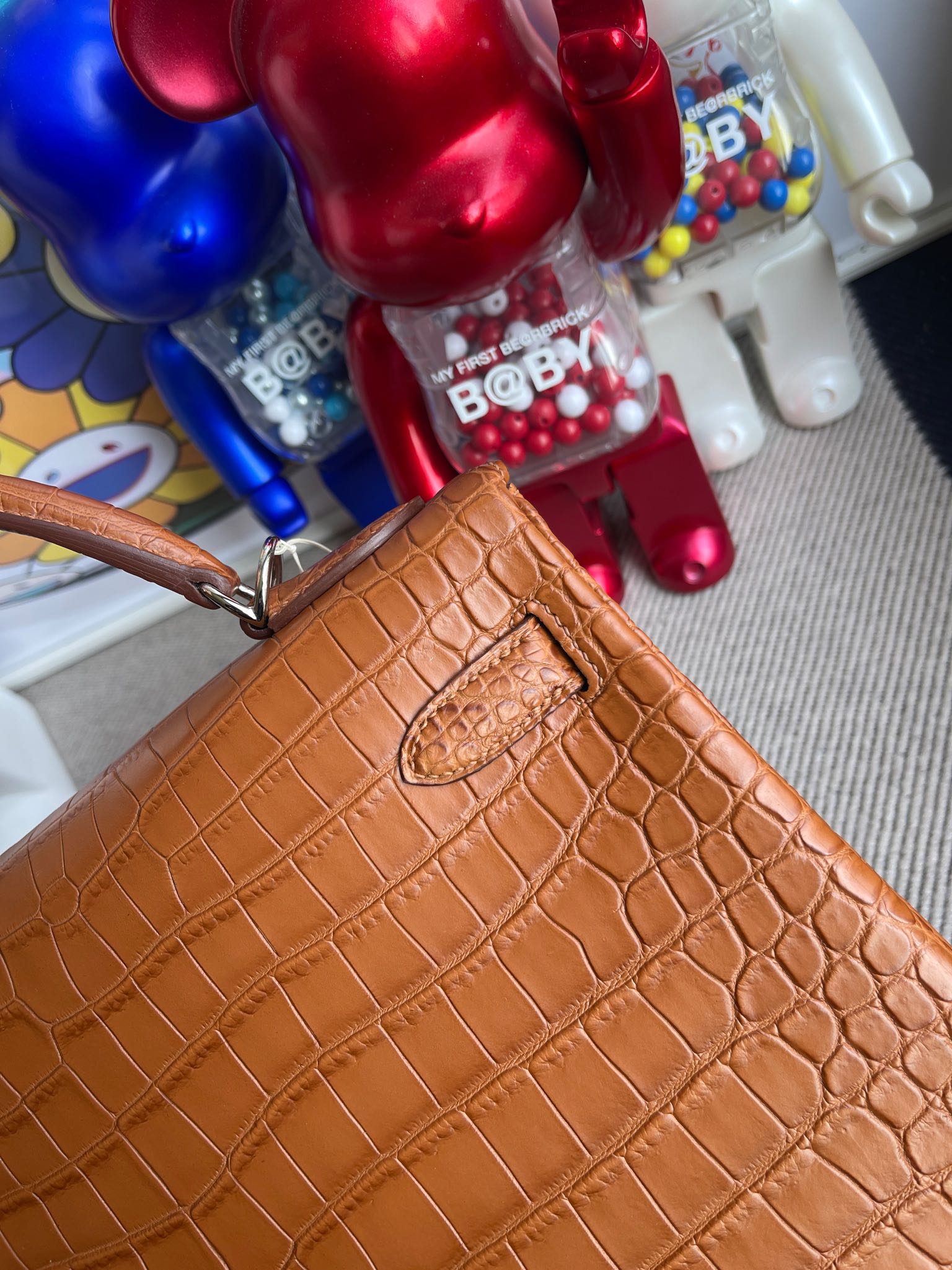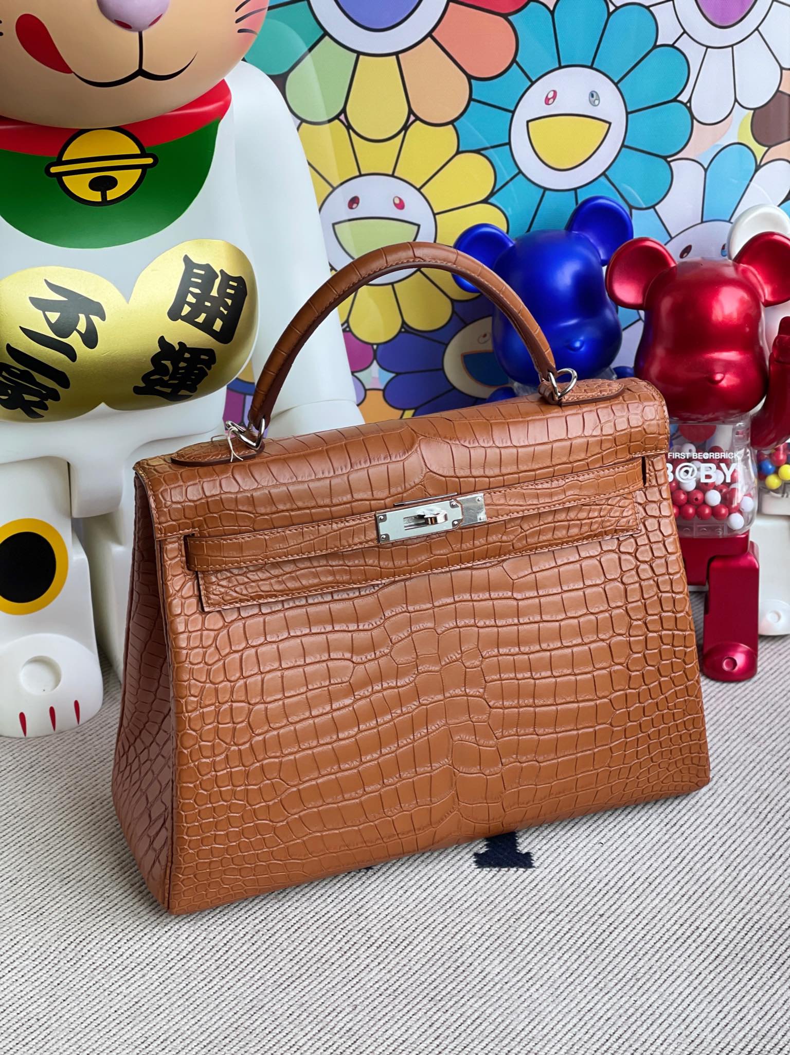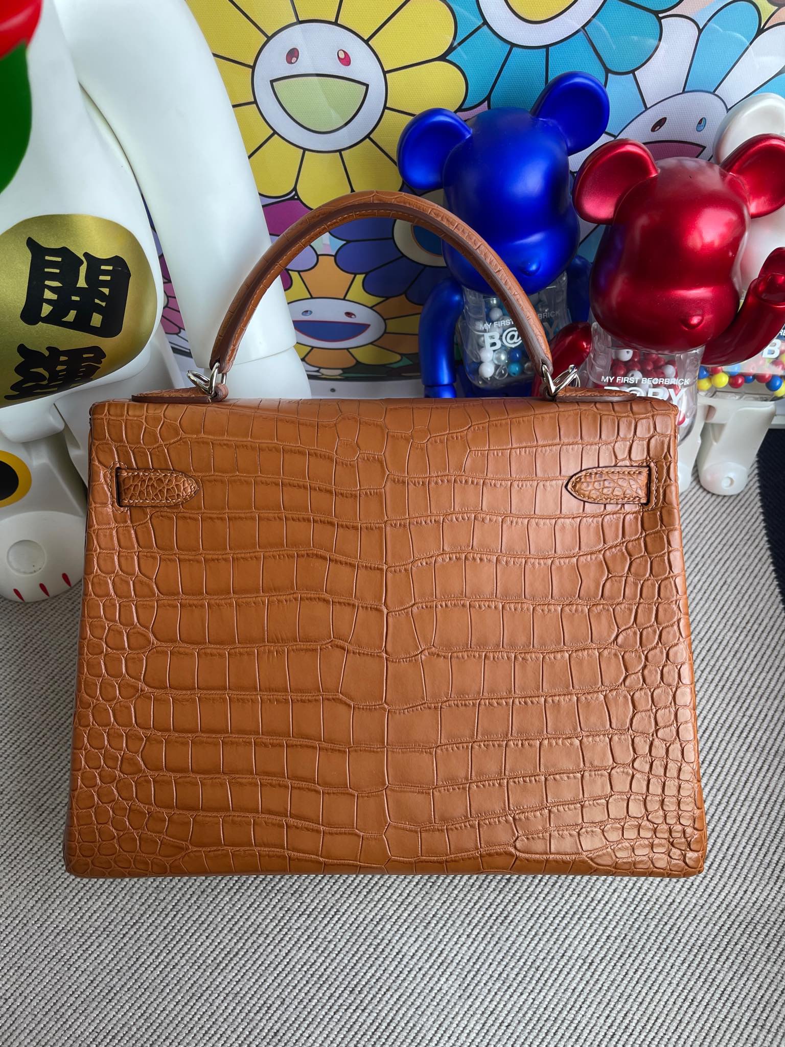 Kelly 32cm Porosus matt crocodile Golden brown Silver Hardware Full Handmade