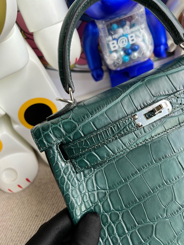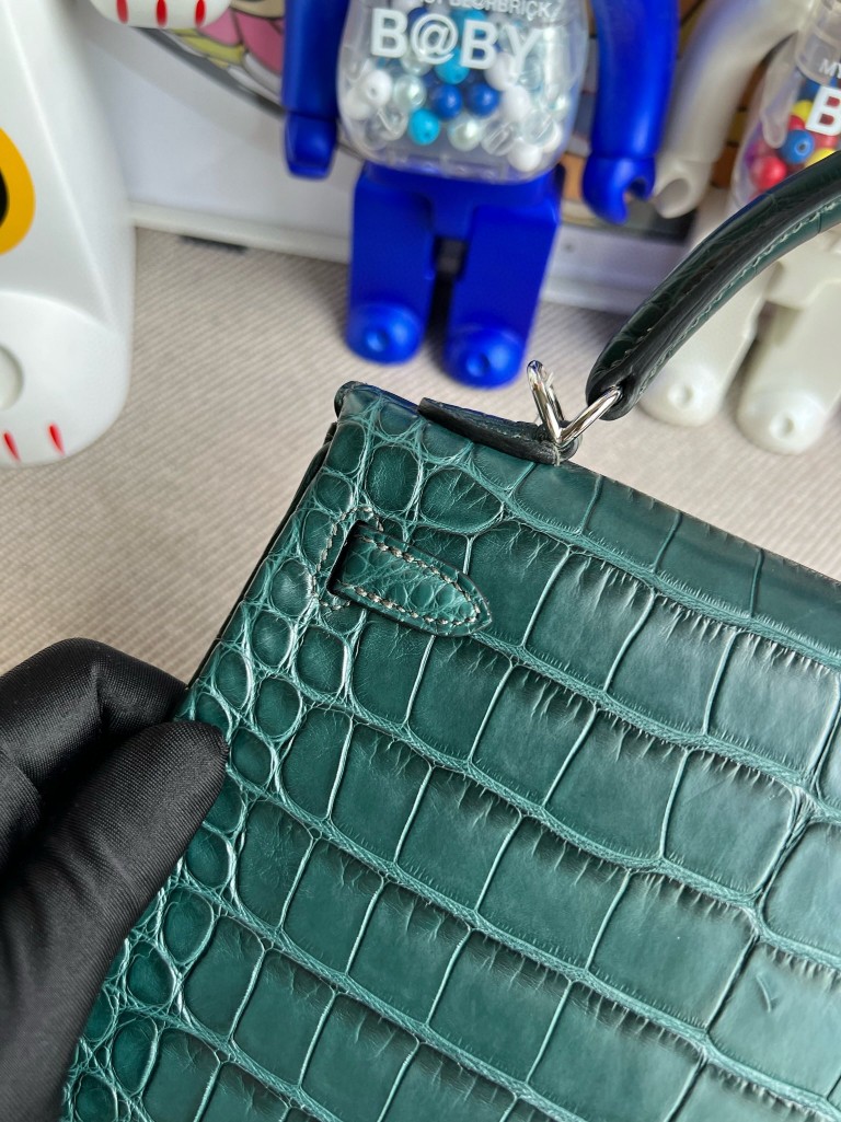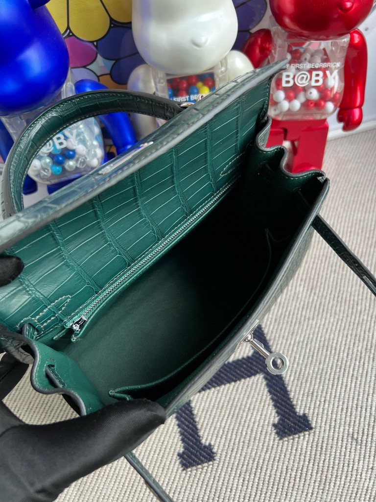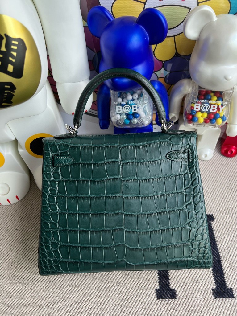 Uncle Bench Hermes Kelly Alligator matt 6O Cypress green Silver Hardware 25cm Full Handmade