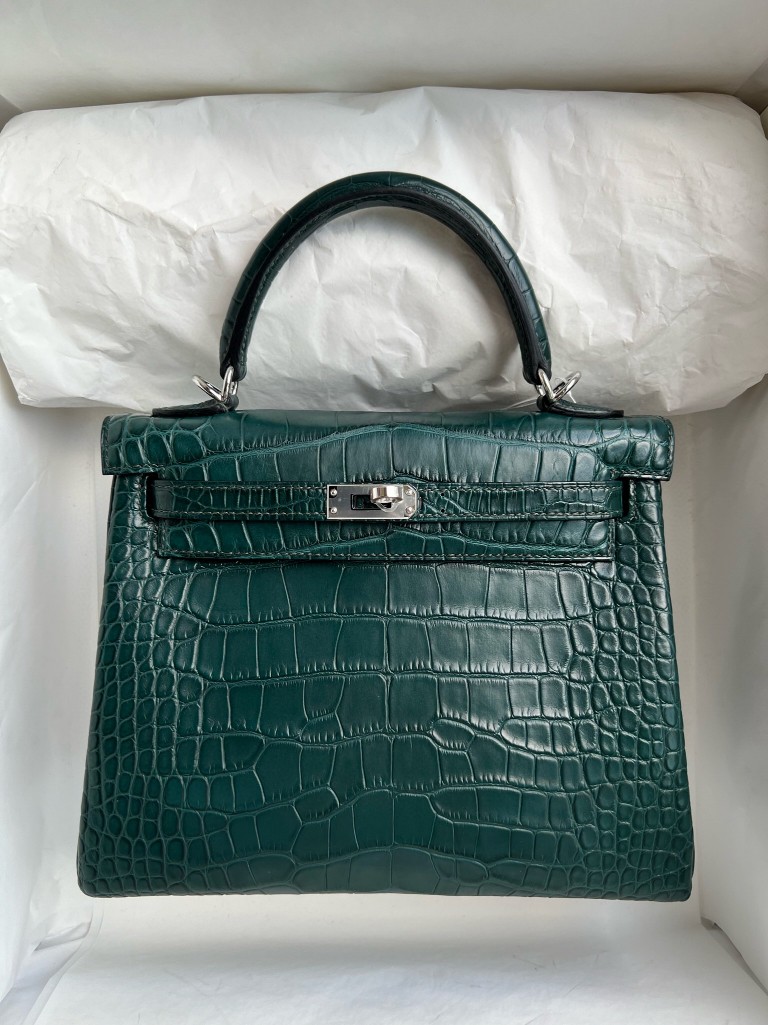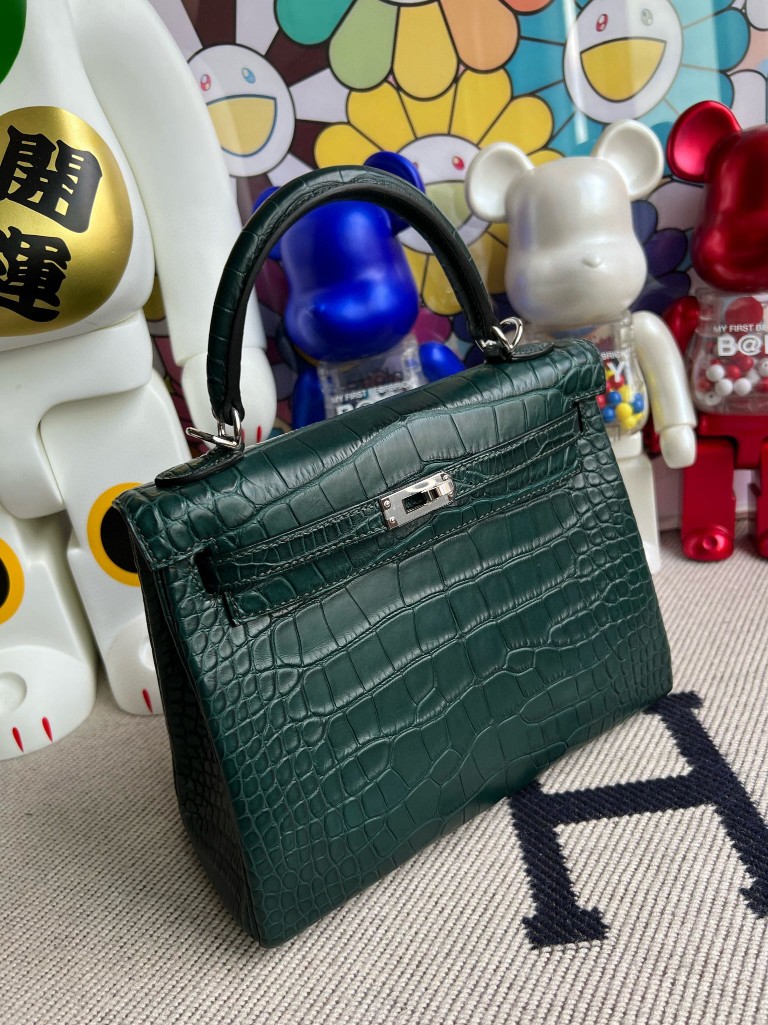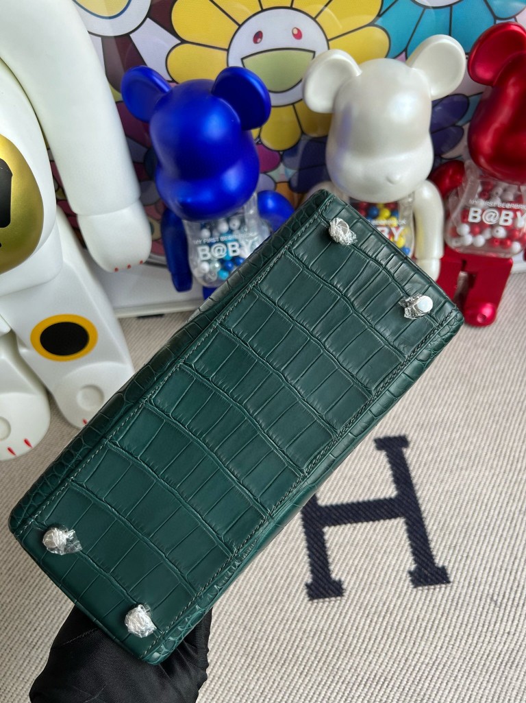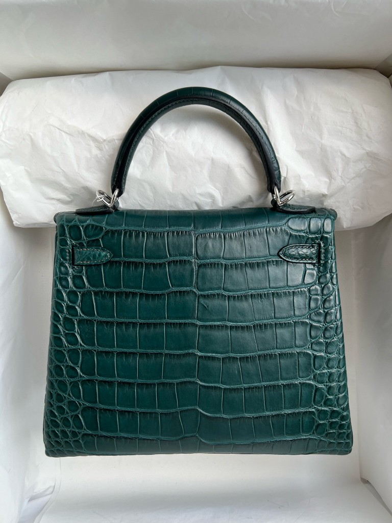 Uncle Bench Hermes Kelly Alligator matt 6O Cypress green Silver Hardware 25cm Full Handmade