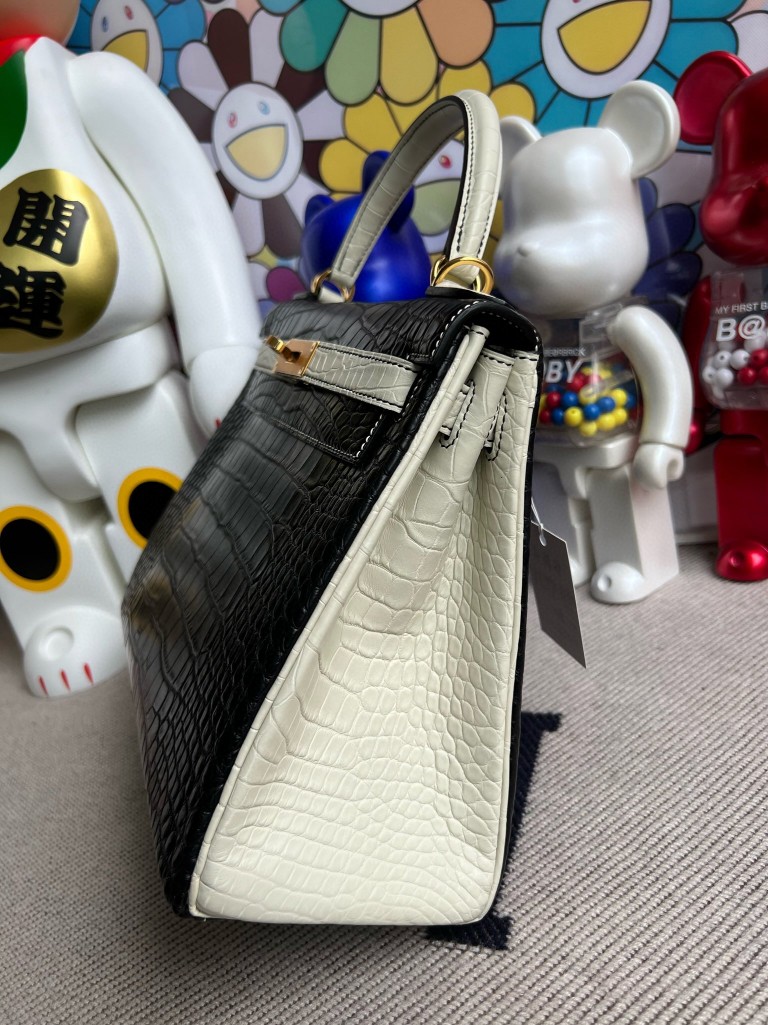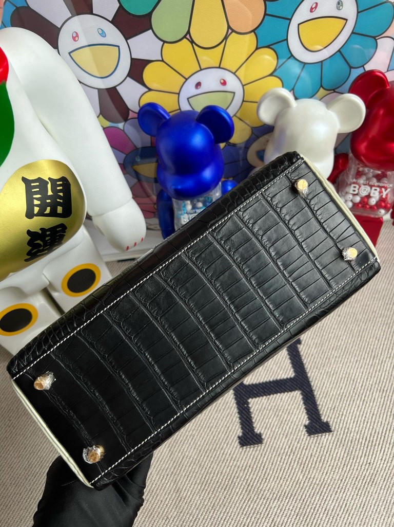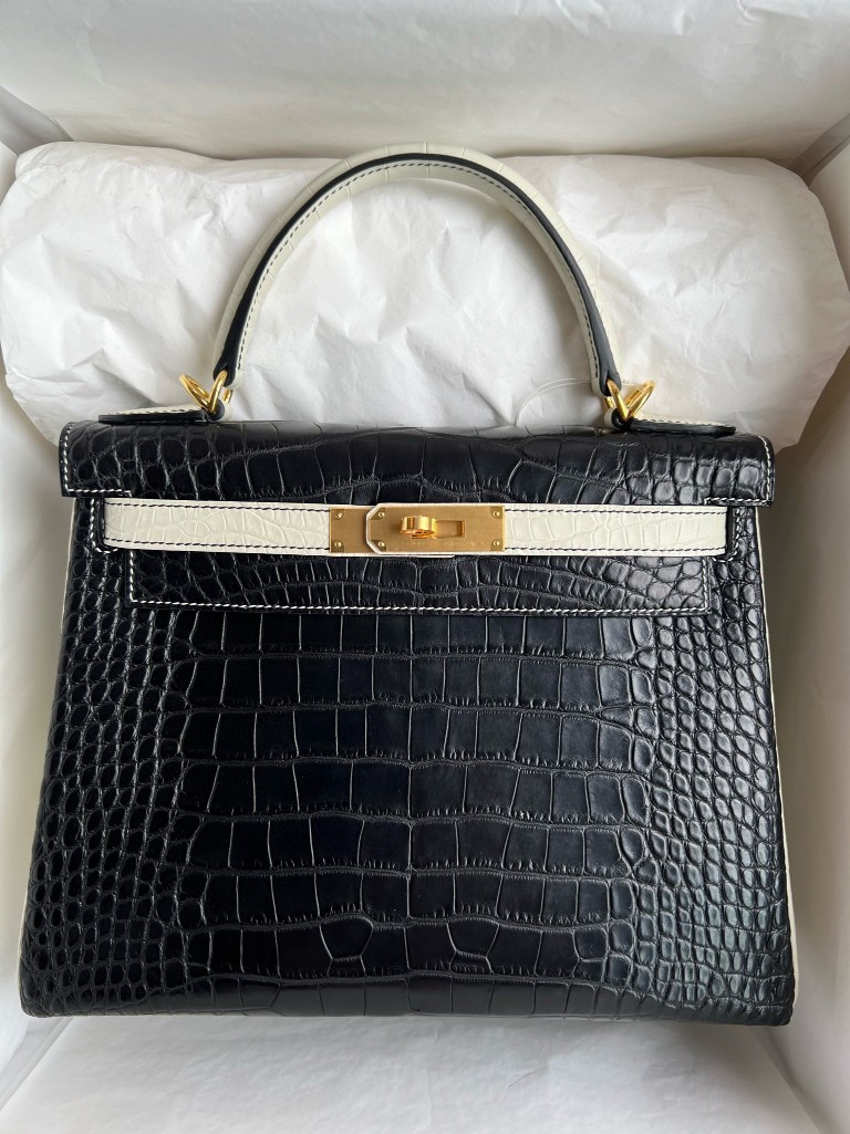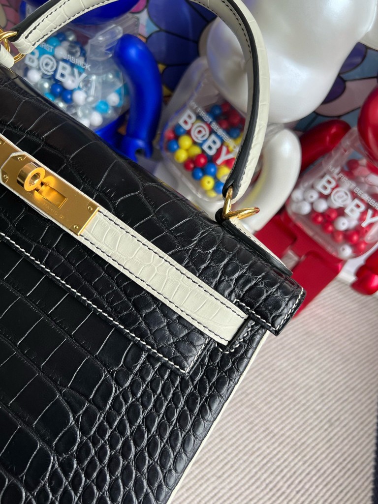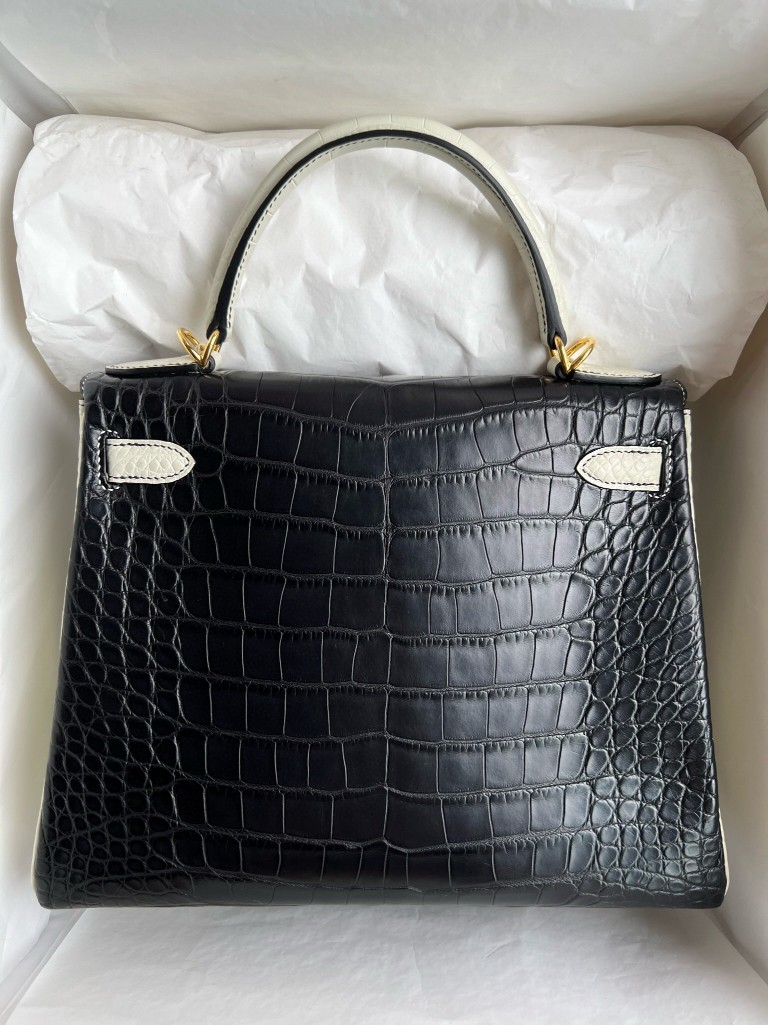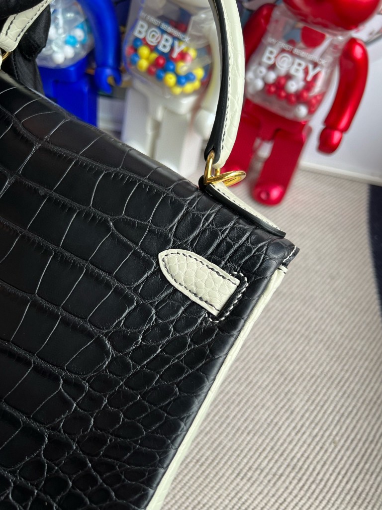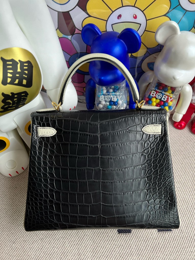 Kelly Alligator matt ck89 Noir & 8L beton Gold Hardware 28cm Full Handmade