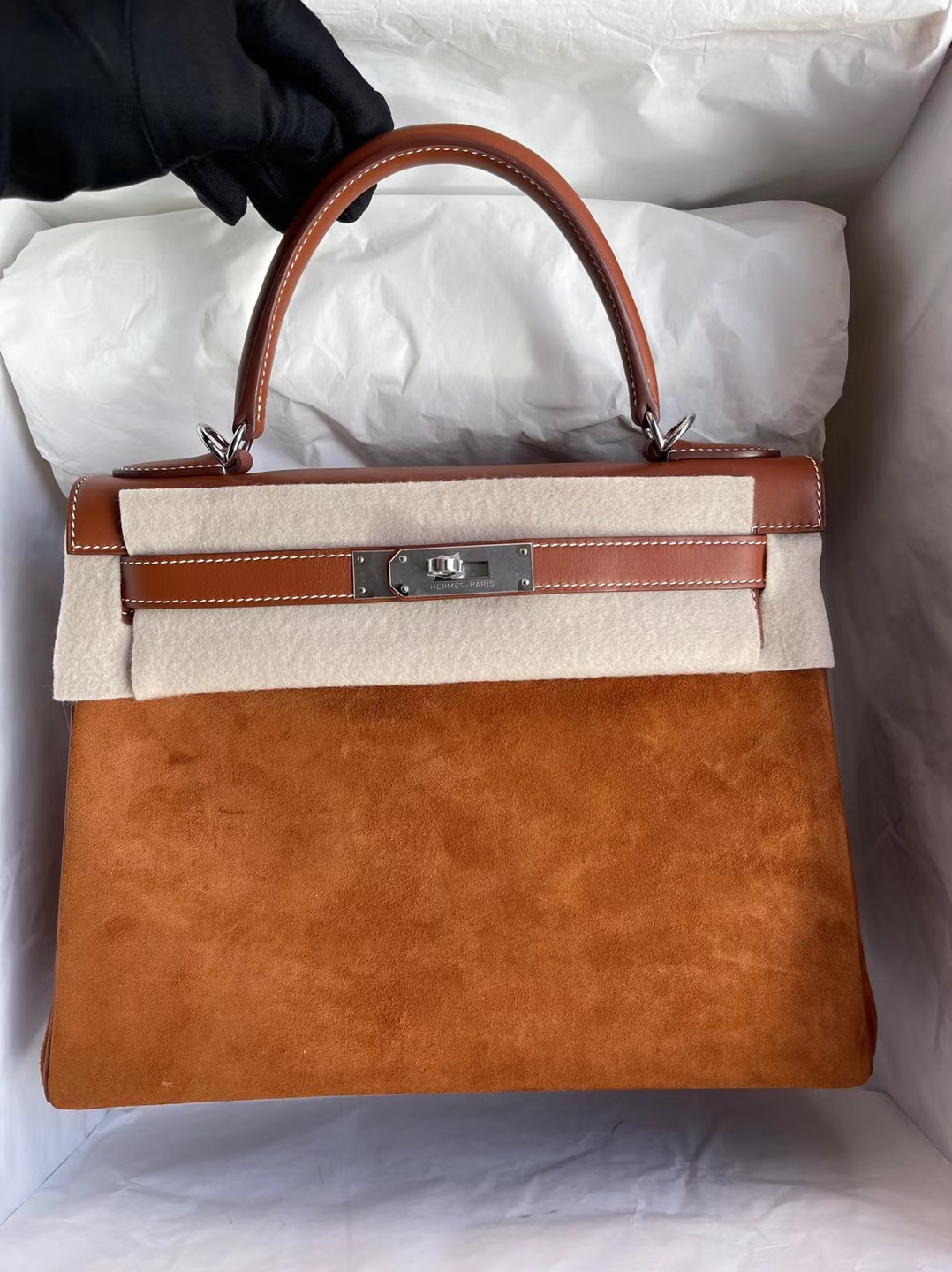 kelly chamois & Barenia Ck37 Golden Silver Hardware 28cm Full Handmade