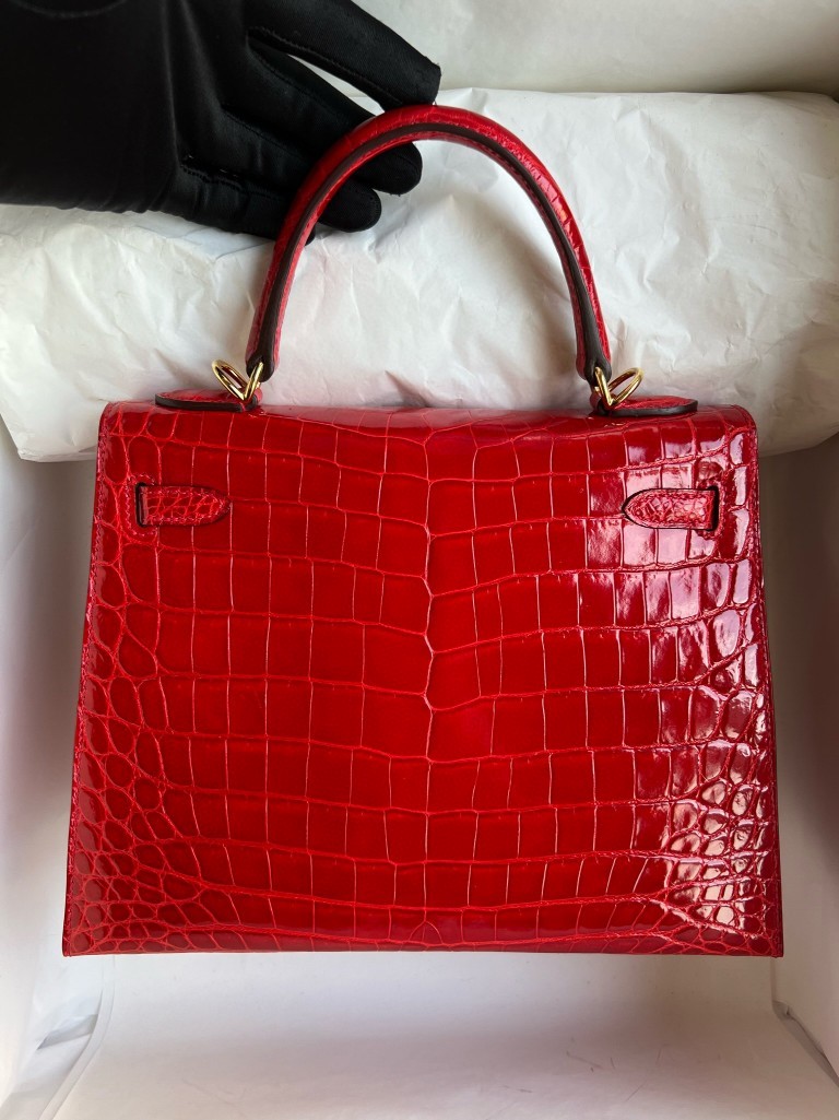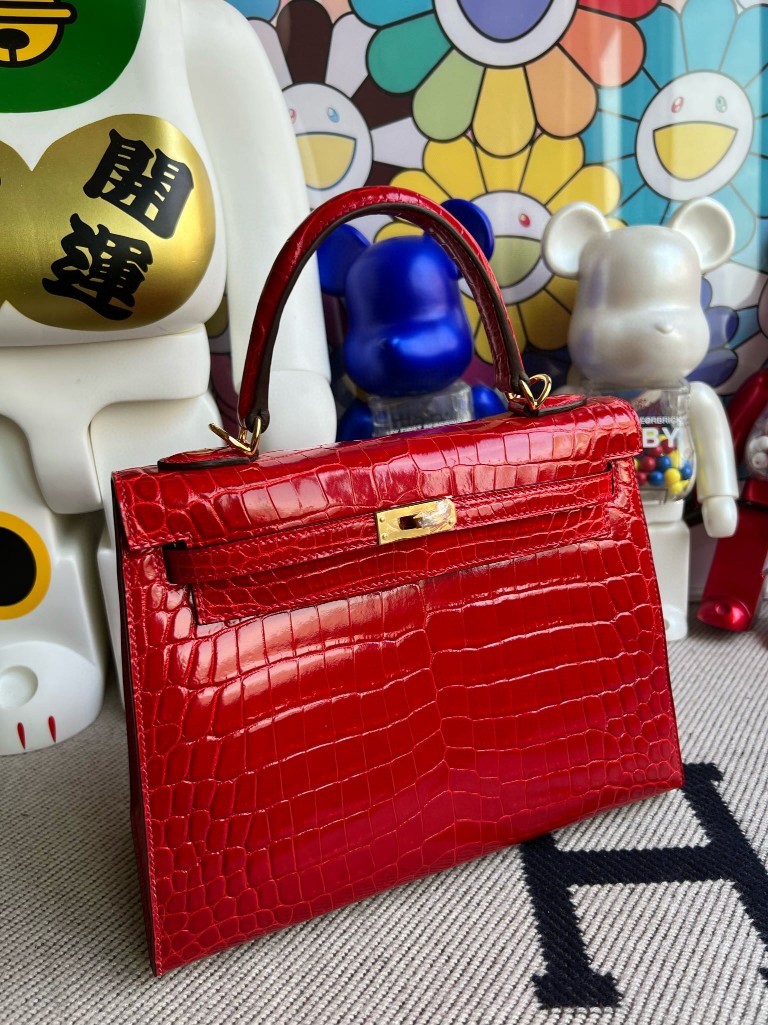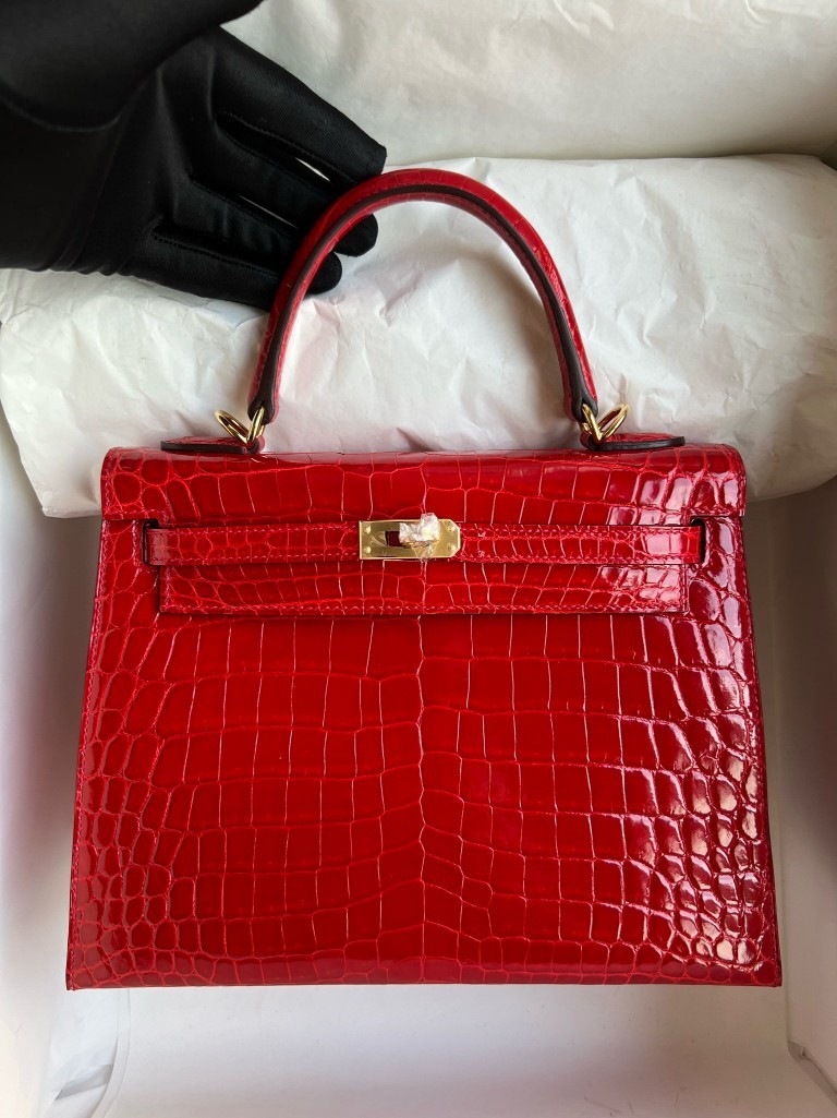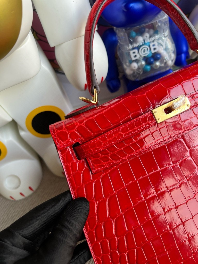 Uncle Bench Hermes Kelly Crocodile shiny ck95 Braise Gold Hardware 25cm Full Handmade