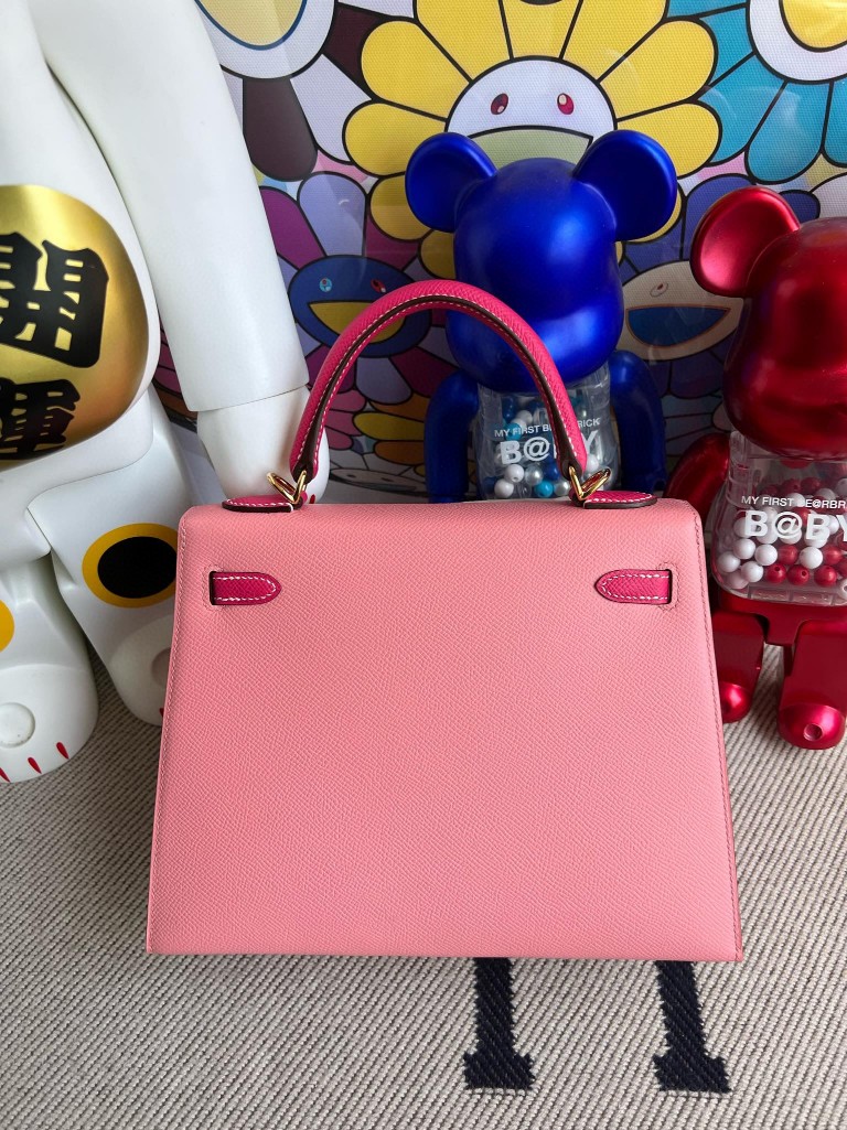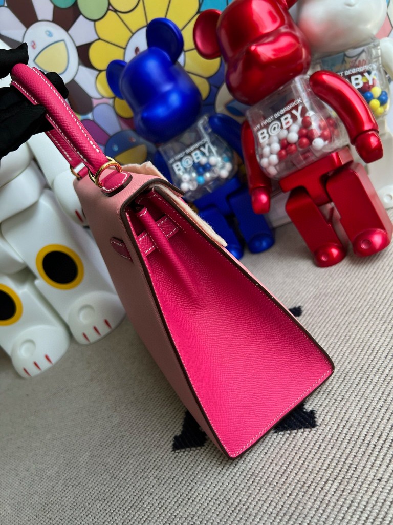 Kelly Epsom 1Q creamy pink & E5 candy pink Gold Hardware 25cm Full Handmade