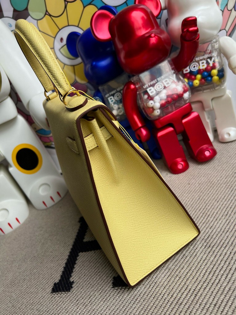 Uncle Bench Hermes kelly Epsom 1Z Lemon yellow Gold Hardware 25cm Full Handmade