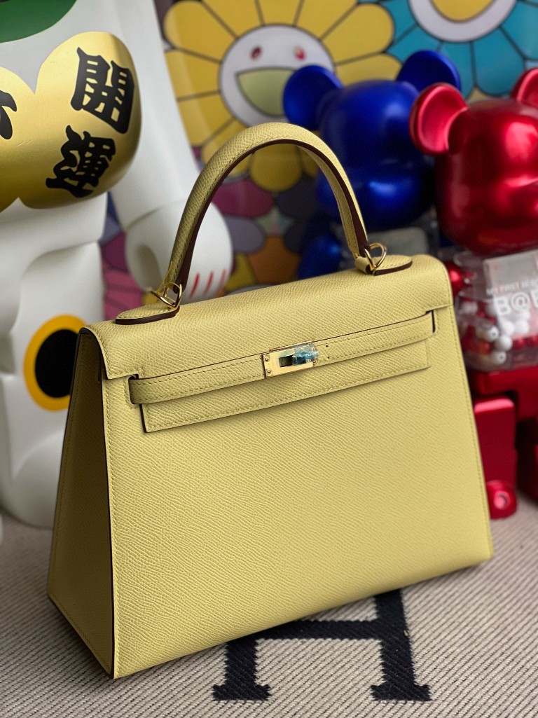 kelly Epsom 1Z Lemon yellow Gold Hardware 25cm Full Handmade