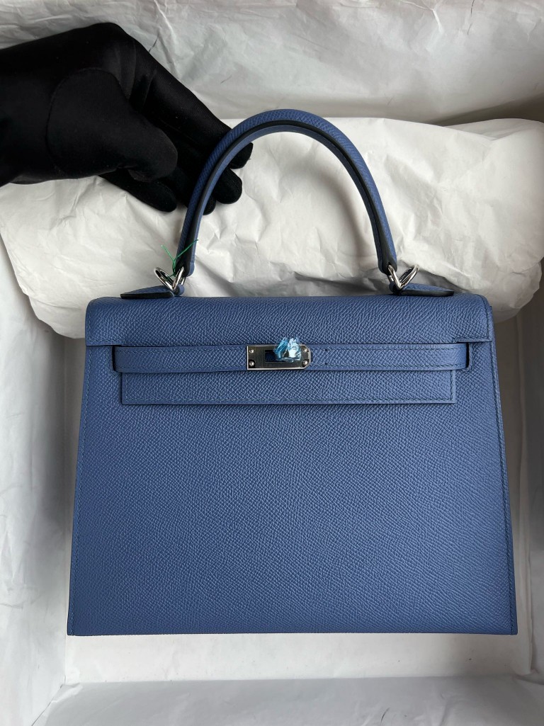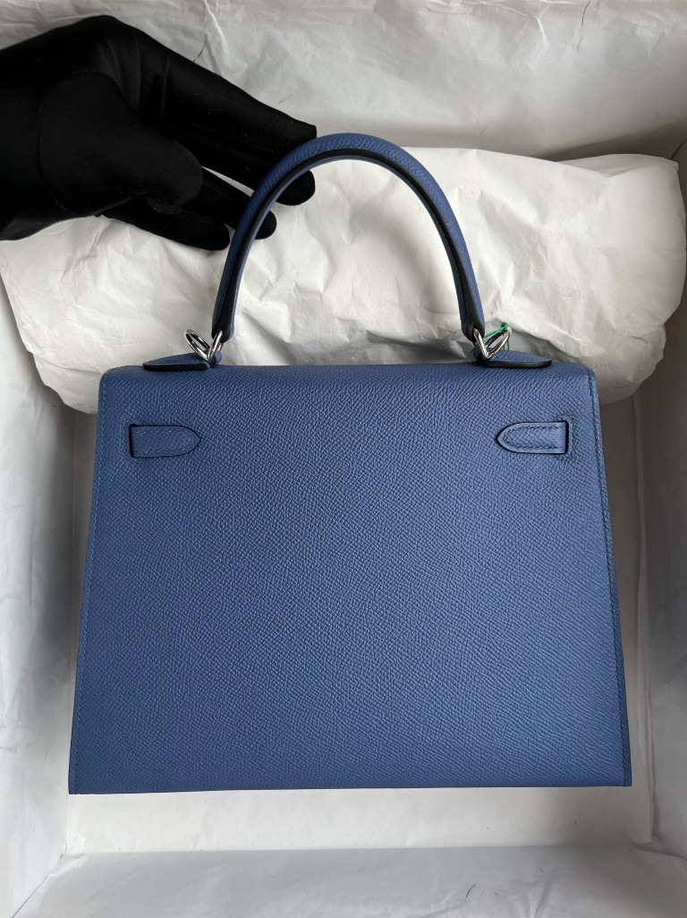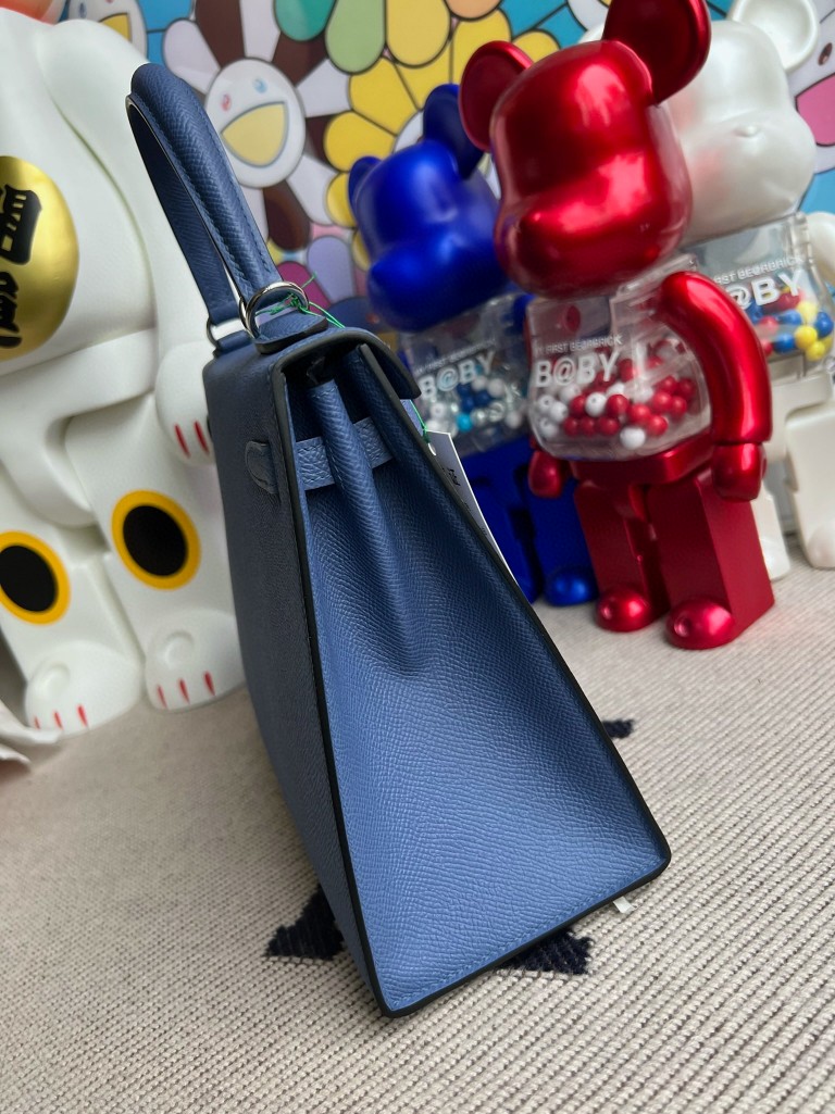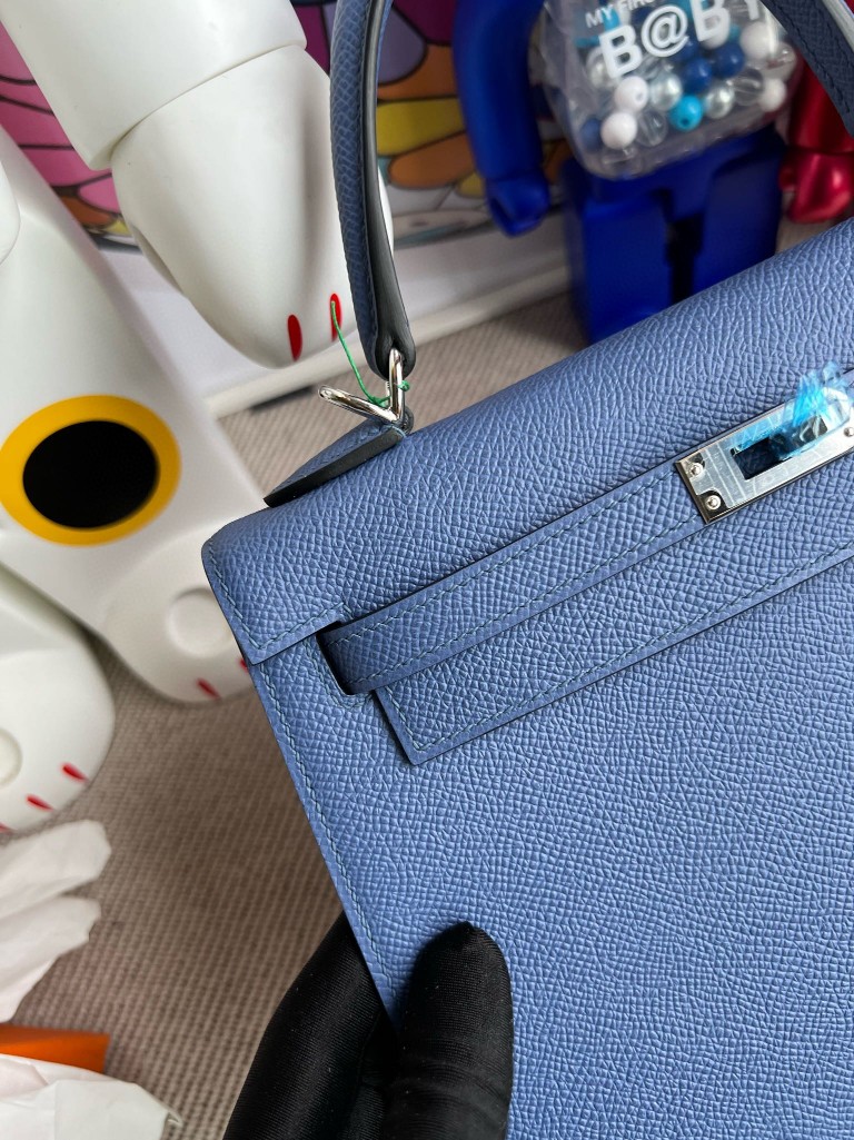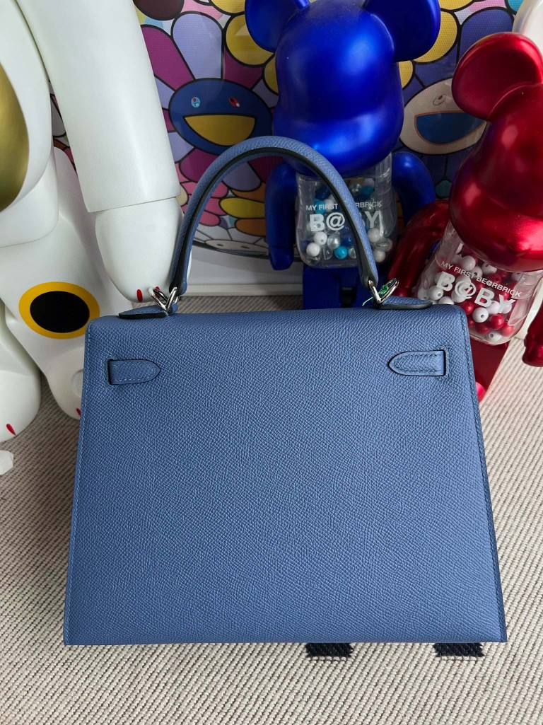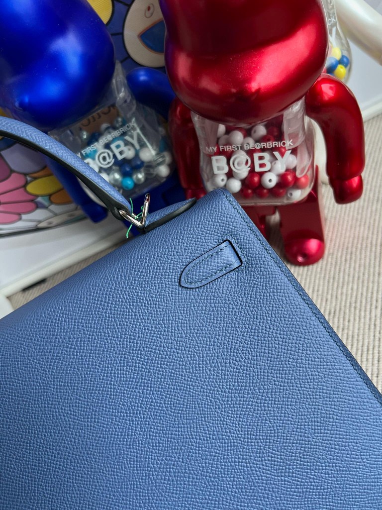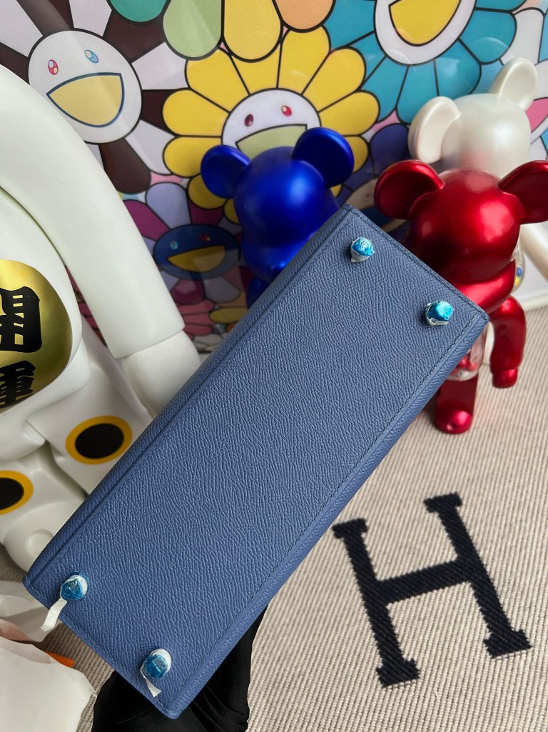 Kelly Epsom 7E Bright Blue Silver Hardware 25cm Full Handmade