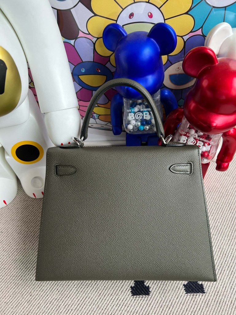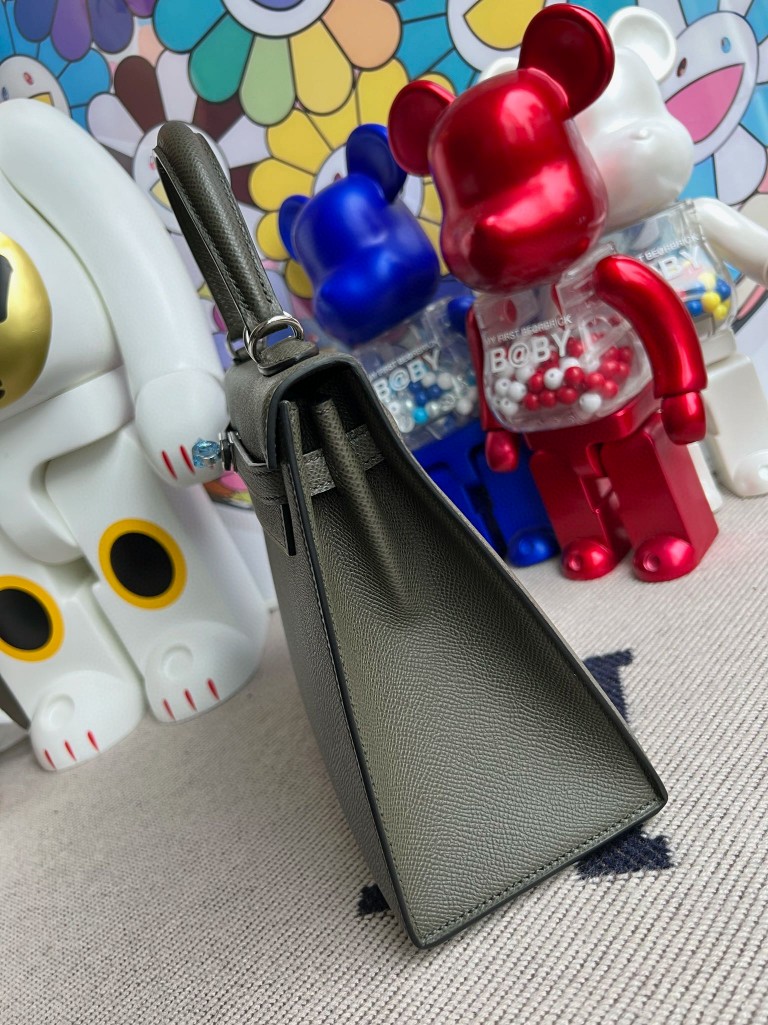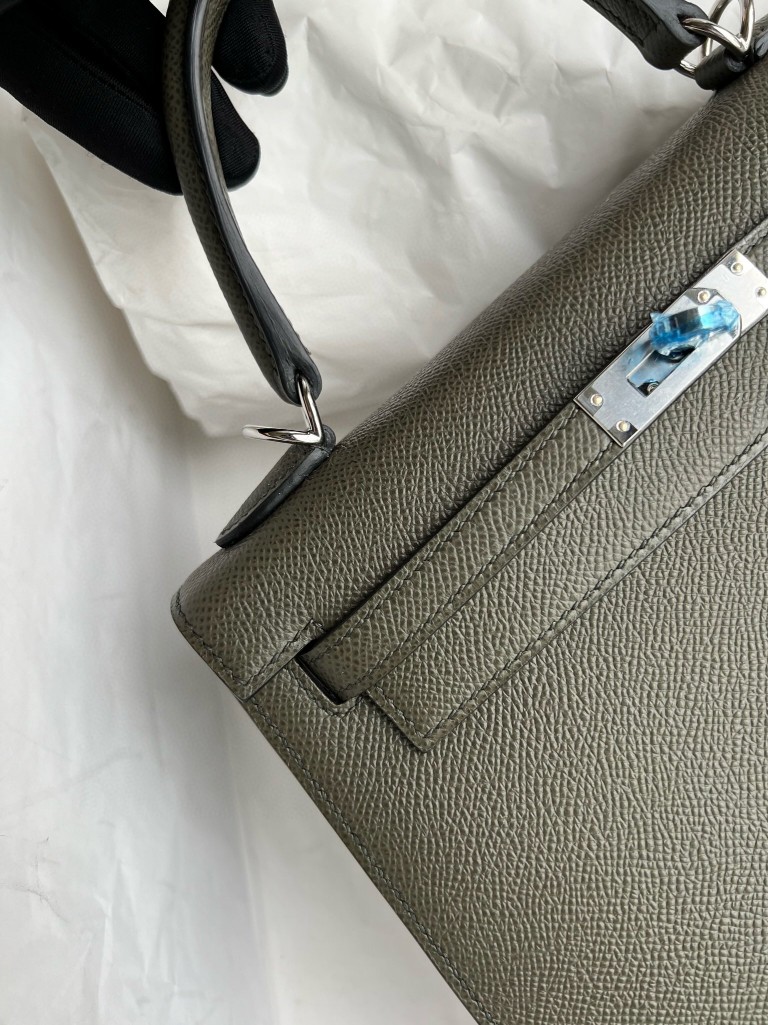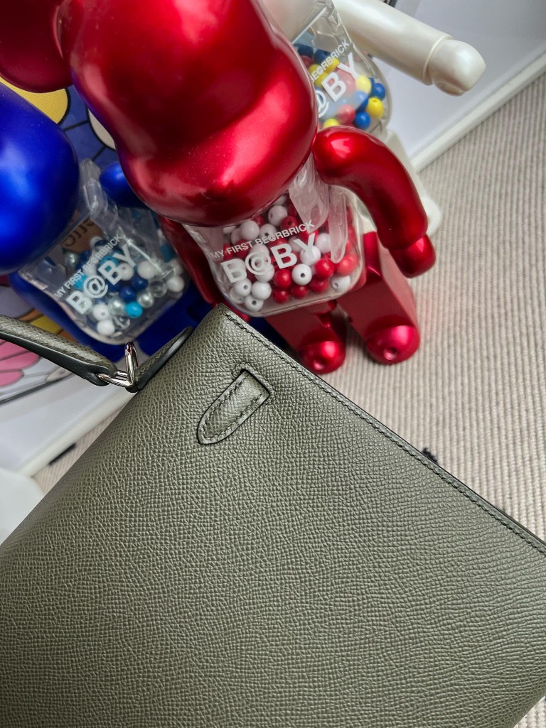 Kelly Epsom C6 greyish green Silver Hardware 25cm Full Handmade
