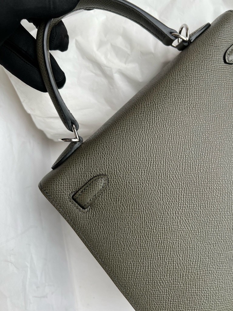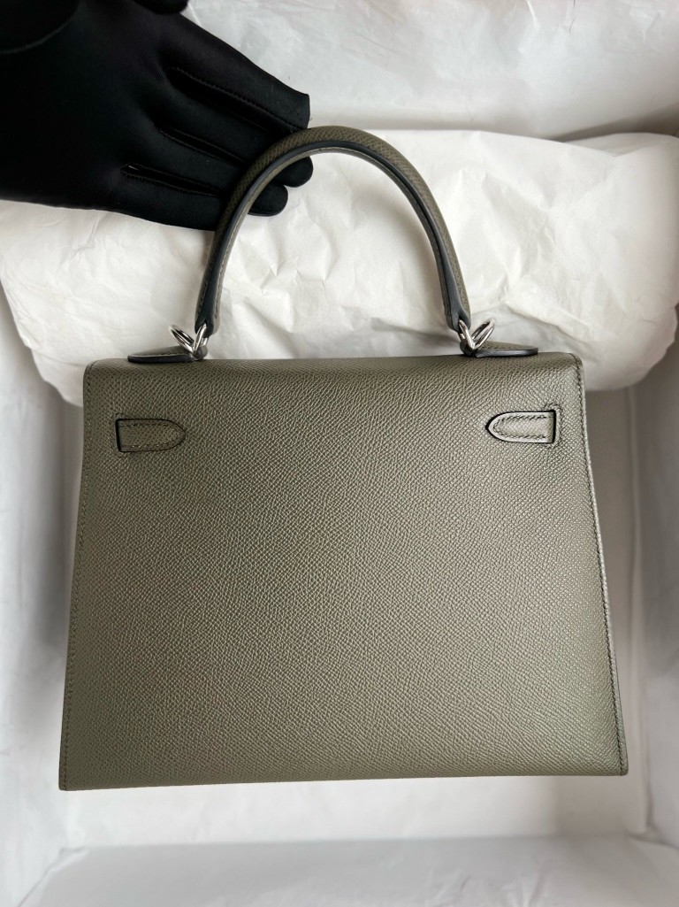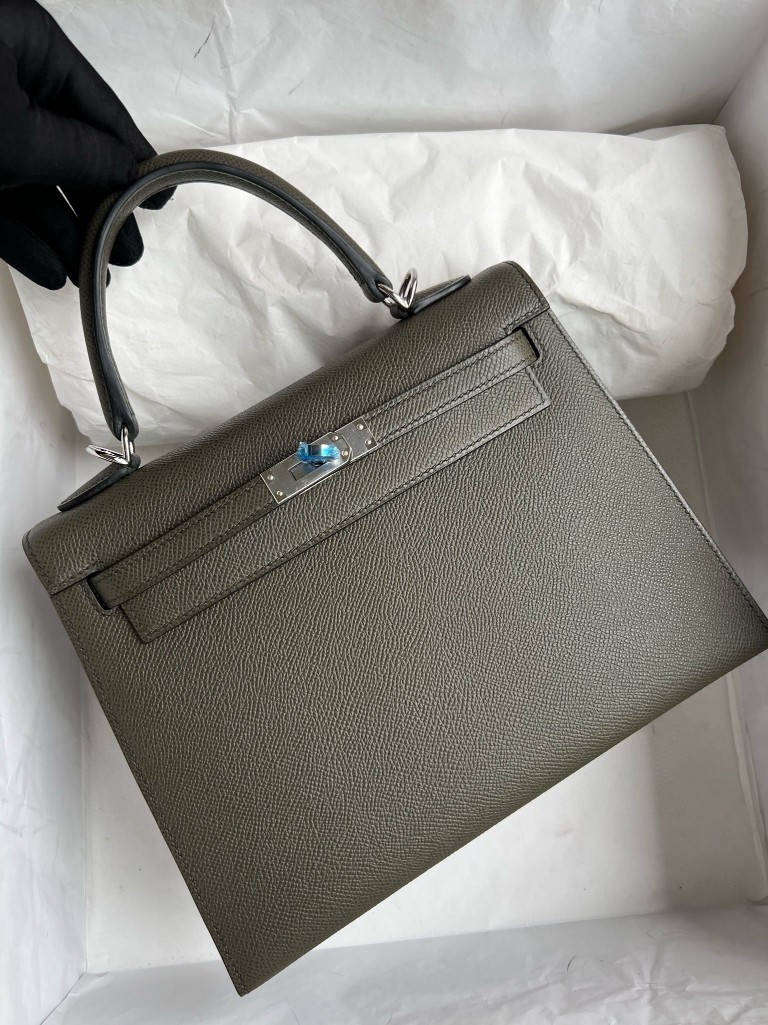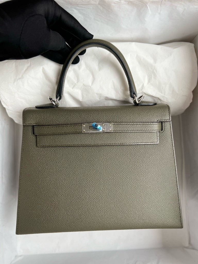 Kelly Epsom C6 greyish green Silver Hardware 25cm Full Handmade