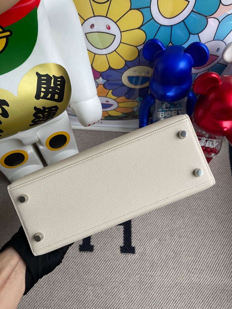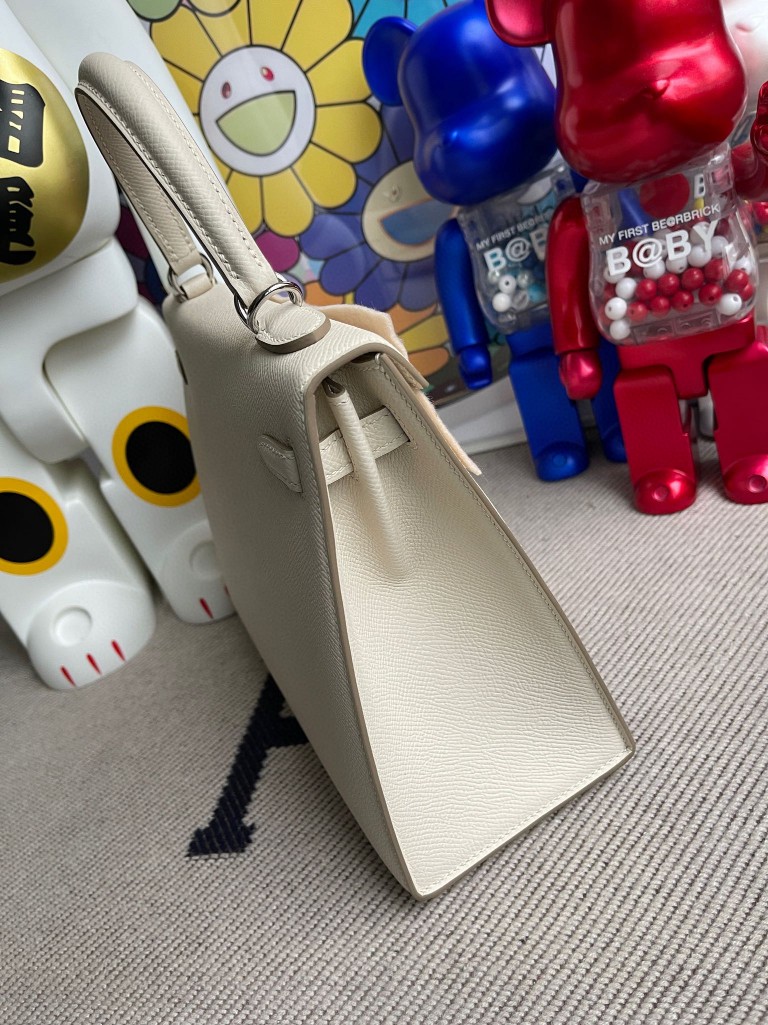Kelly Epsom ck10 Craie Silver Hardware 25cm Full Handmade