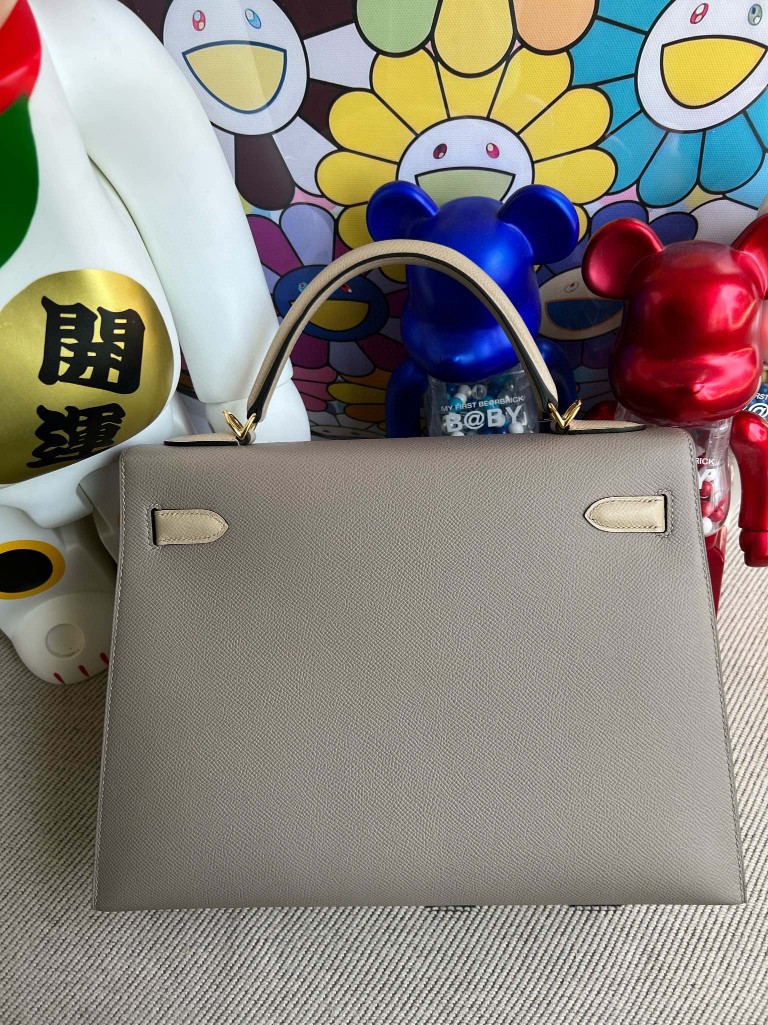 Uncle Bench Hermes Kelly Epsom M8 Gris Asphalte & Trench Gold Hardware 32cm Full Handmade