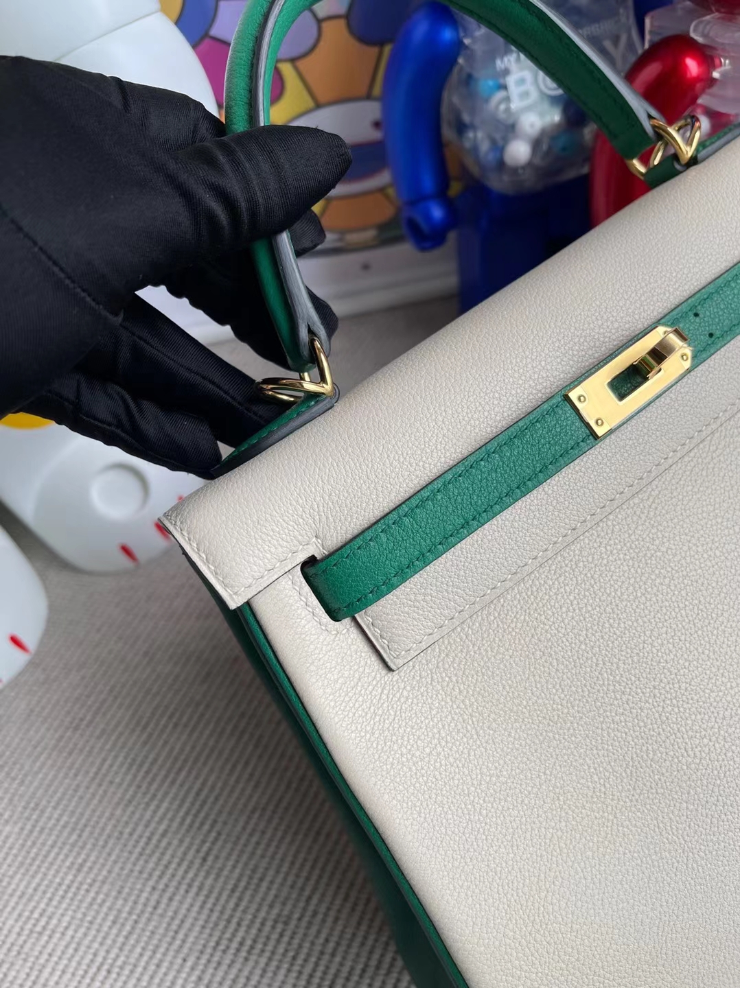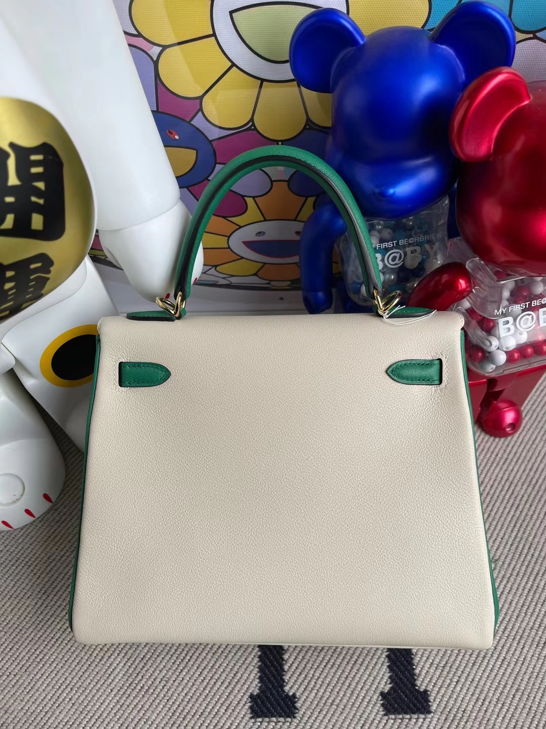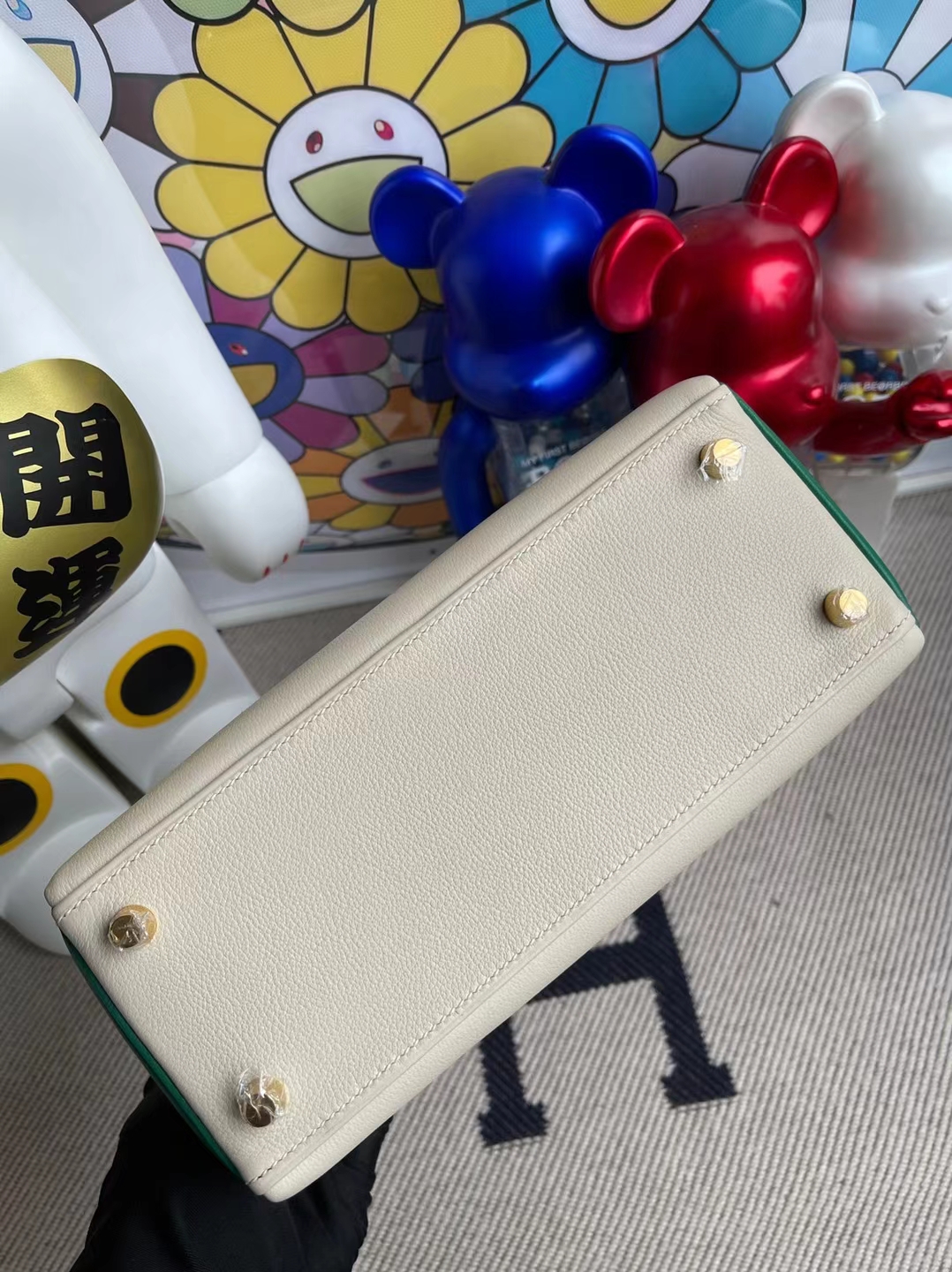 kelly Hss Evercolor Ck10 Craie & U4 Vert Vertigo Gold Hardware 25cm Full Handmade