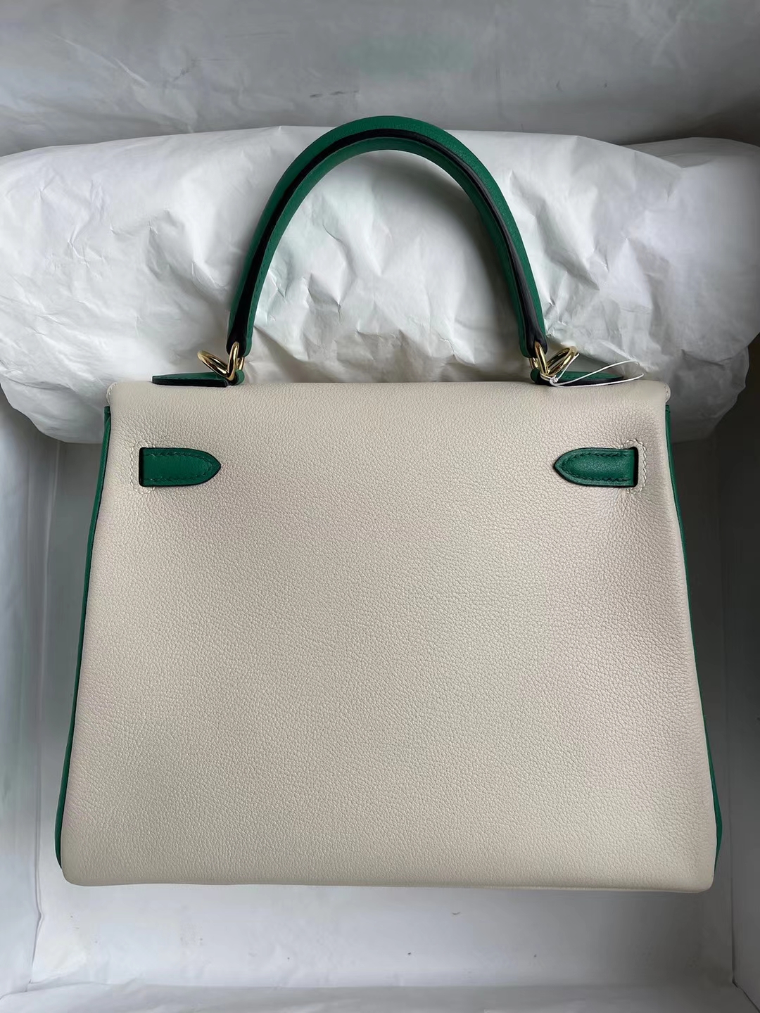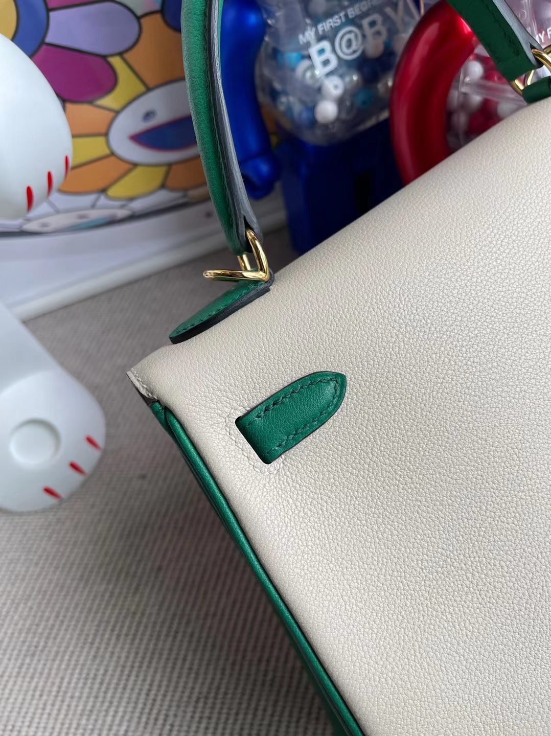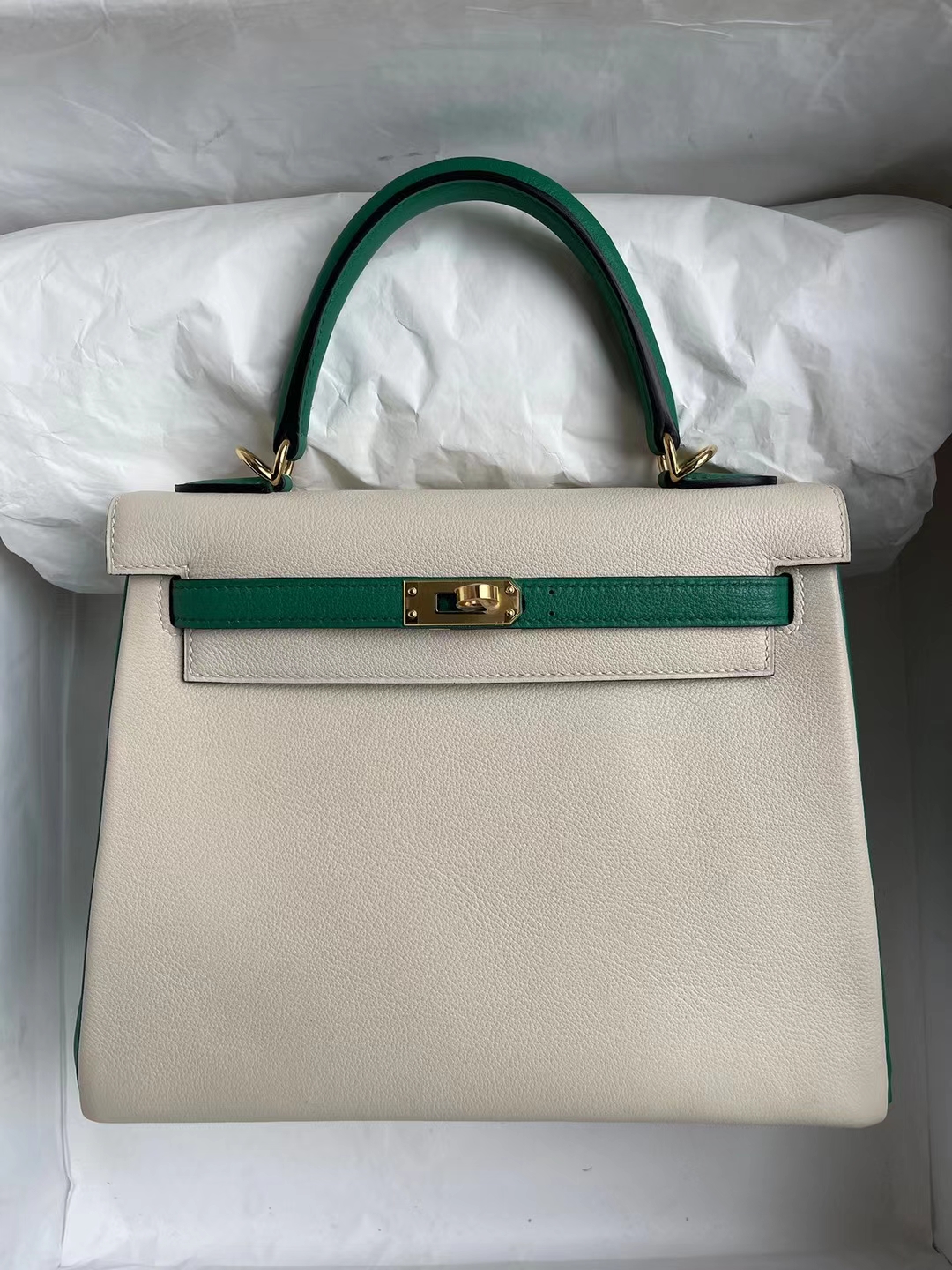 kelly Hss Evercolor Ck10 Craie & U4 Vert Vertigo Gold Hardware 25cm Full Handmade