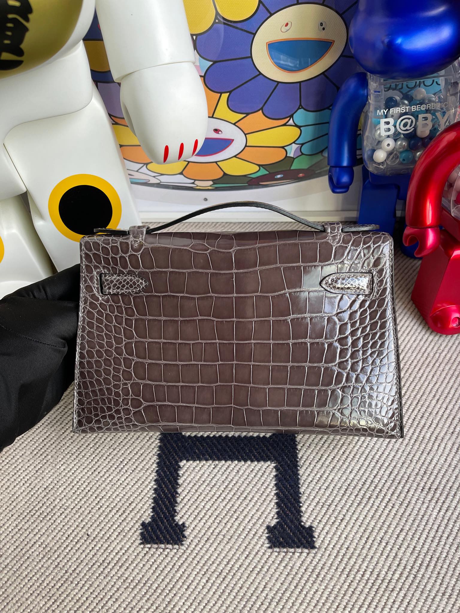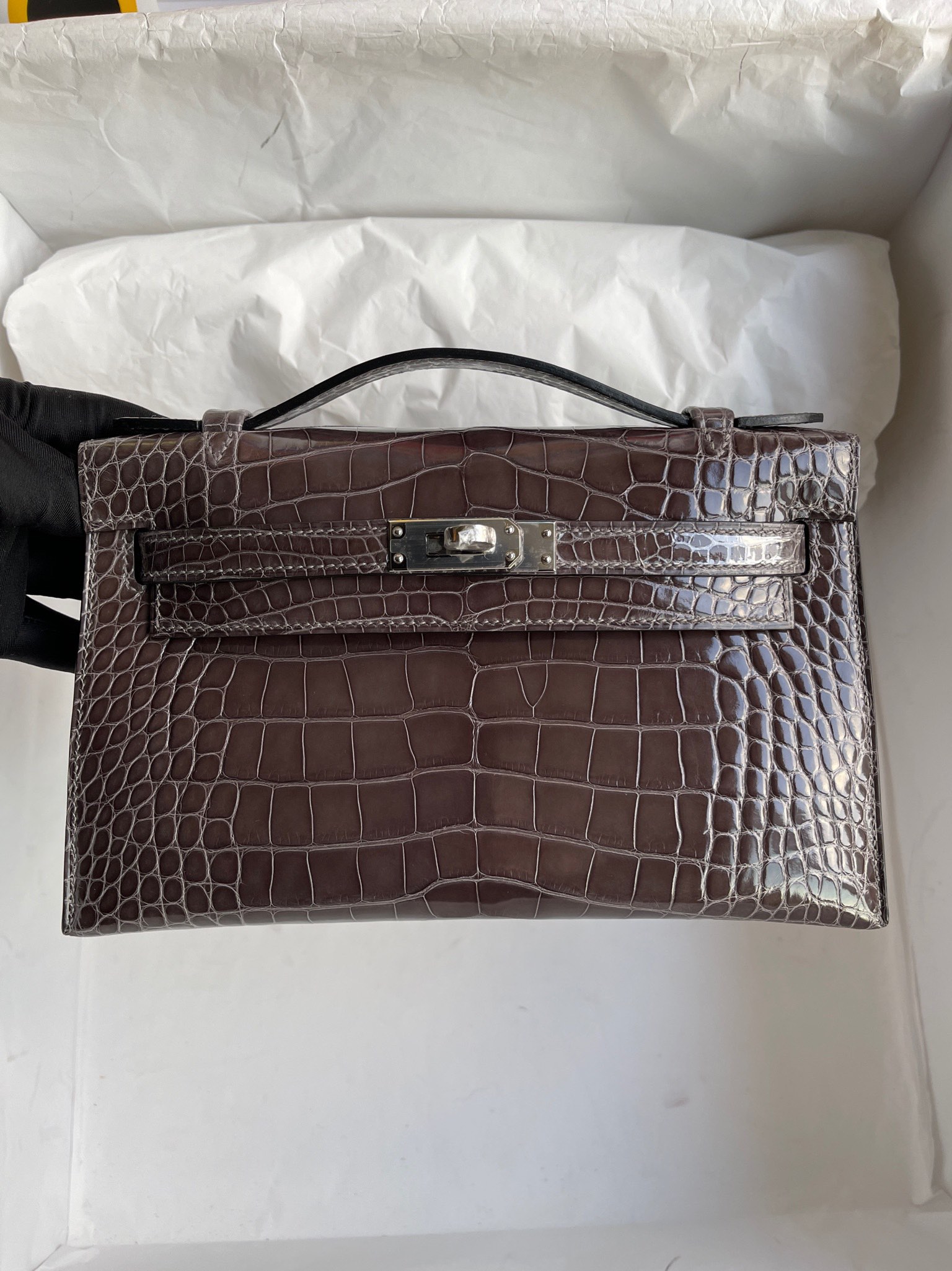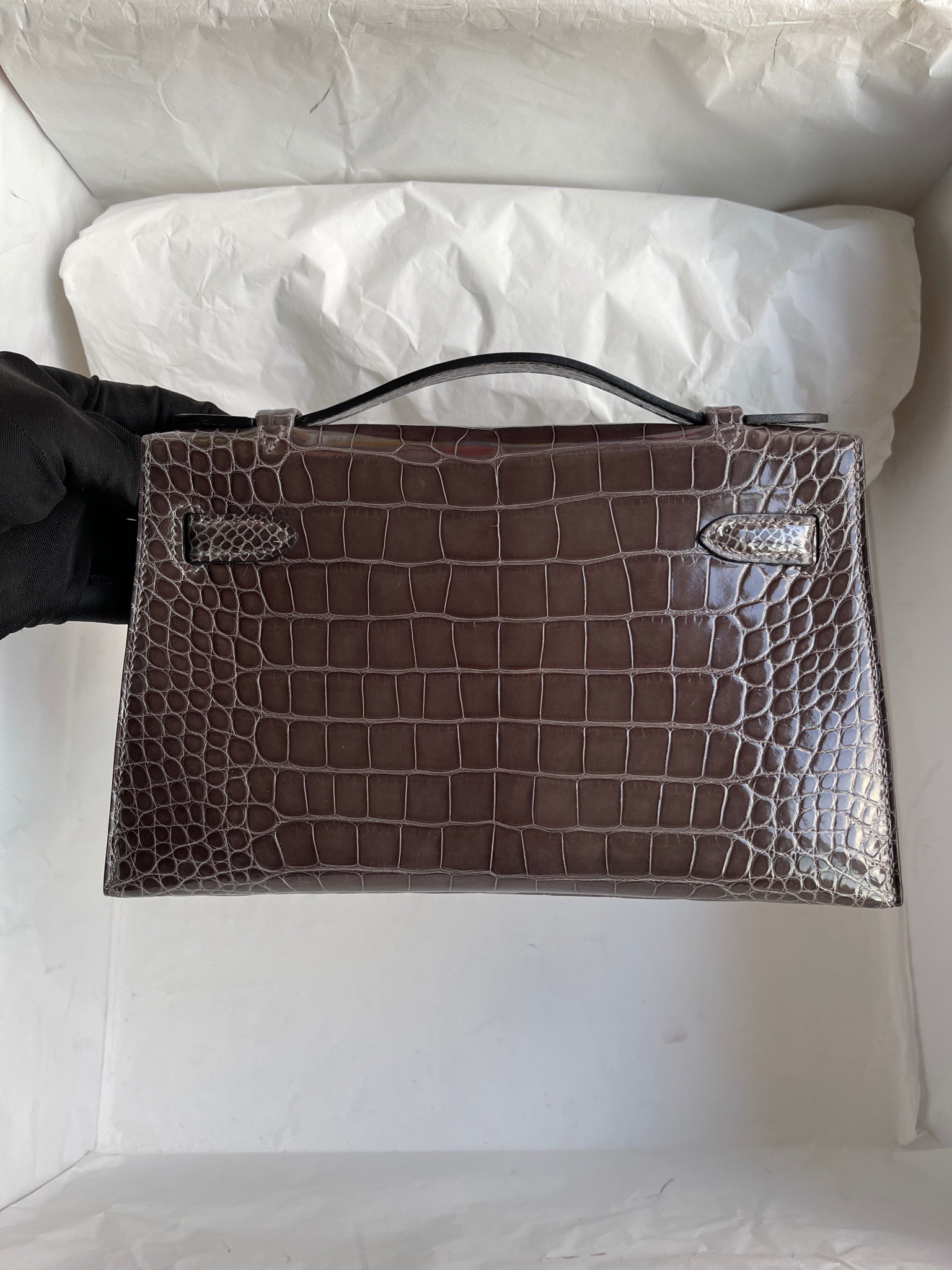 kelly pochette Alligator shiny graphite Silver Hardware 22cm Full Handmade