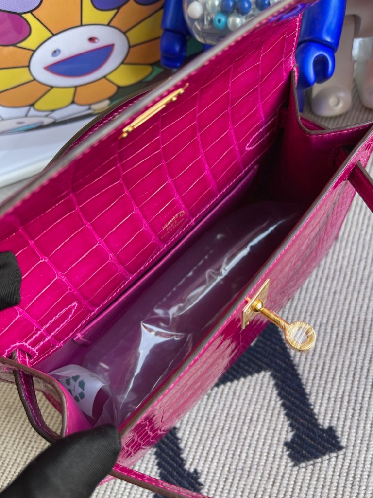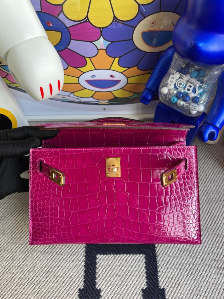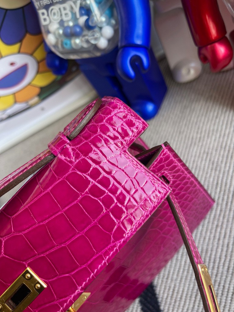 Uncle Bench Hermes kelly pochette Alligator shiny J5 Dark rose red Gold Hardware 22cm Full Handmade