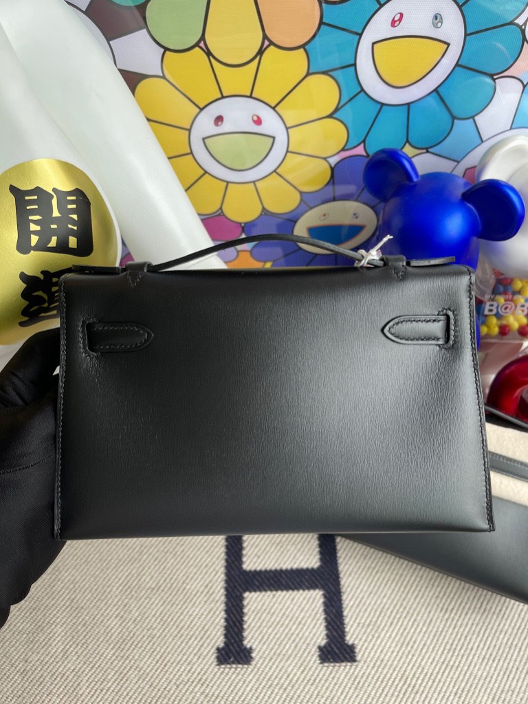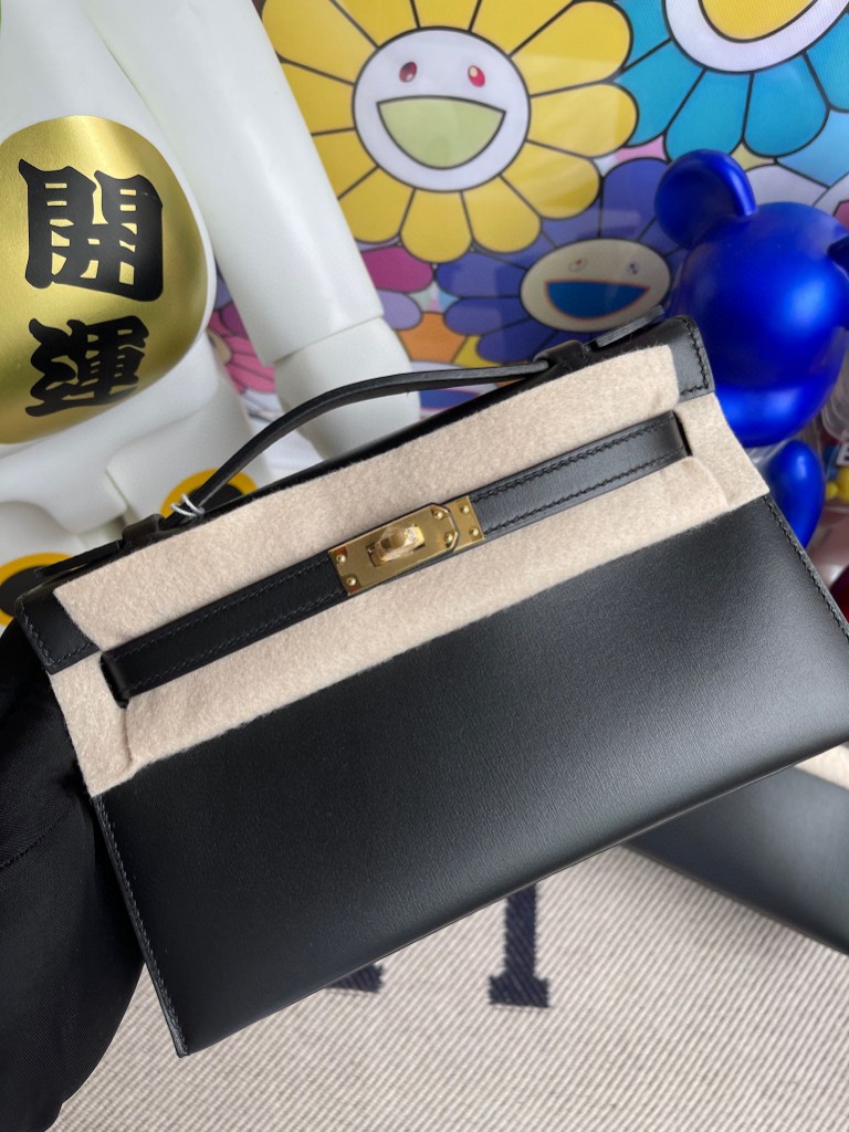 kelly pochette Boxcalf Noir Gold Hardware 22cm Full Handmade