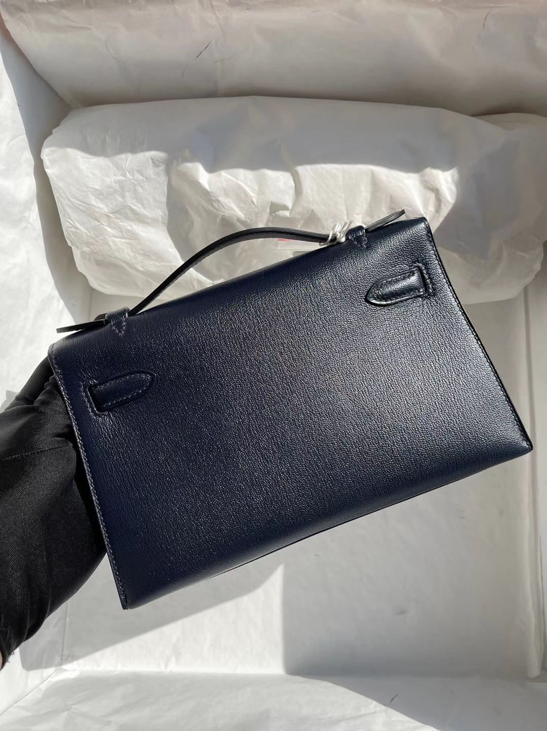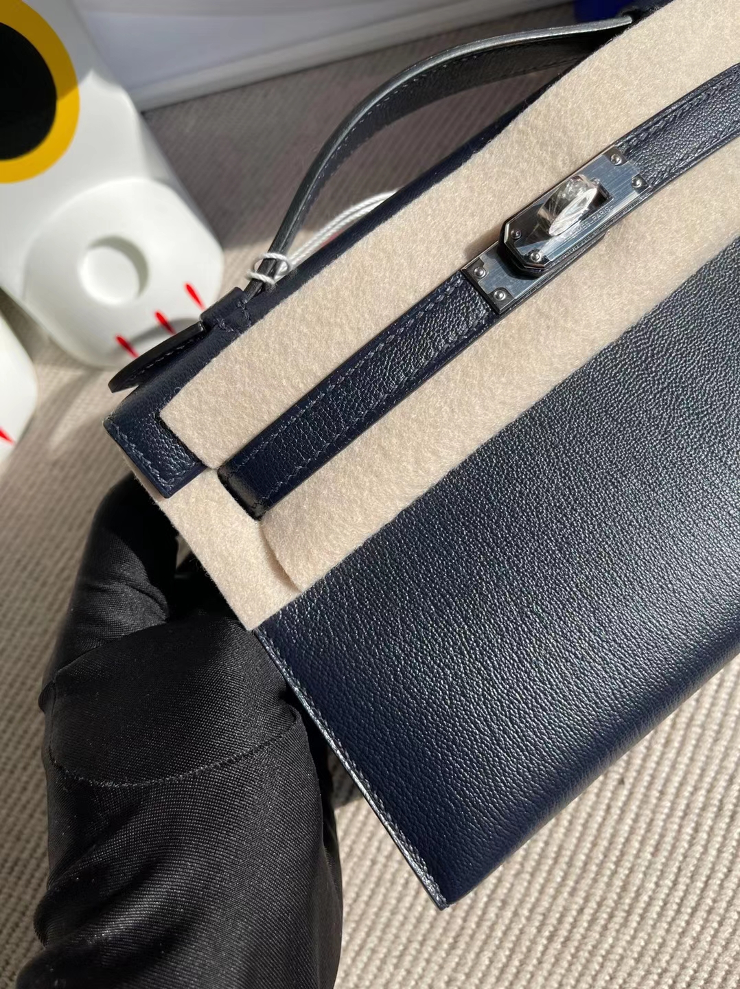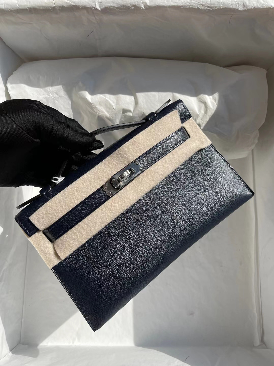 kelly pochette Chevre Midnight blue Silver Hardware 22cm Full Handmade