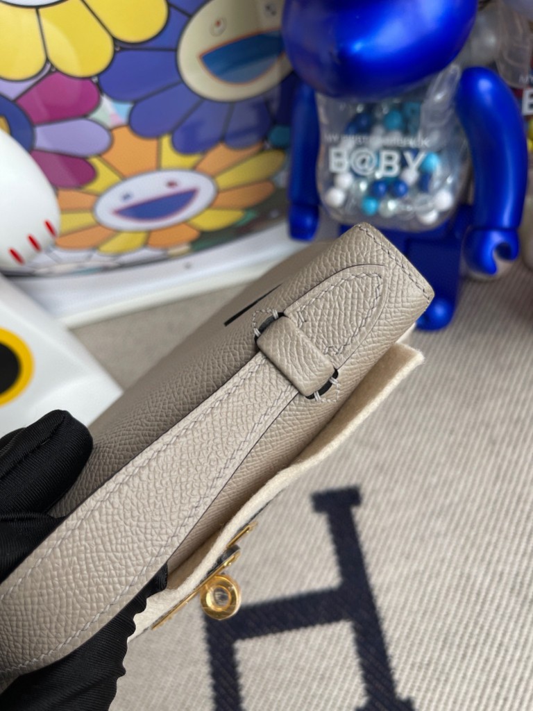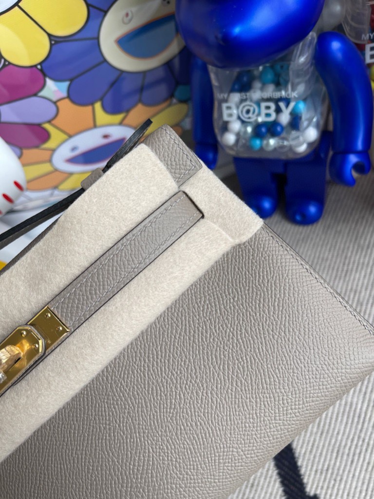 kelly pochette Epsom M8 Gris ashpite Gold Hardware 22cm Full Handmade
