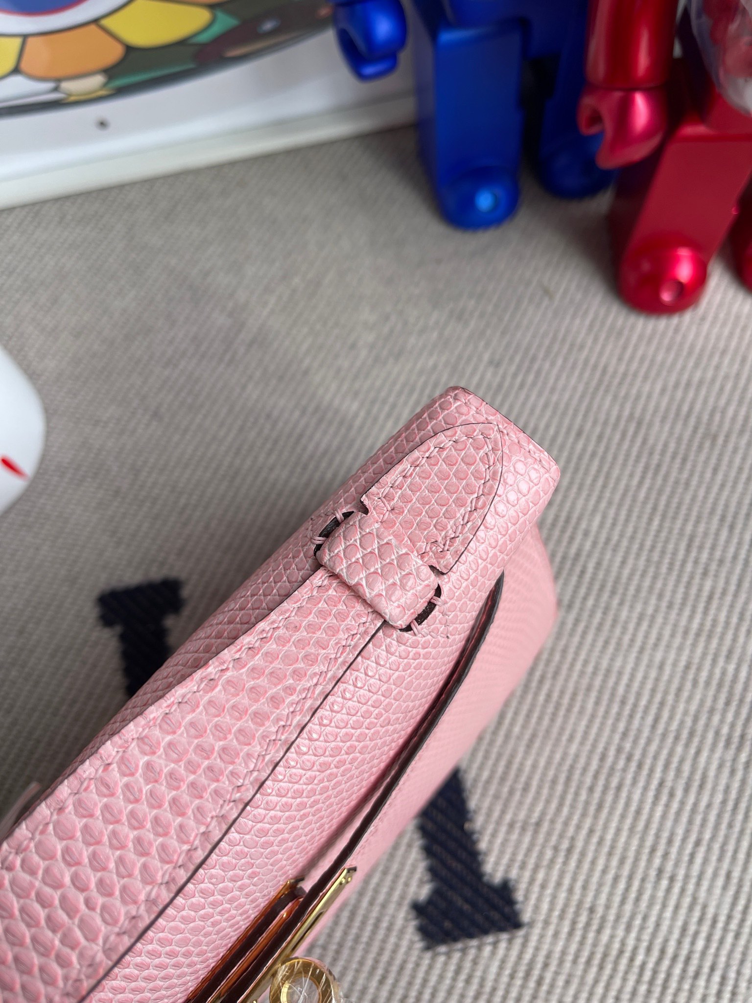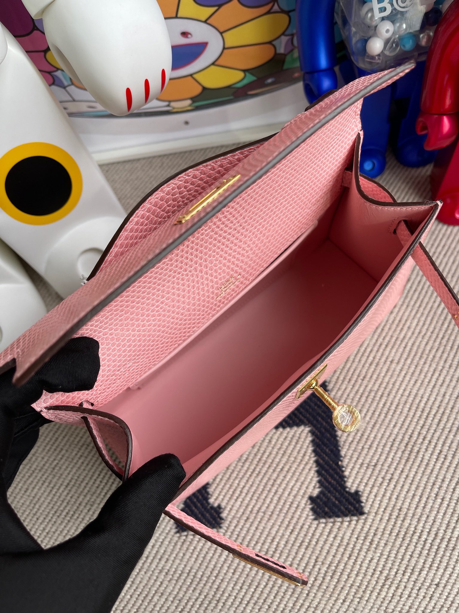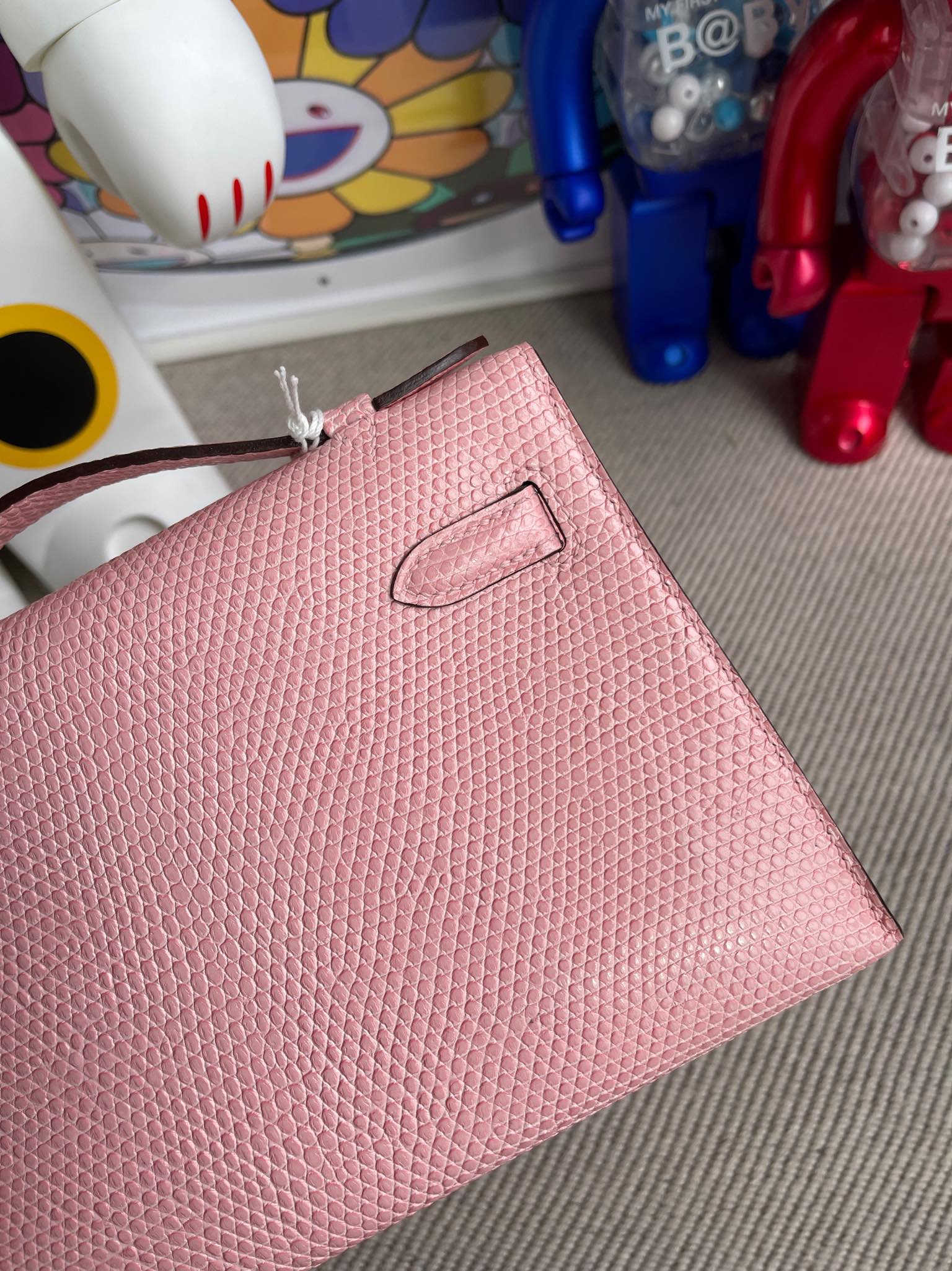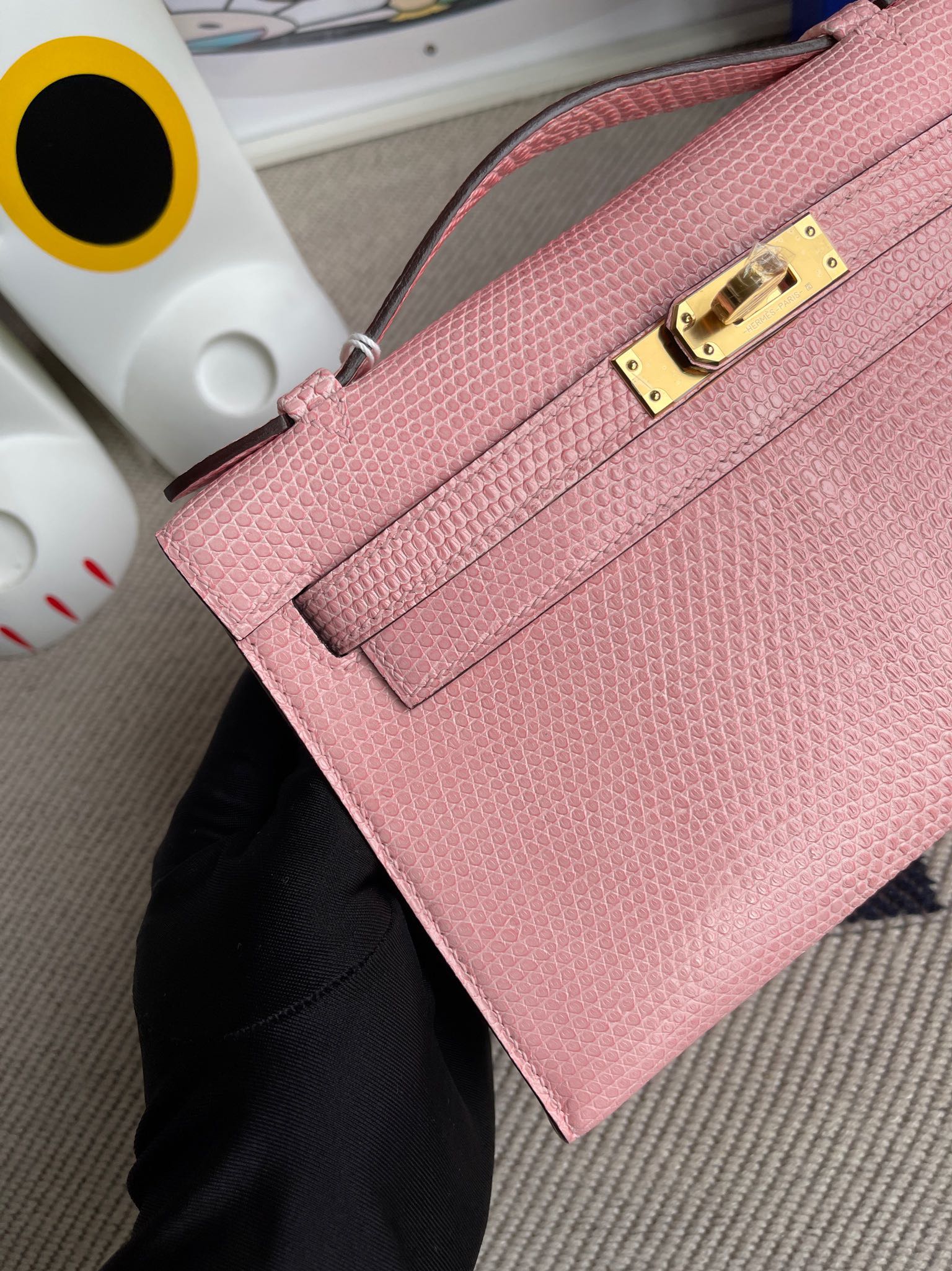 kelly pochette Lizard shiny 3Q pink Gold Hardware 22cm Full Handmade
