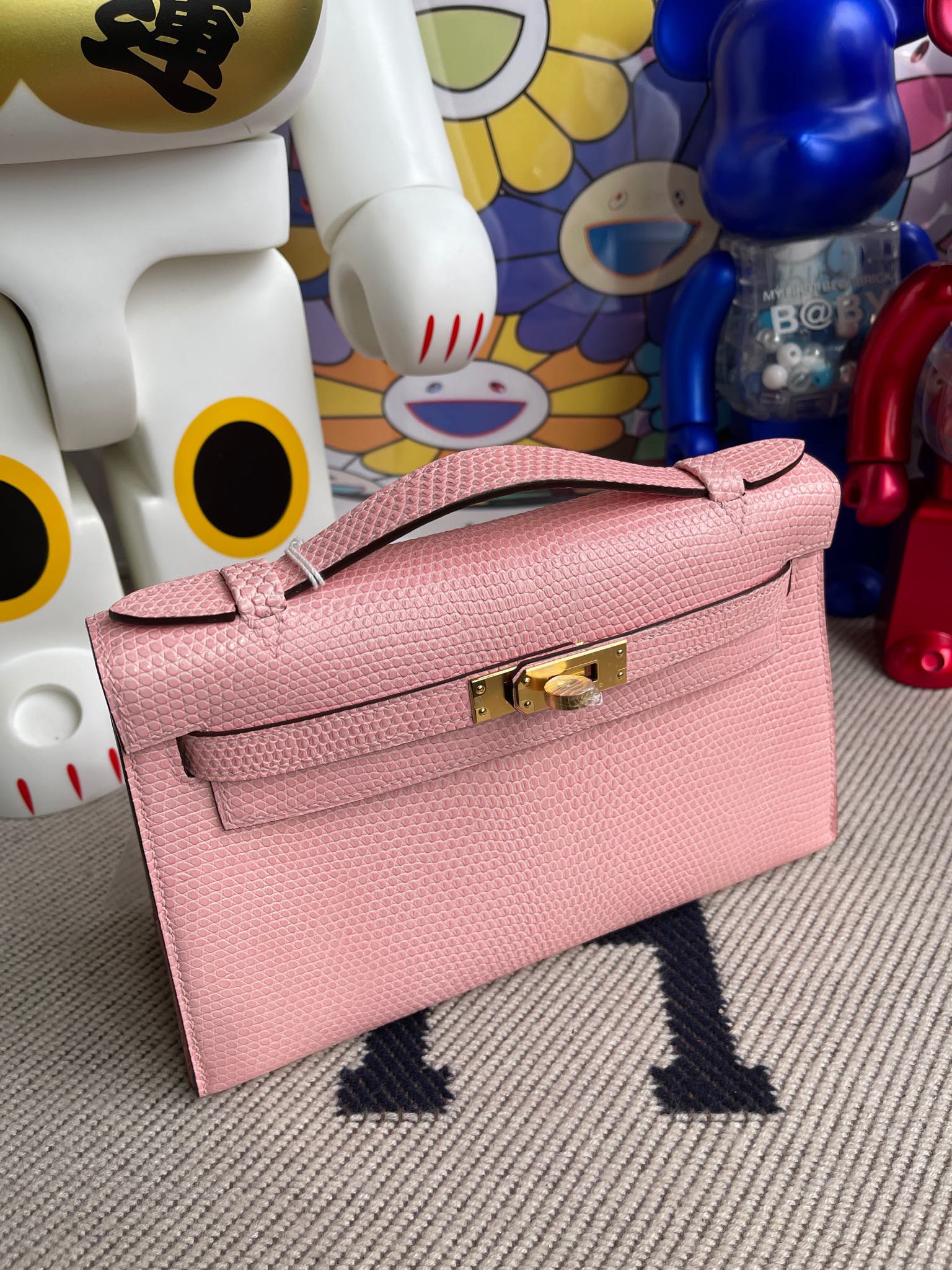 Uncle Bench Hermes kelly pochette Lizard shiny 3Q pink Gold Hardware 22cm Full Handmade