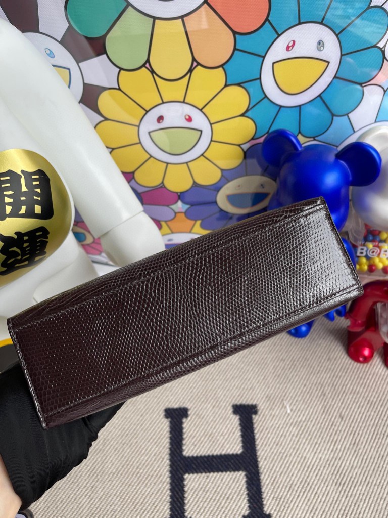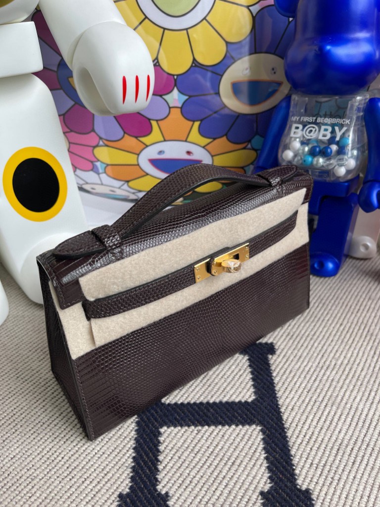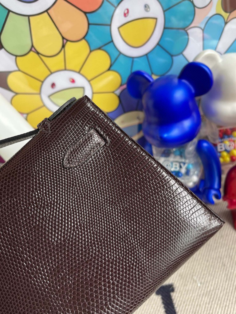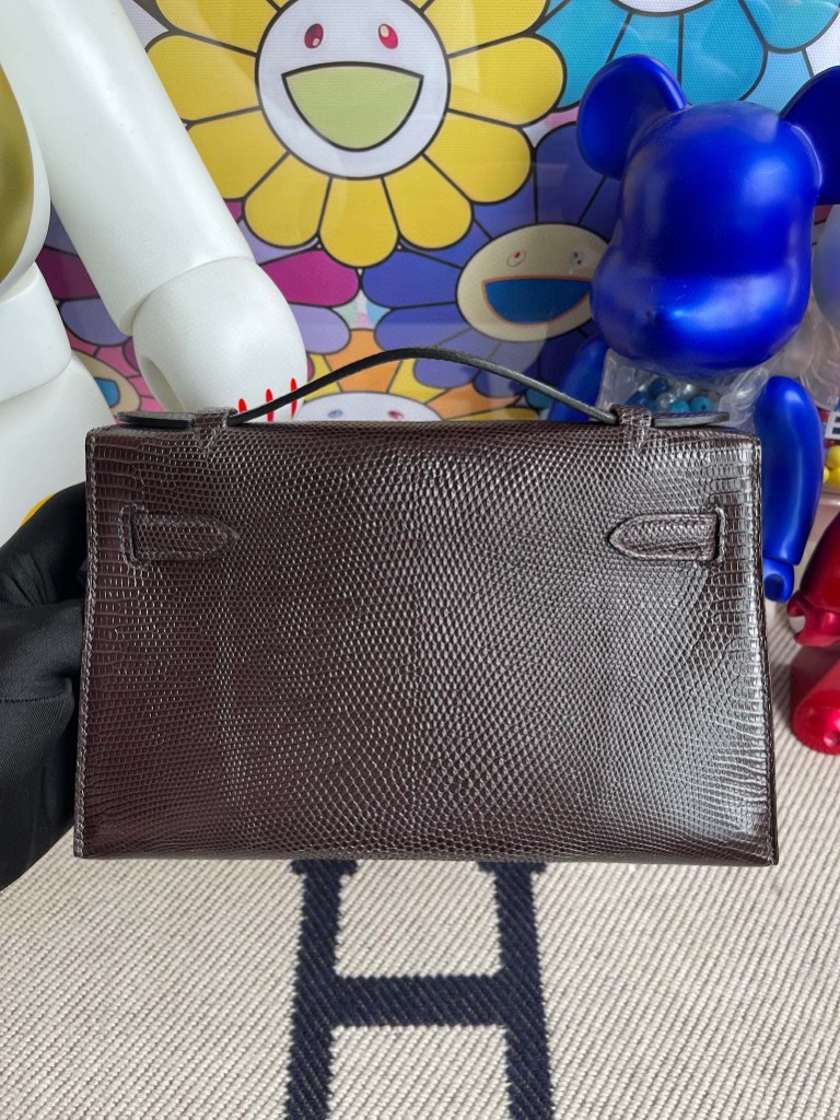 Uncle Bench Hermes kelly pochette Lizard shiny chocolate Gold Hardware 22cm Full Handmade