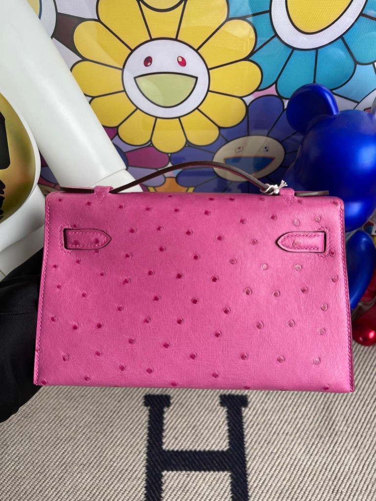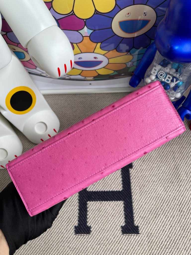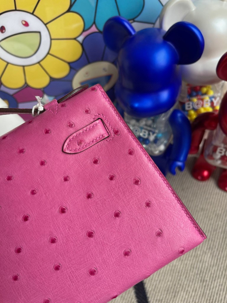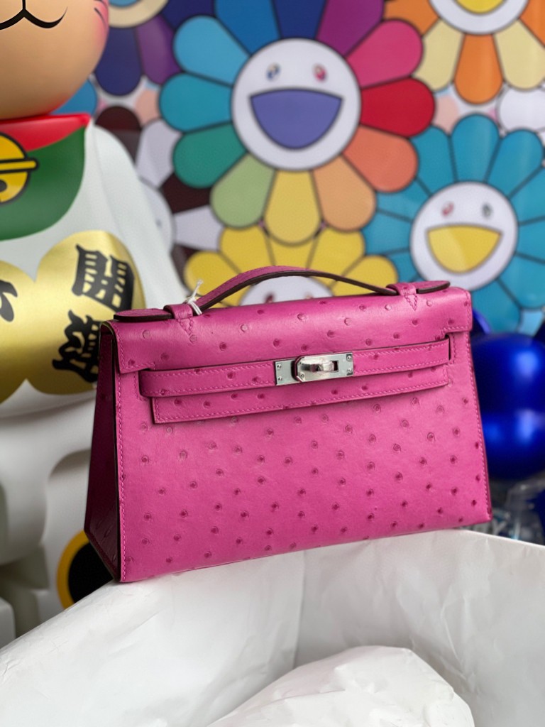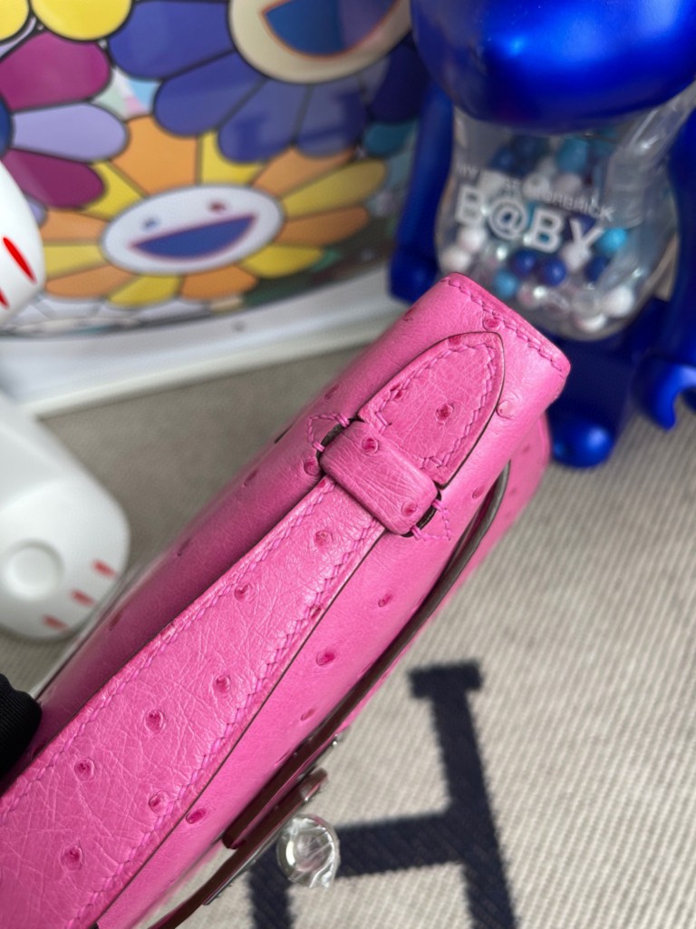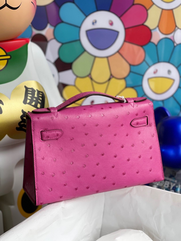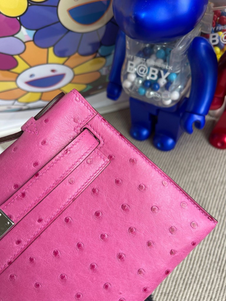 kelly pochette Ostrich kk peach red Silver Hardware 22cm Full Handmade