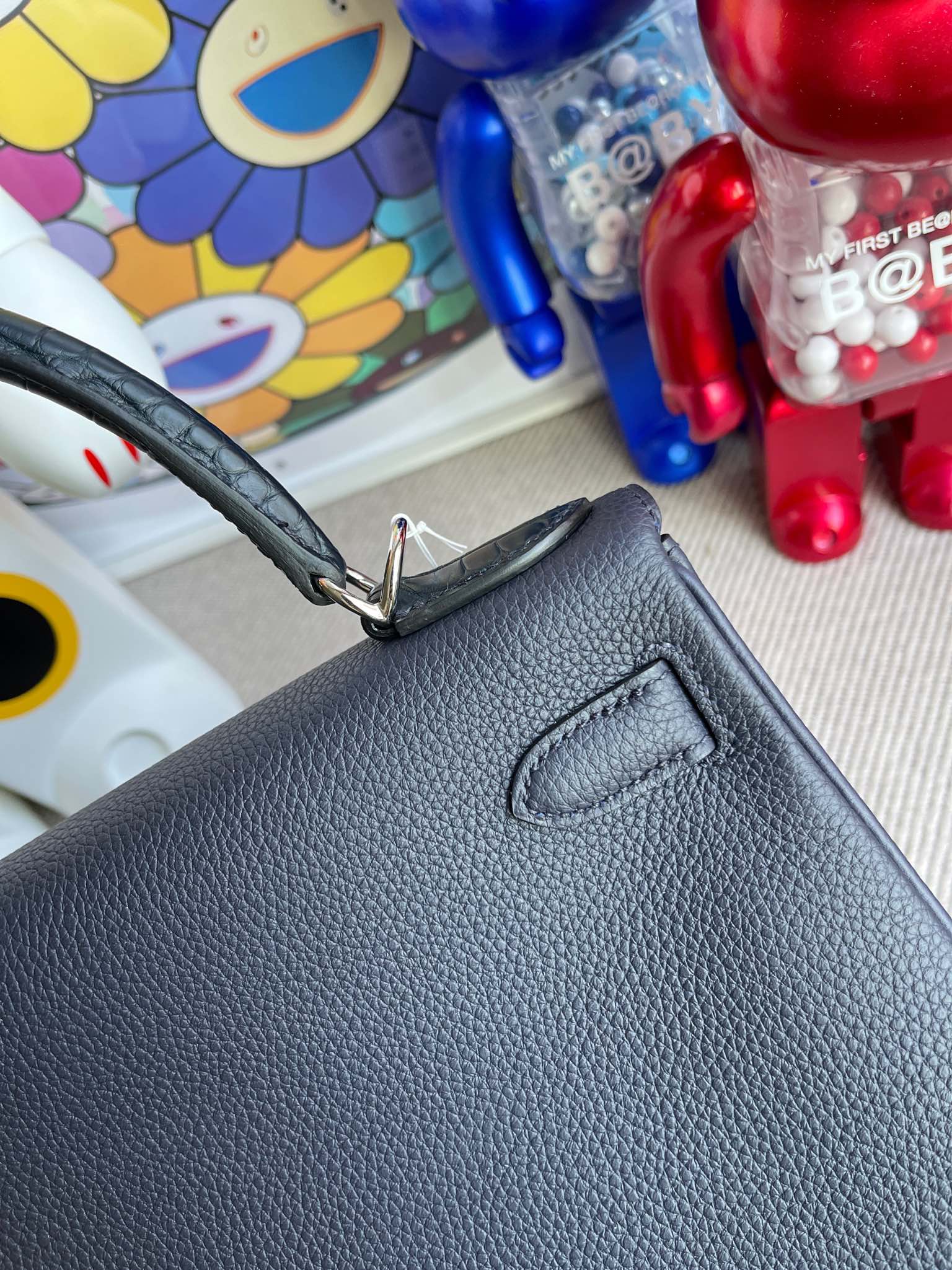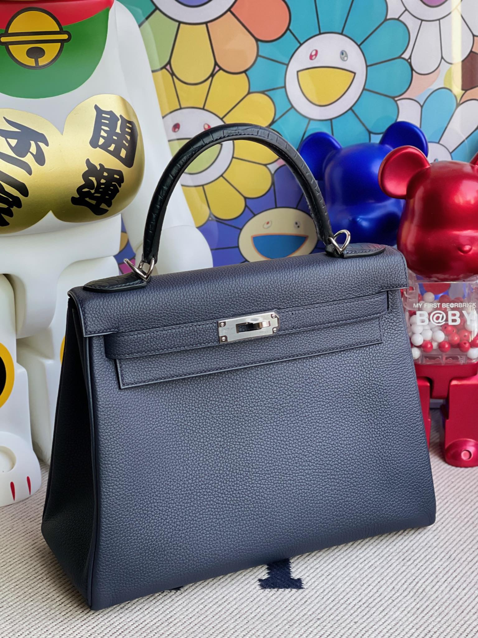 Kelly Touch 28cm Matte crocodile Midnight blue Silver Hardware Full Handmade