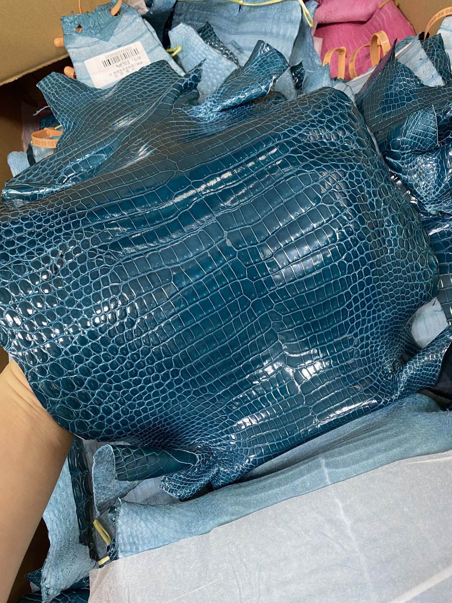 Leather new Porosus shiny W0 Vert Bosphore customized