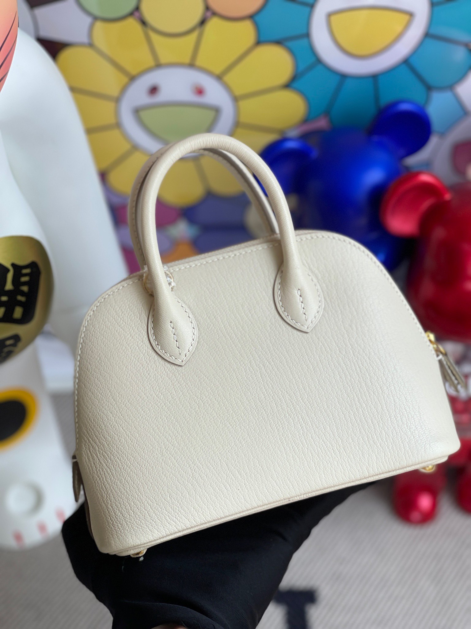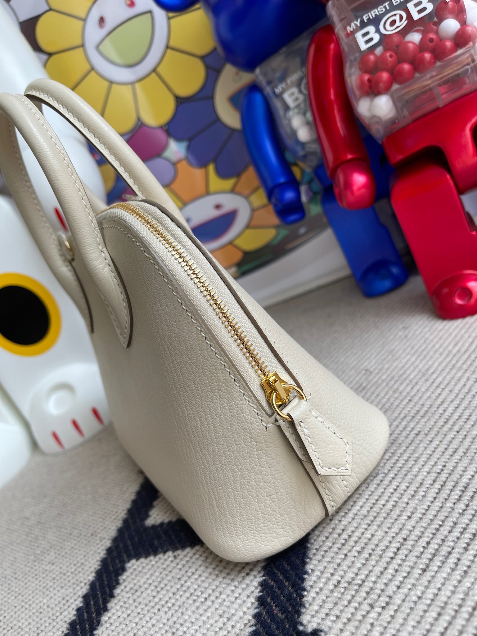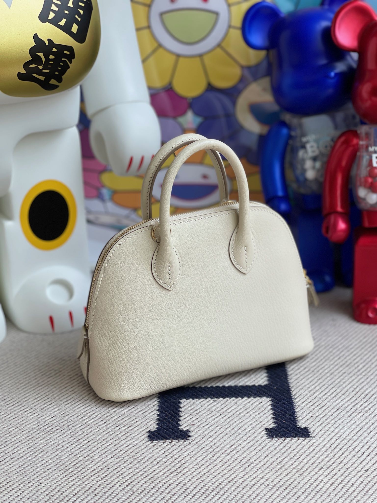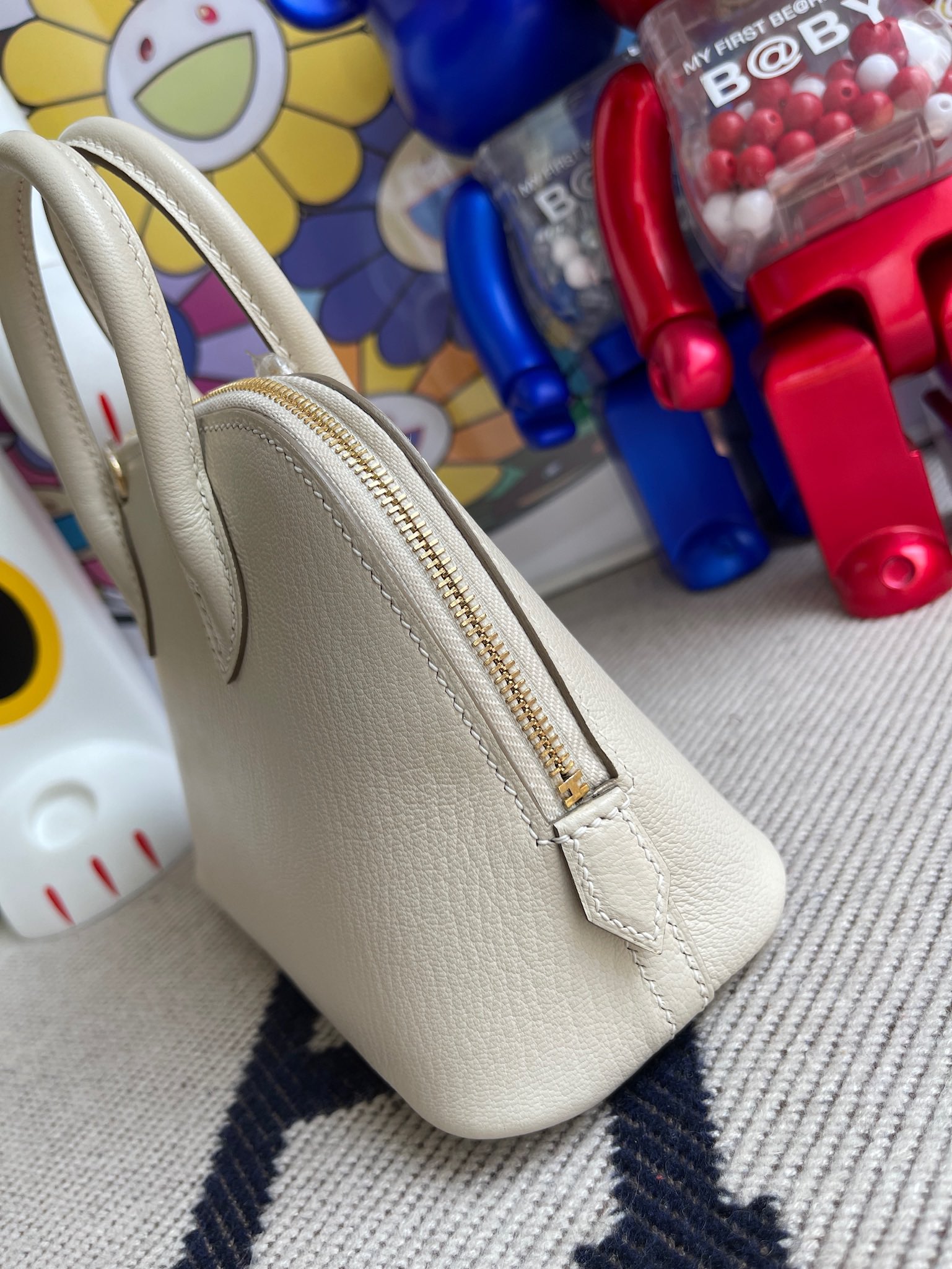 Mini bolide Chevre ck10 Craie Gold Hardware 19cm Full Handmade