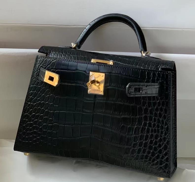 Uncle Bench Hermes Mini Kelly Alligator Matte Black Gold Hardware 19cm Full Handmade