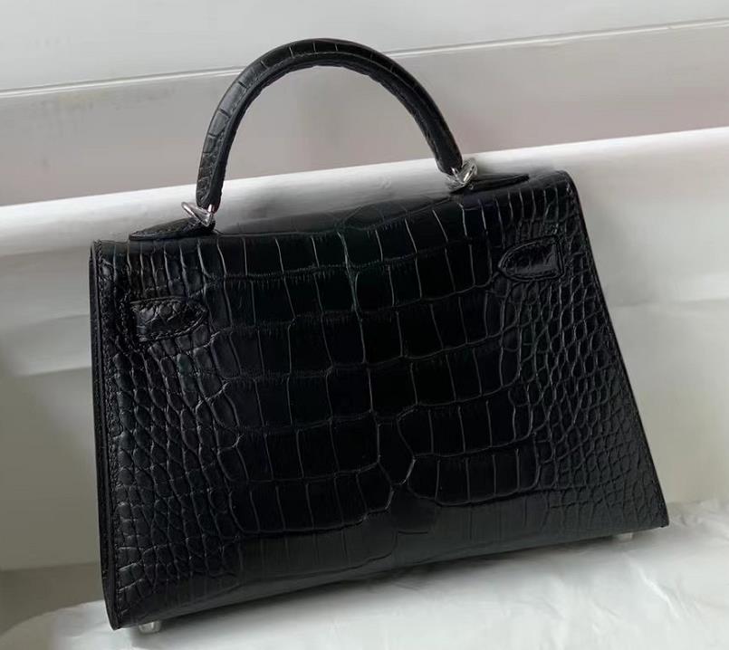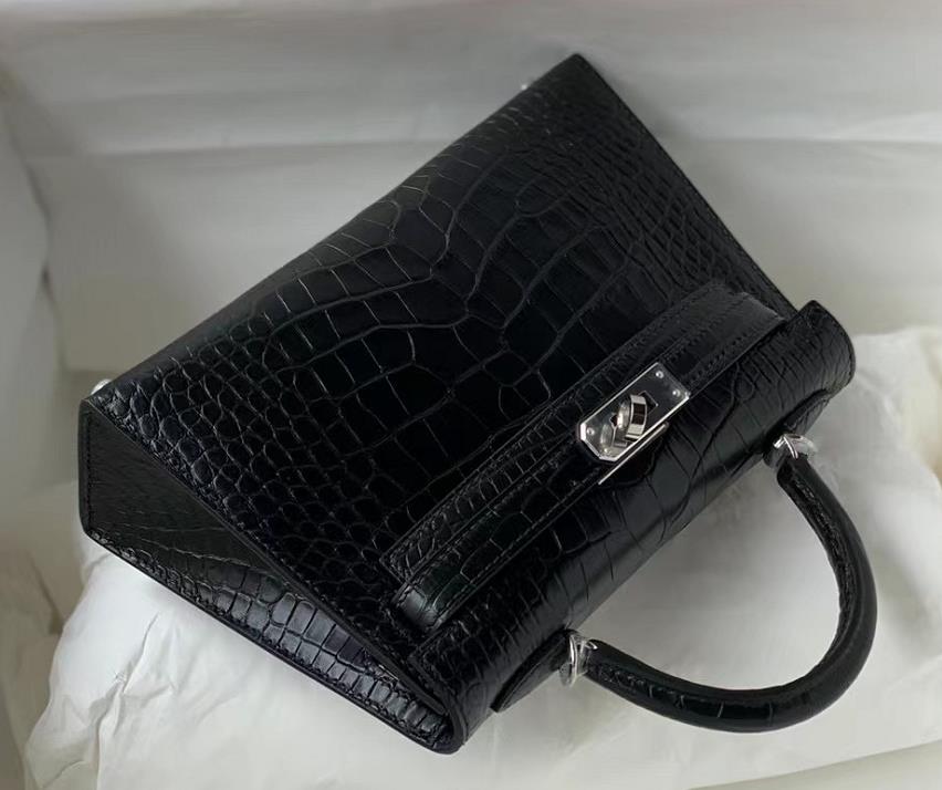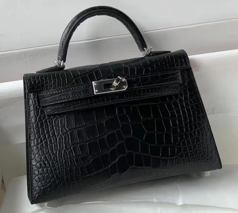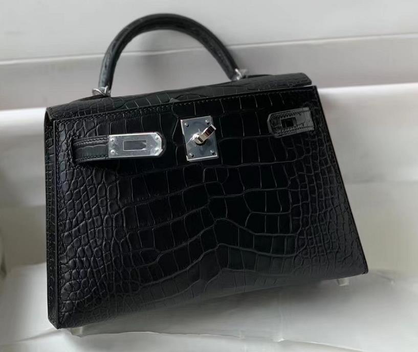 Uncle Bench Hermes Mini Kelly Alligator Matte Black Silver Hardware 19cm Full Handmade