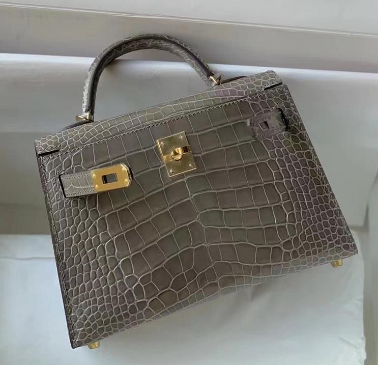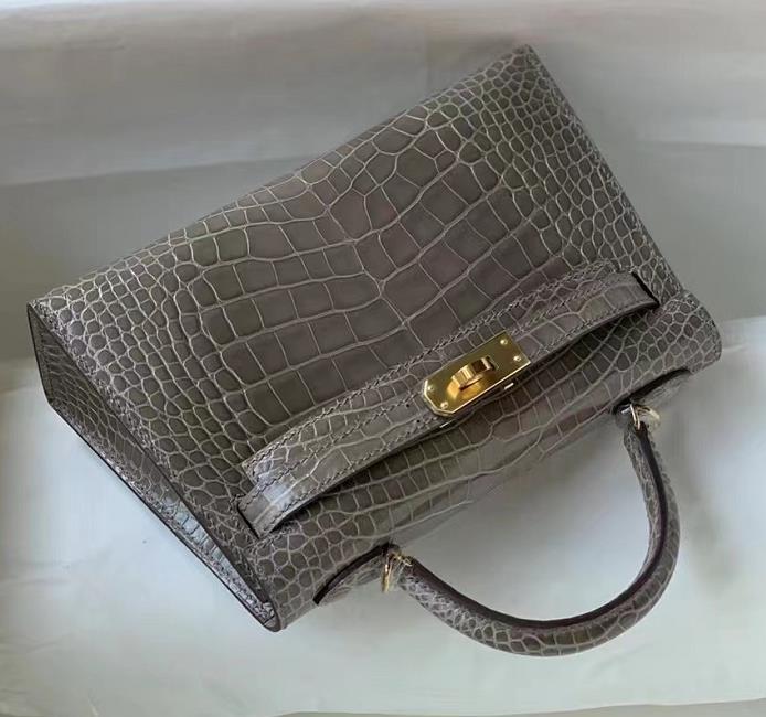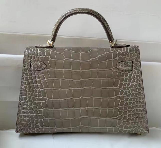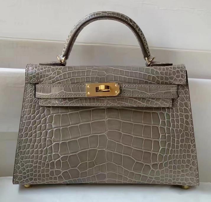 Uncle Bench Hermes Mini Kelly Alligator Shiny Etoupe Grey Gold Hardware 19cm Full Handmade