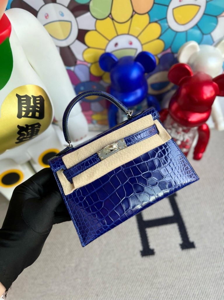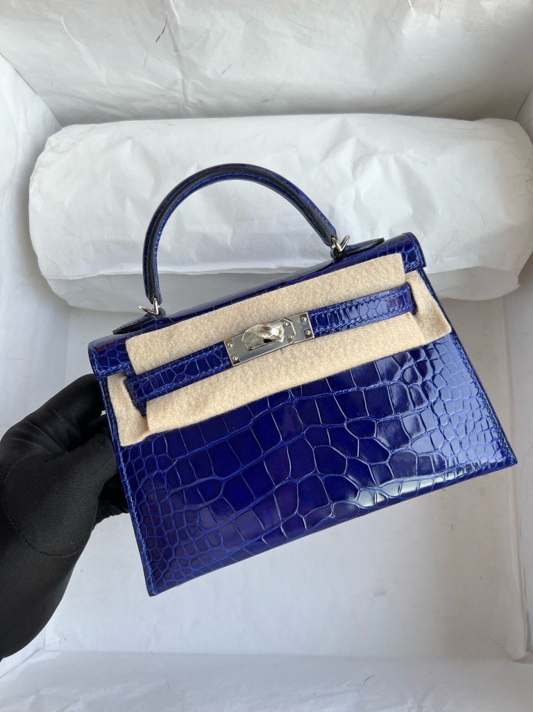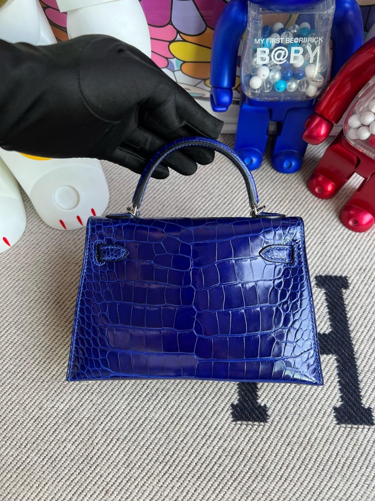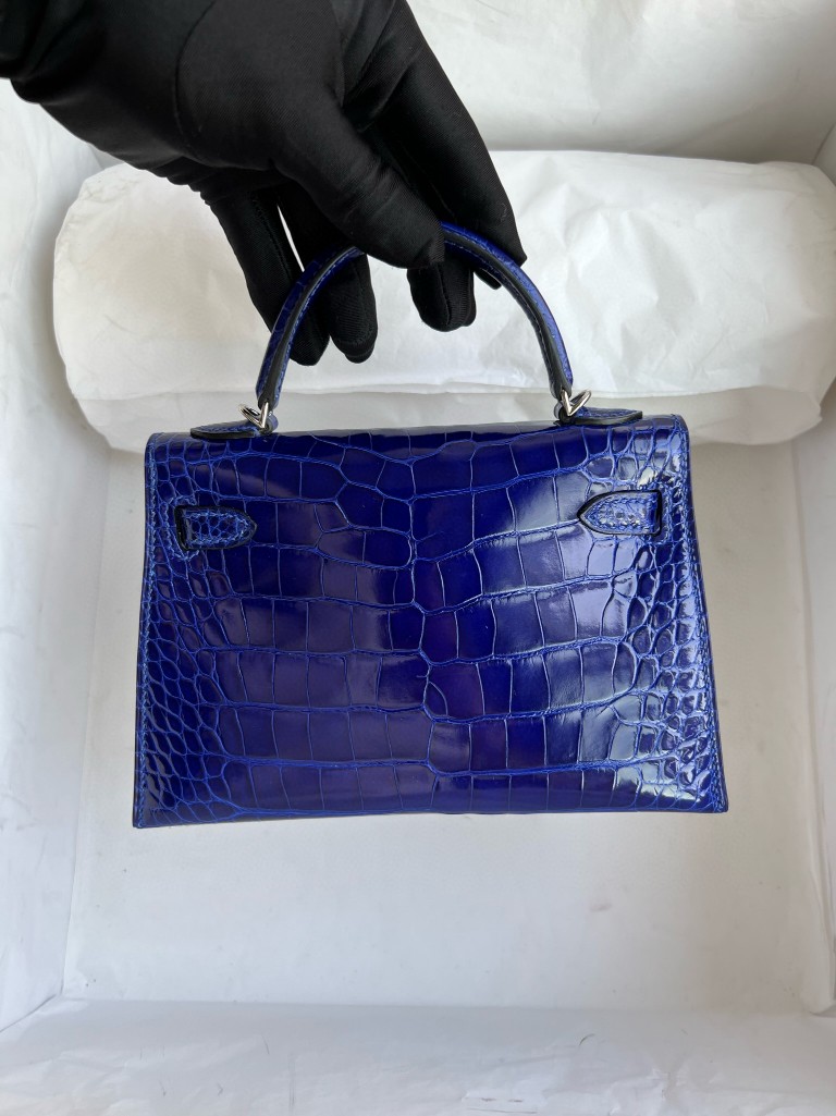 Mini kelly ll Alligator shiny 7T eletric blue Silver Hardware 19cm Full Handmade