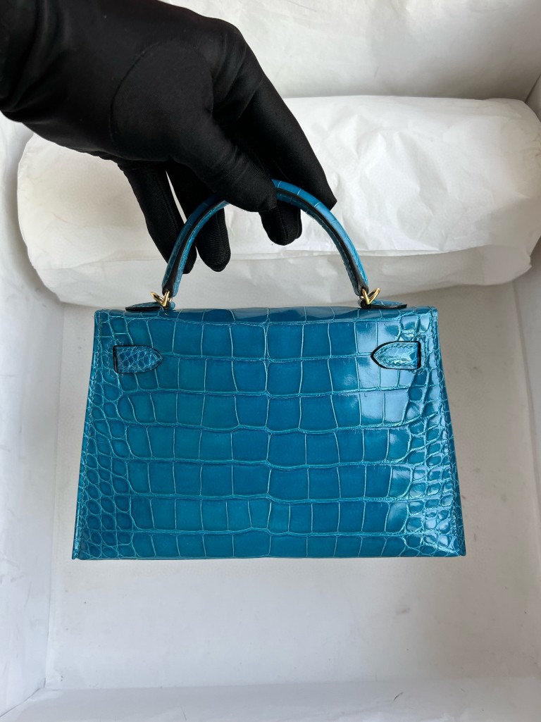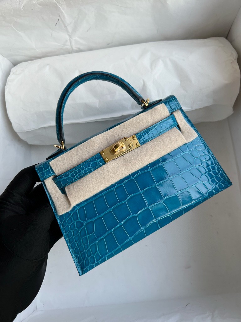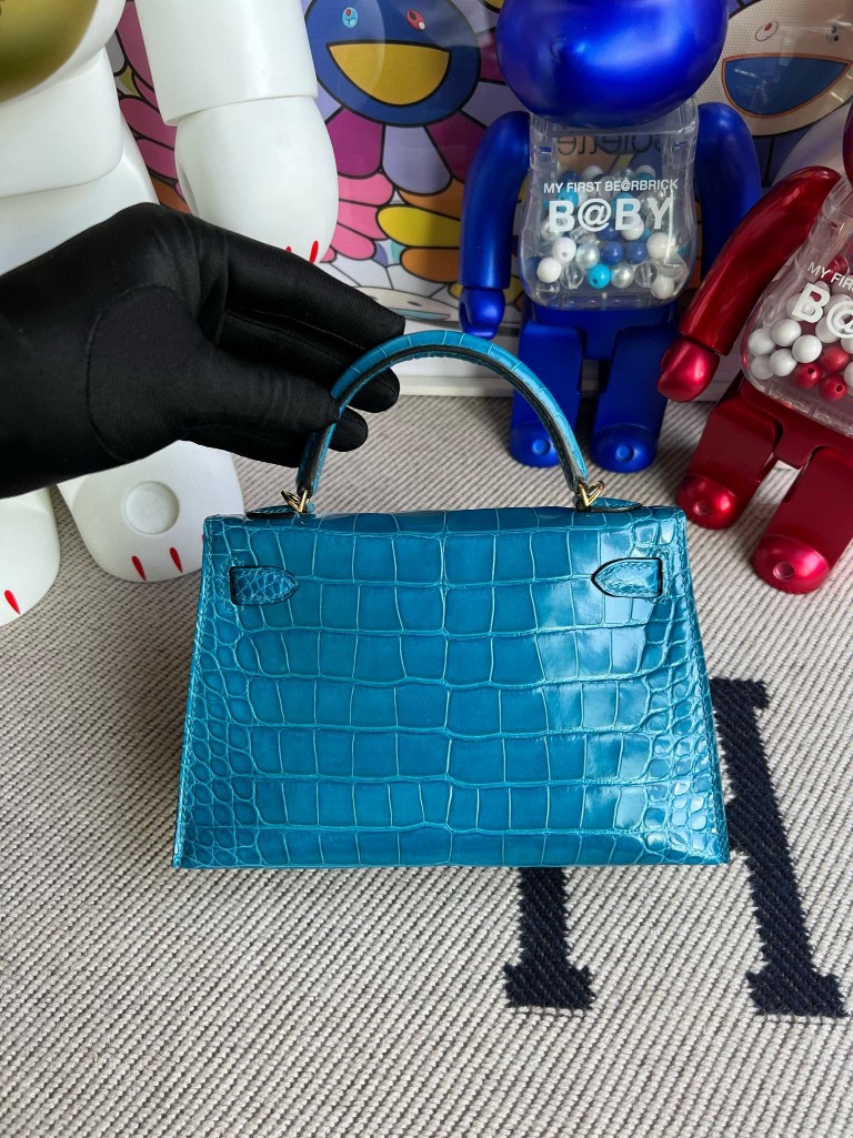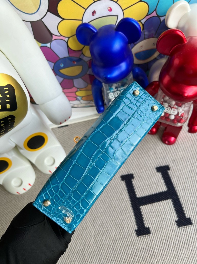 Mini kelly ll Alligator shiny 7w Izmir blue Gold Hardware 19cm Full Handmade